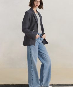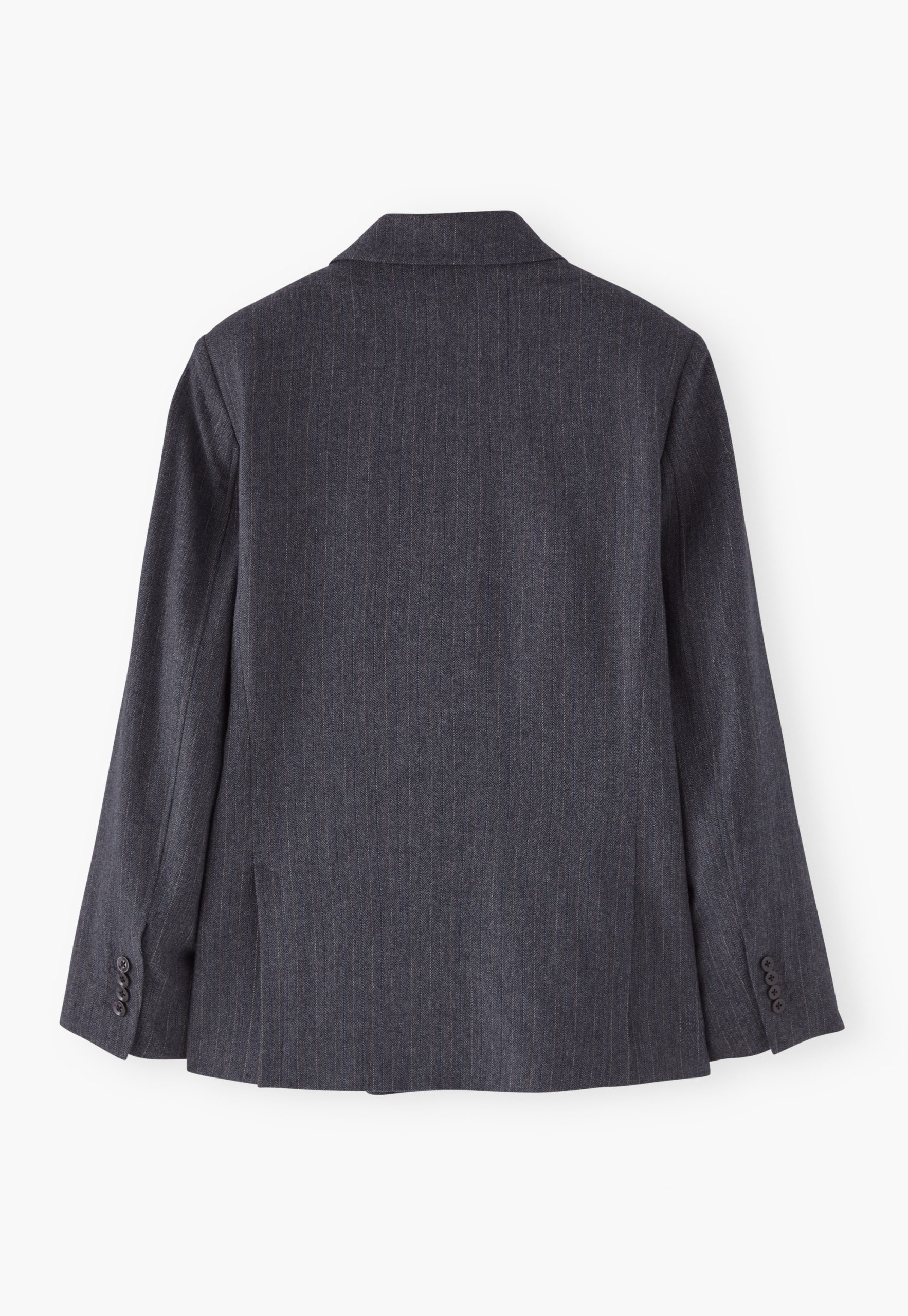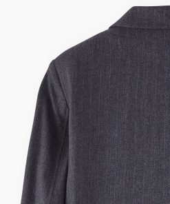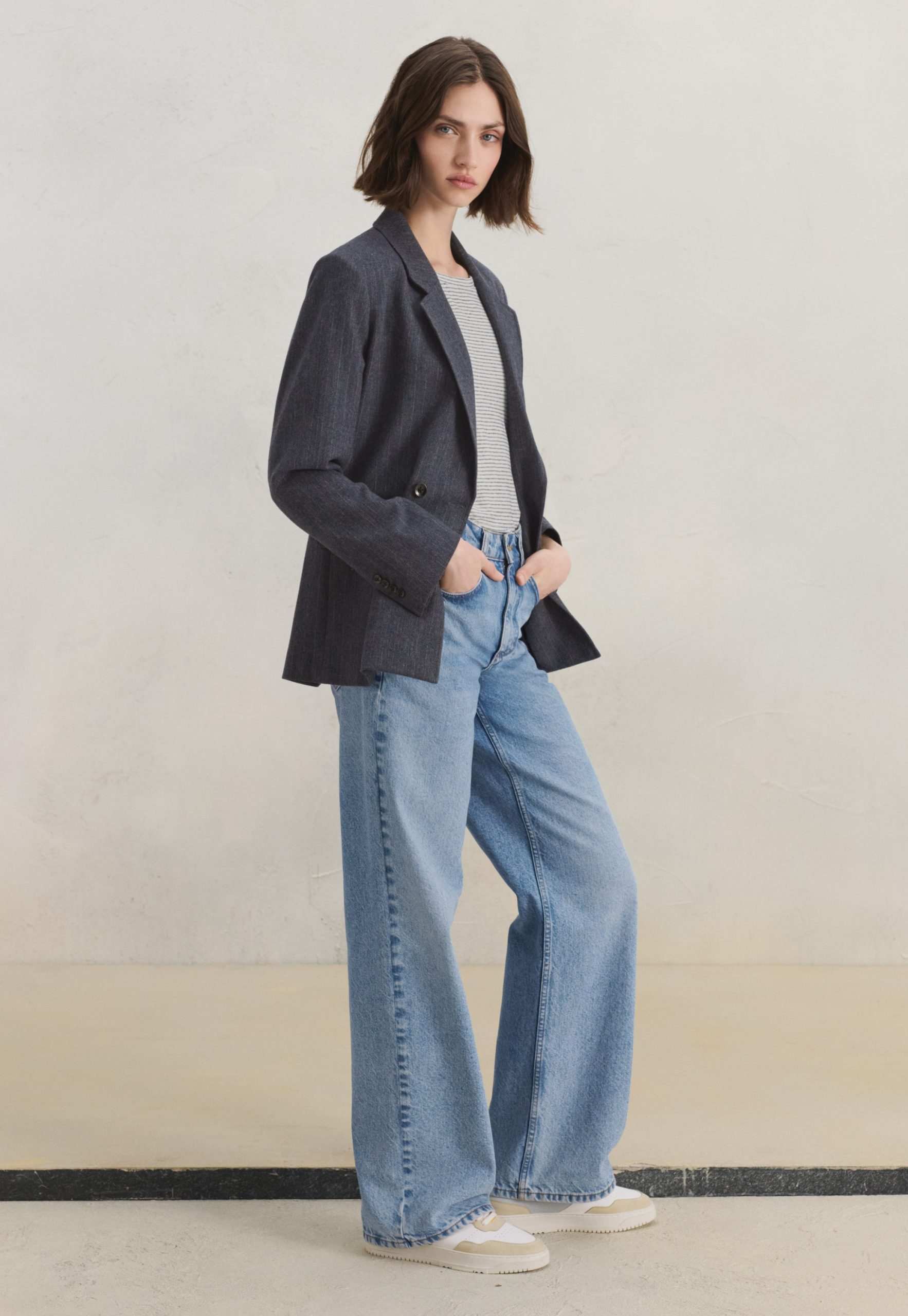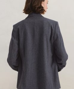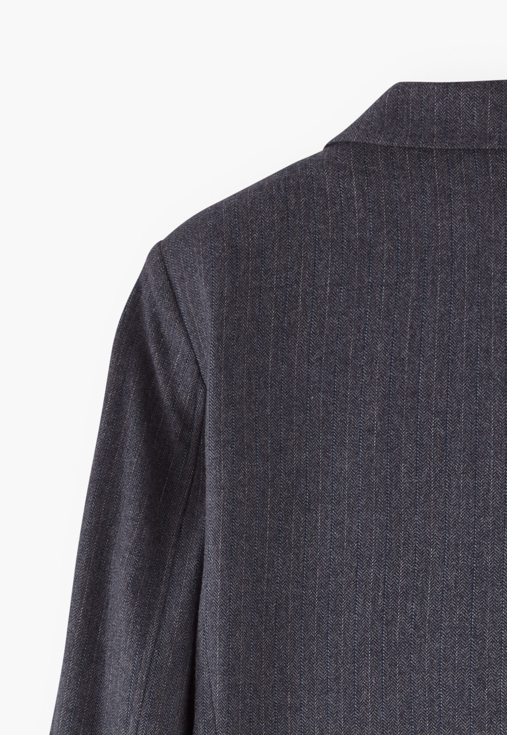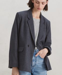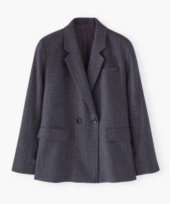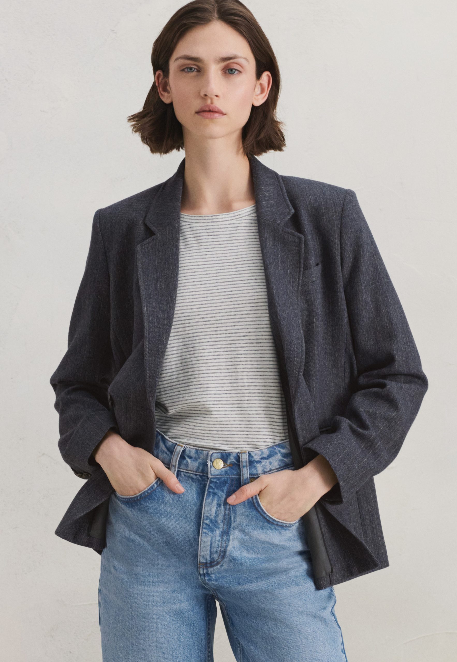 The essential double-breasted blazer in a wool and viscose herringbone weave with a subtle fine stripe. Beautifully tailored in a relaxed, longline fit, it will easily work with your existing wardrobe or pair it with the matching trousers to create a fabulous suit.