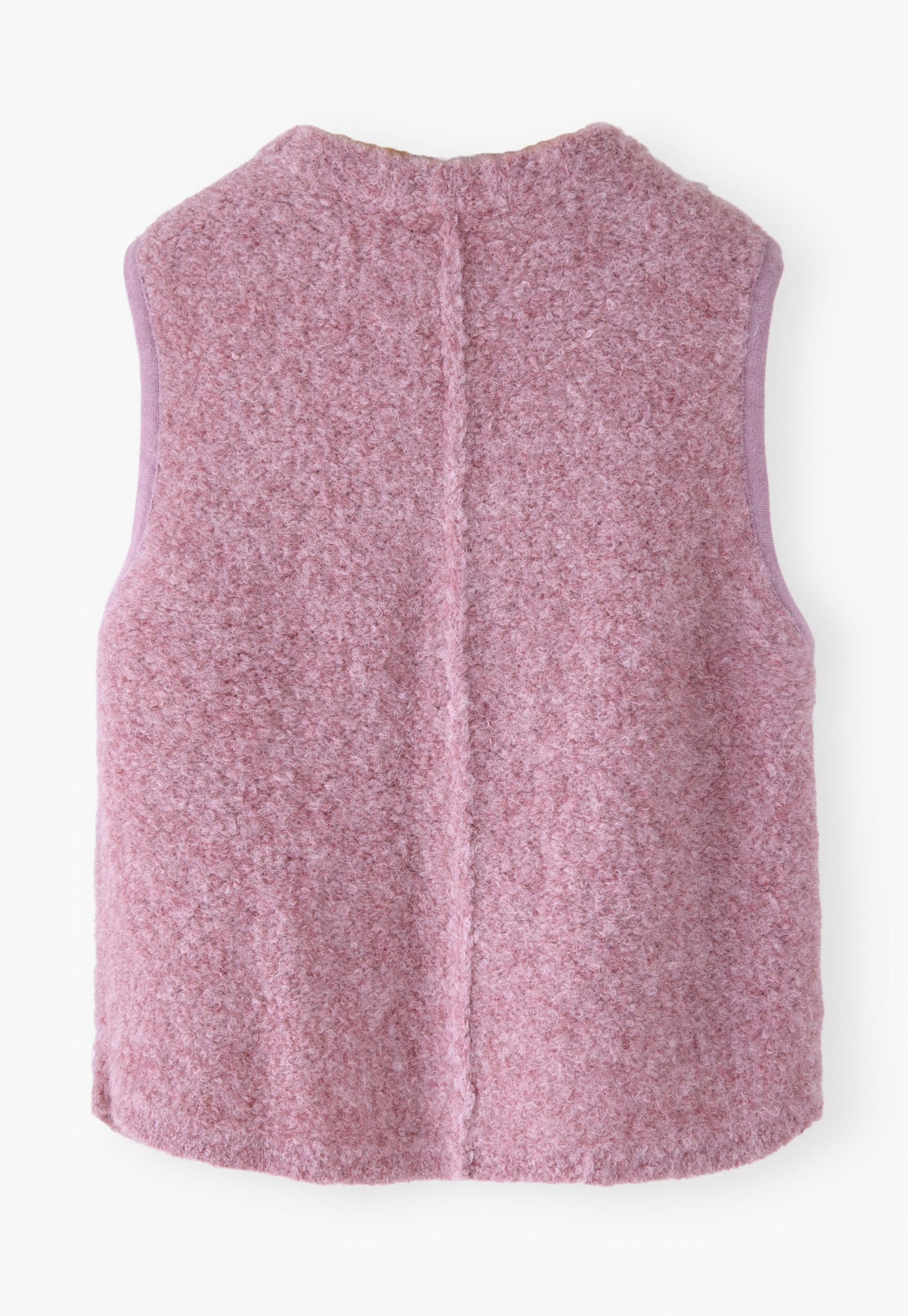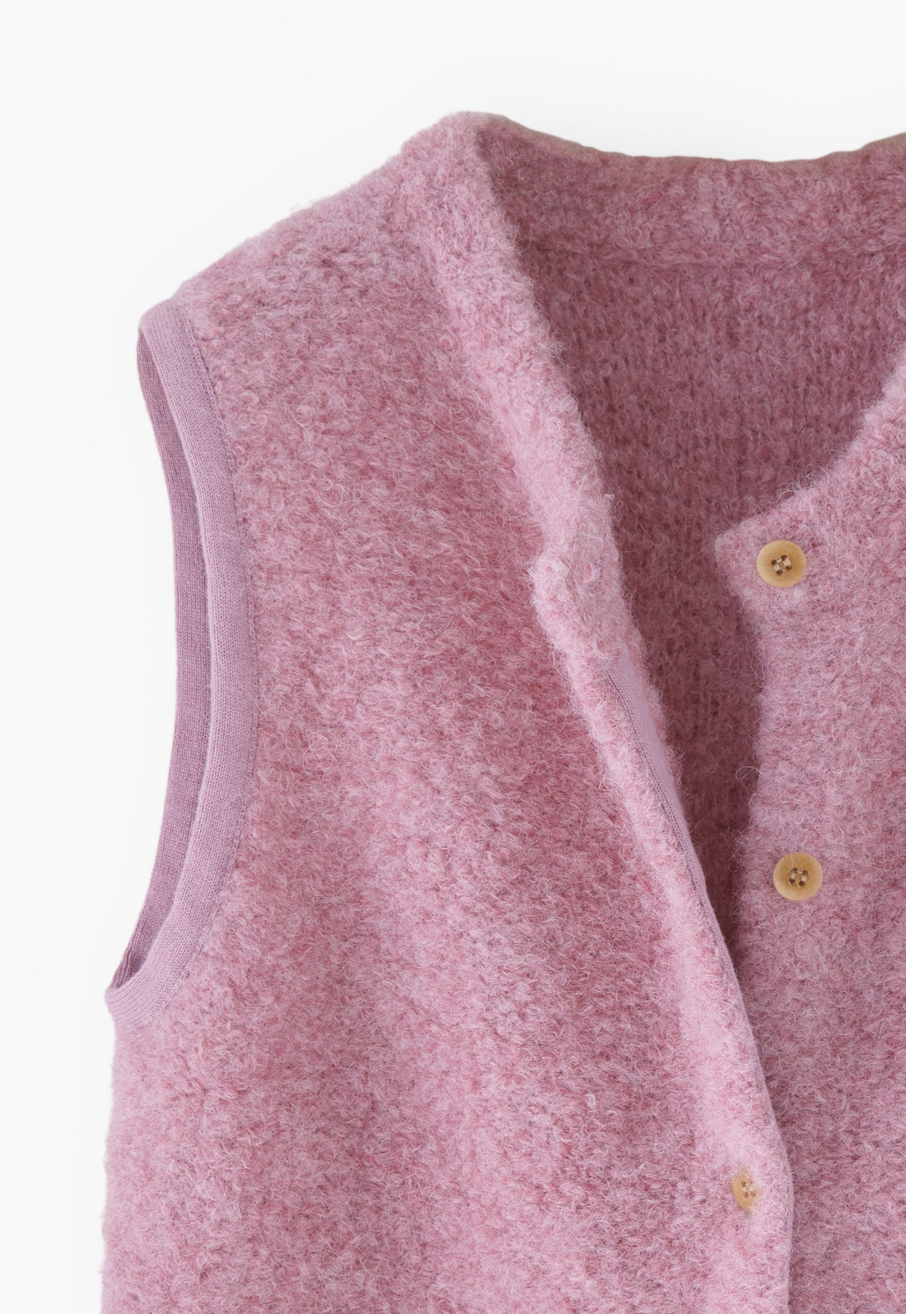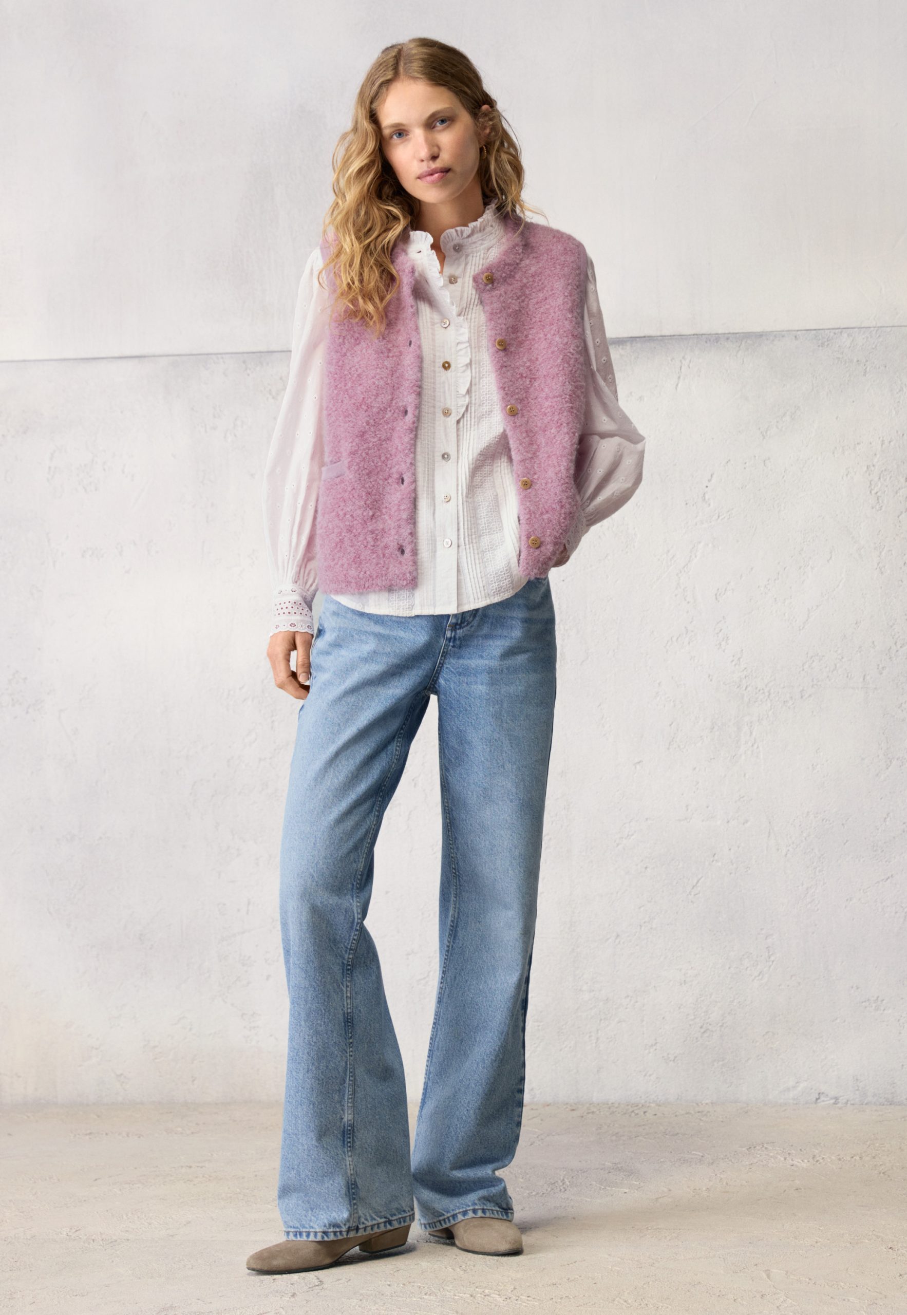 There’s nothing like a knitted gilet for adding a welcome extra layer. Beautifully textured in soft and cosy alpaca bouclé with contrasting trim at the pockets and armholes.