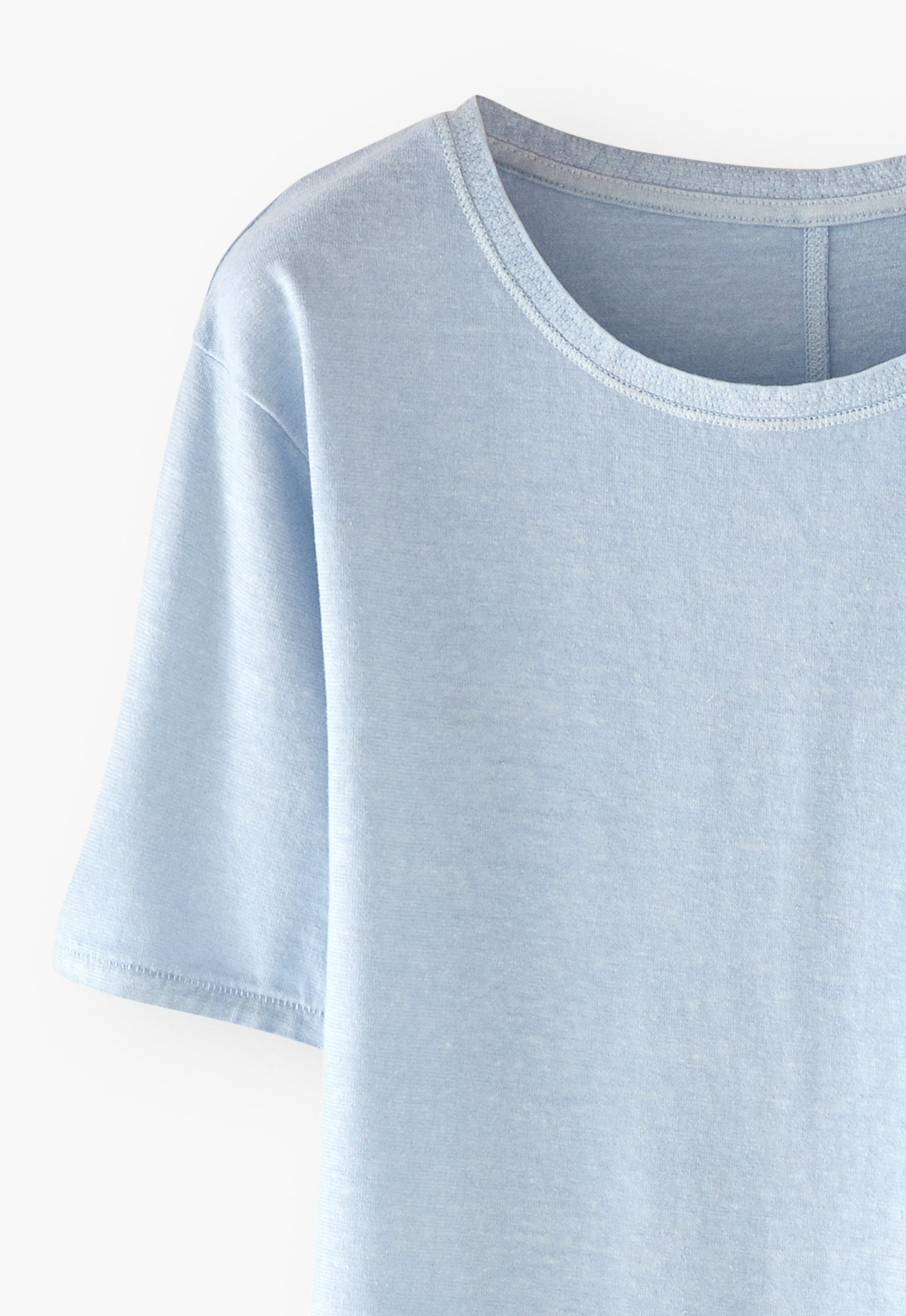 - Top-stitched detail at neck