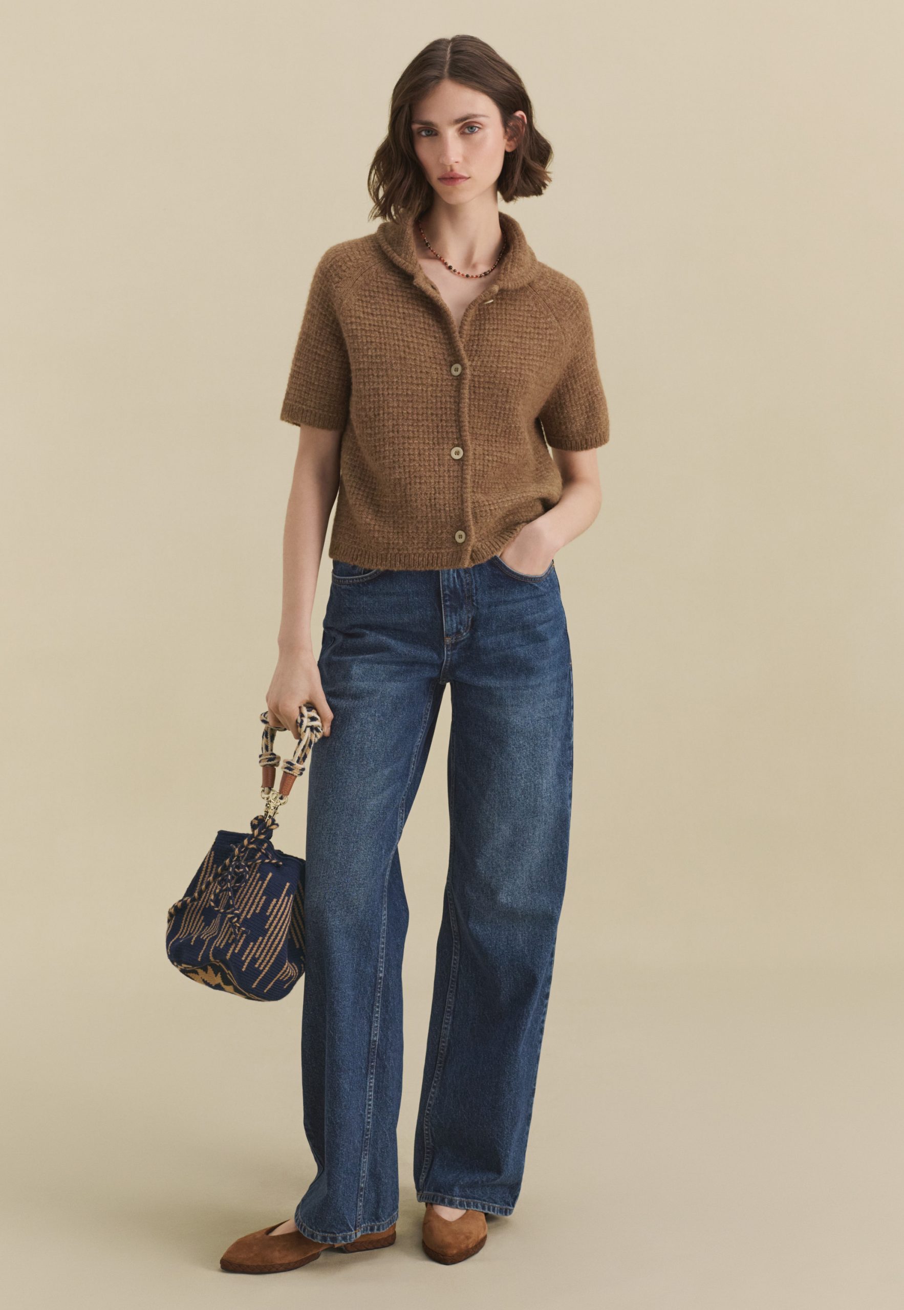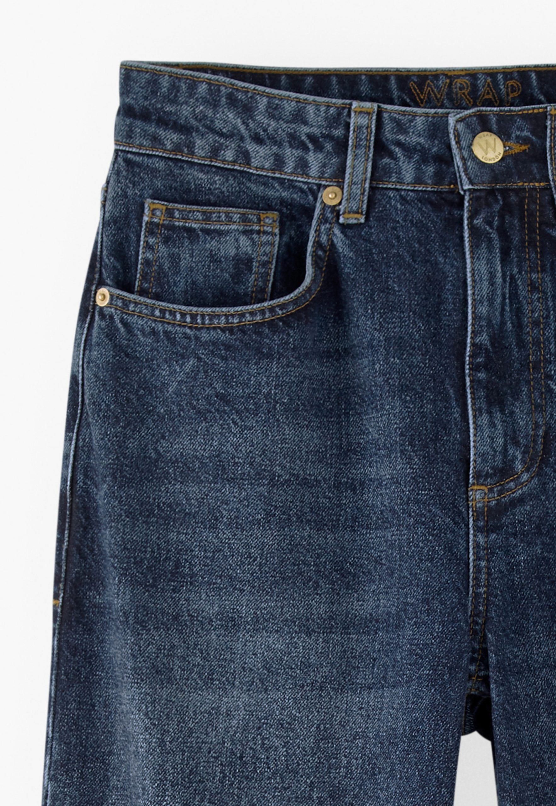 - Zip and button fastening at fly