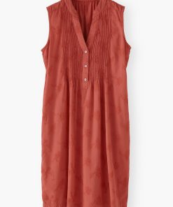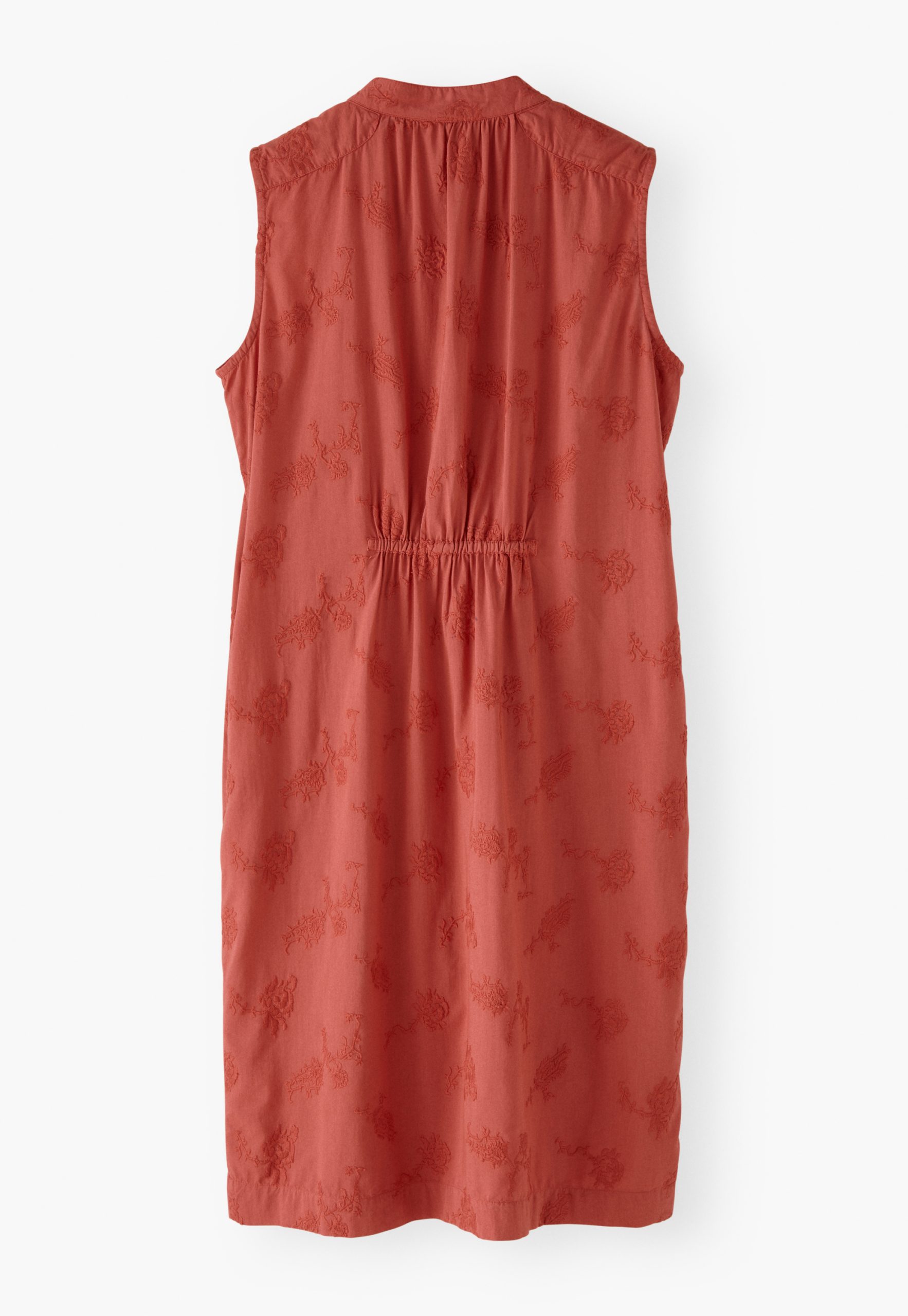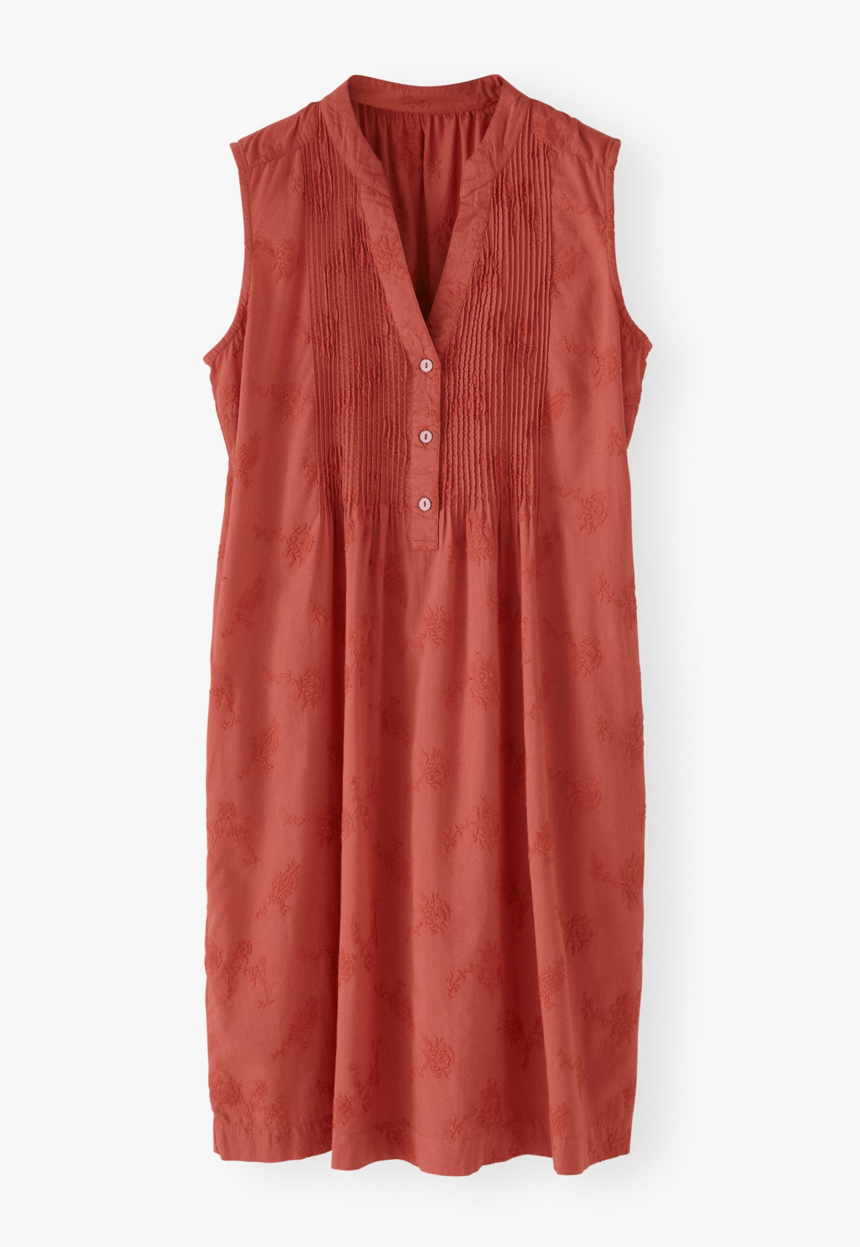 A lightweight summer dress in cool cotton lifted with tonal floral embroidery. With a pintuck detail at the front and neatly gathered at the centre-back. Slip your hands into the hidden side-pockets.