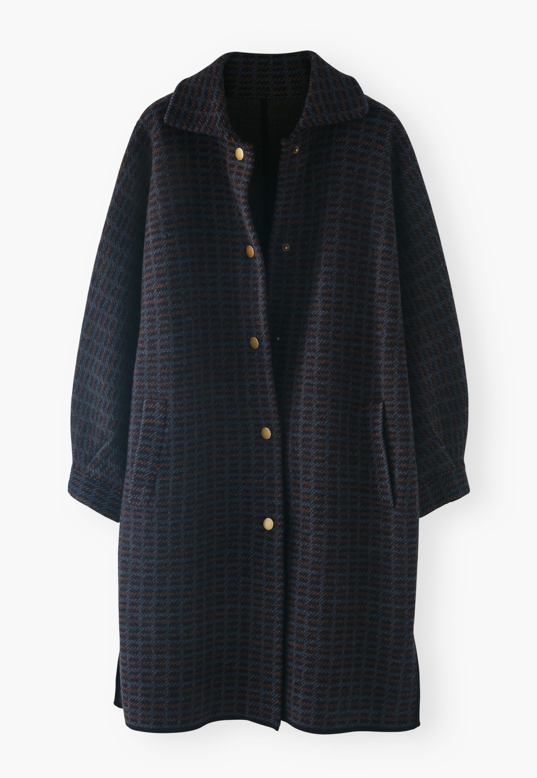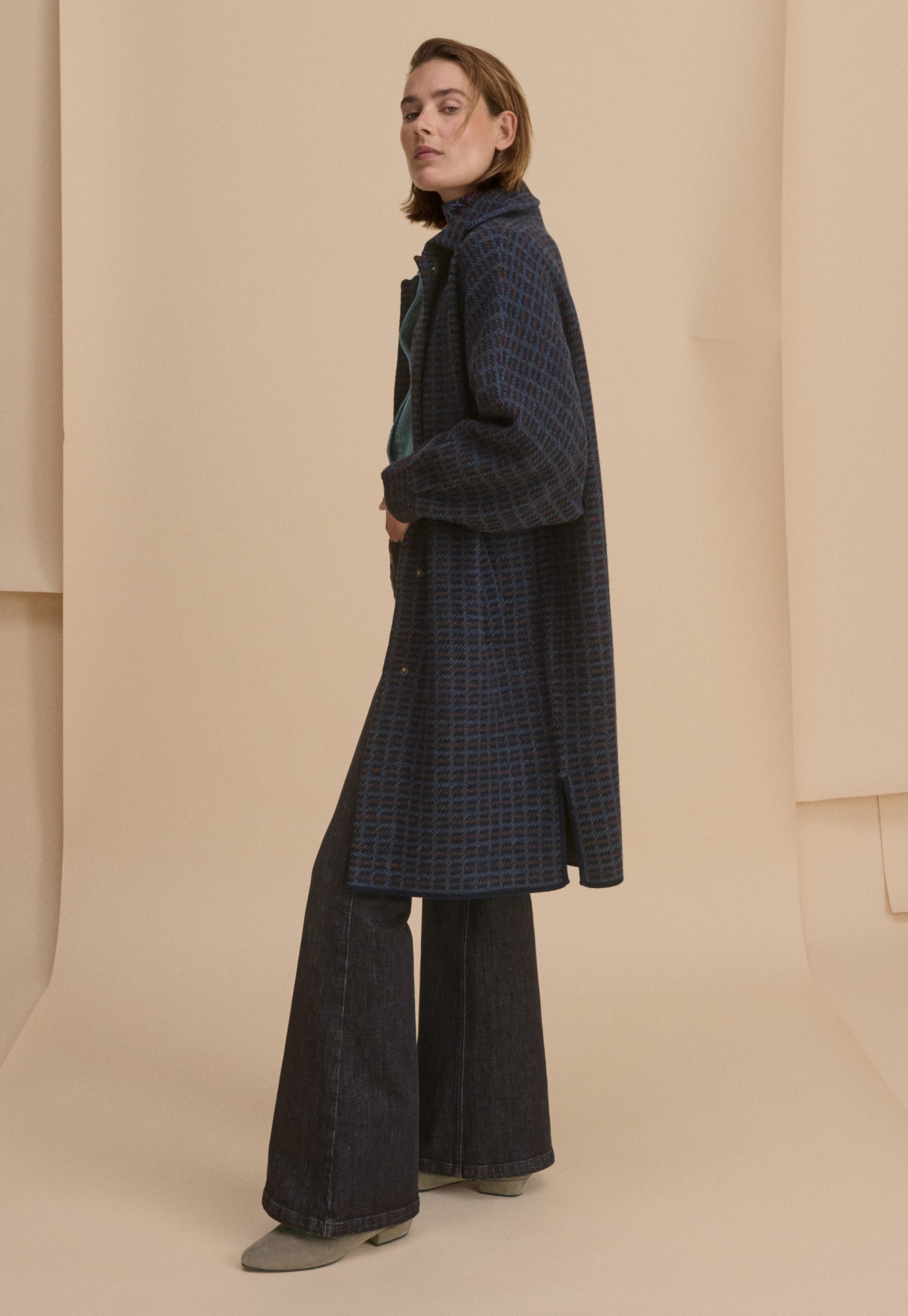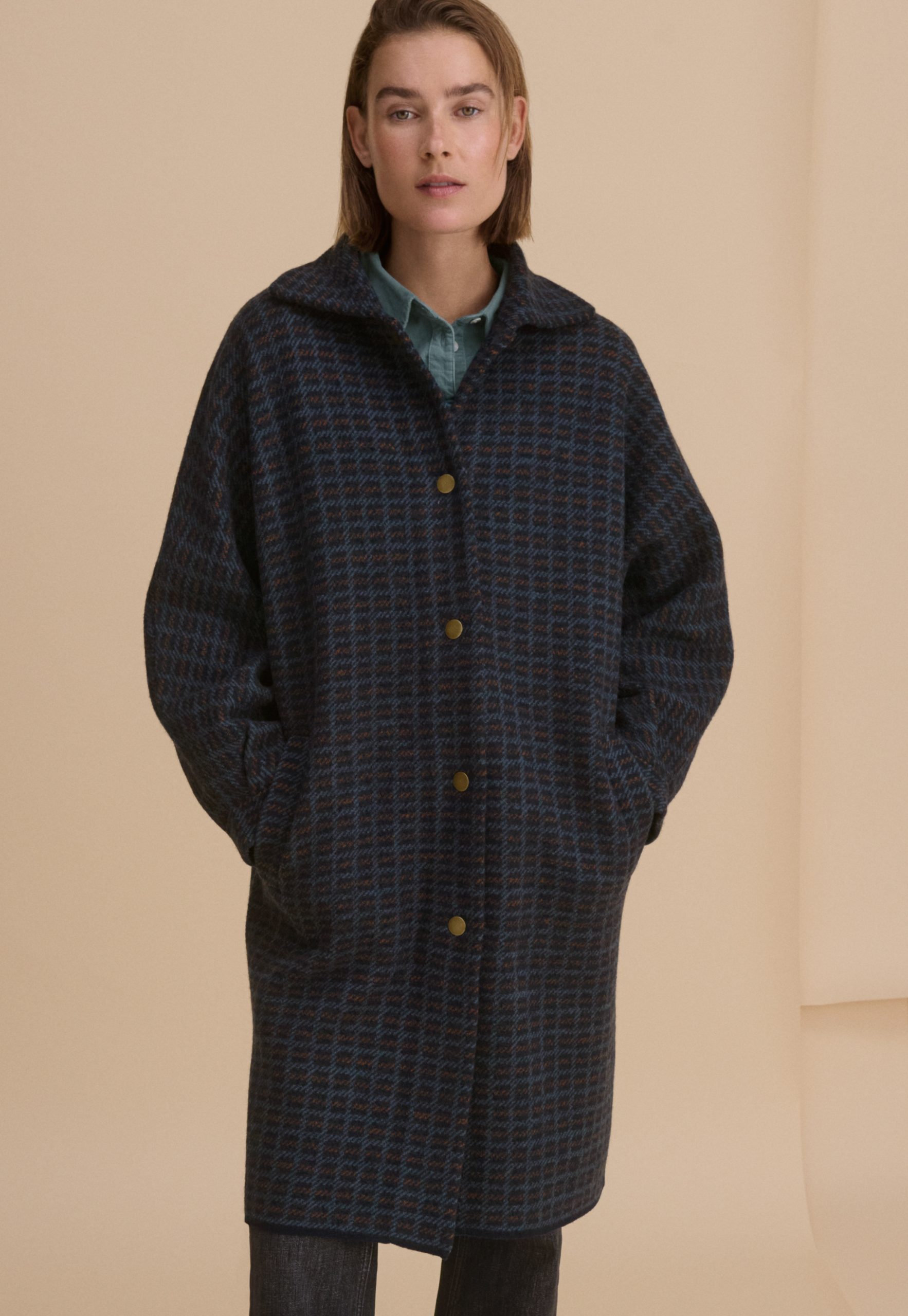 Whether you wear it over denim or a dress, this boiled merino wool coat ensures you’ll look both cool and chic. Softly structured with an all-over check pattern, it’s tailored for a relaxed, oversize fit with full-length sleeves, deep side-splits for easy movement and those essential pockets.