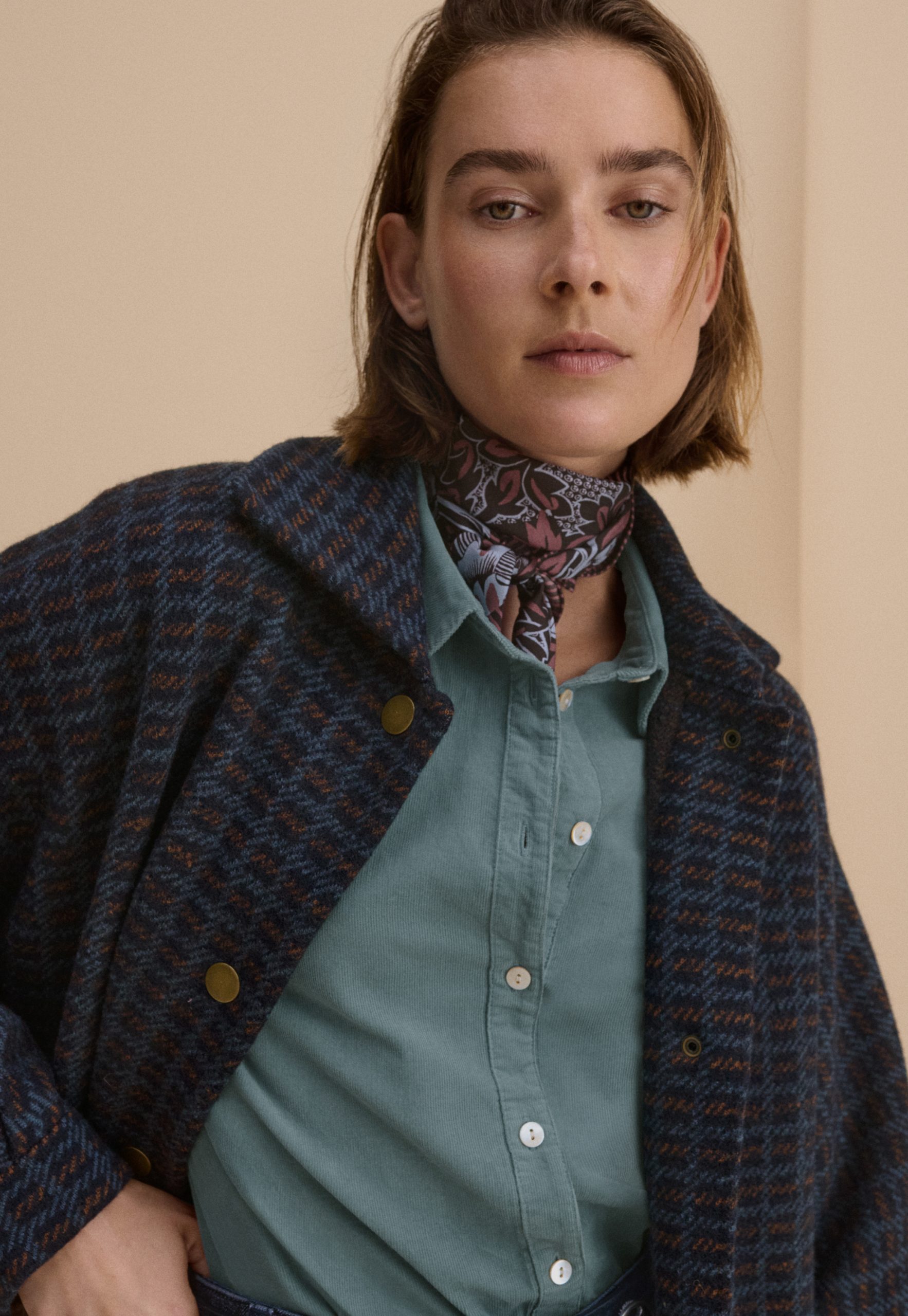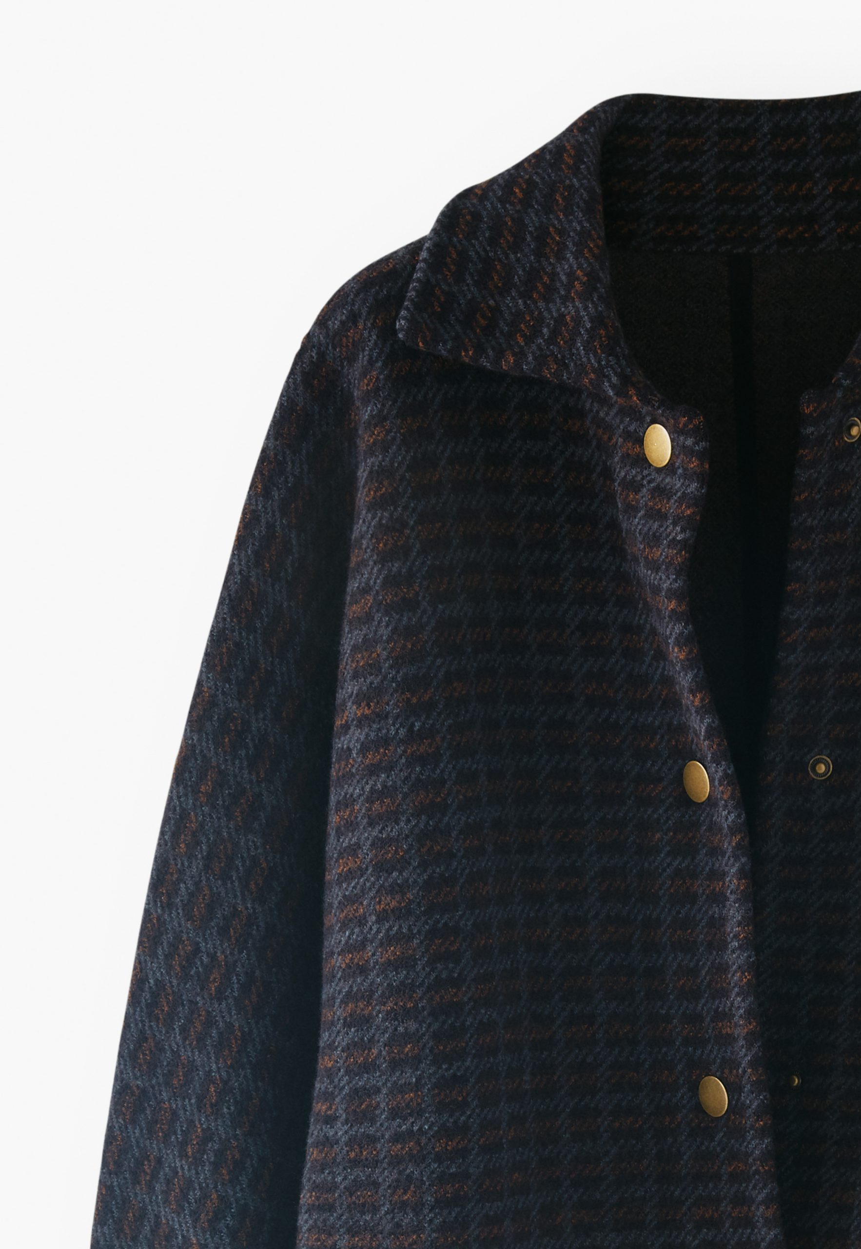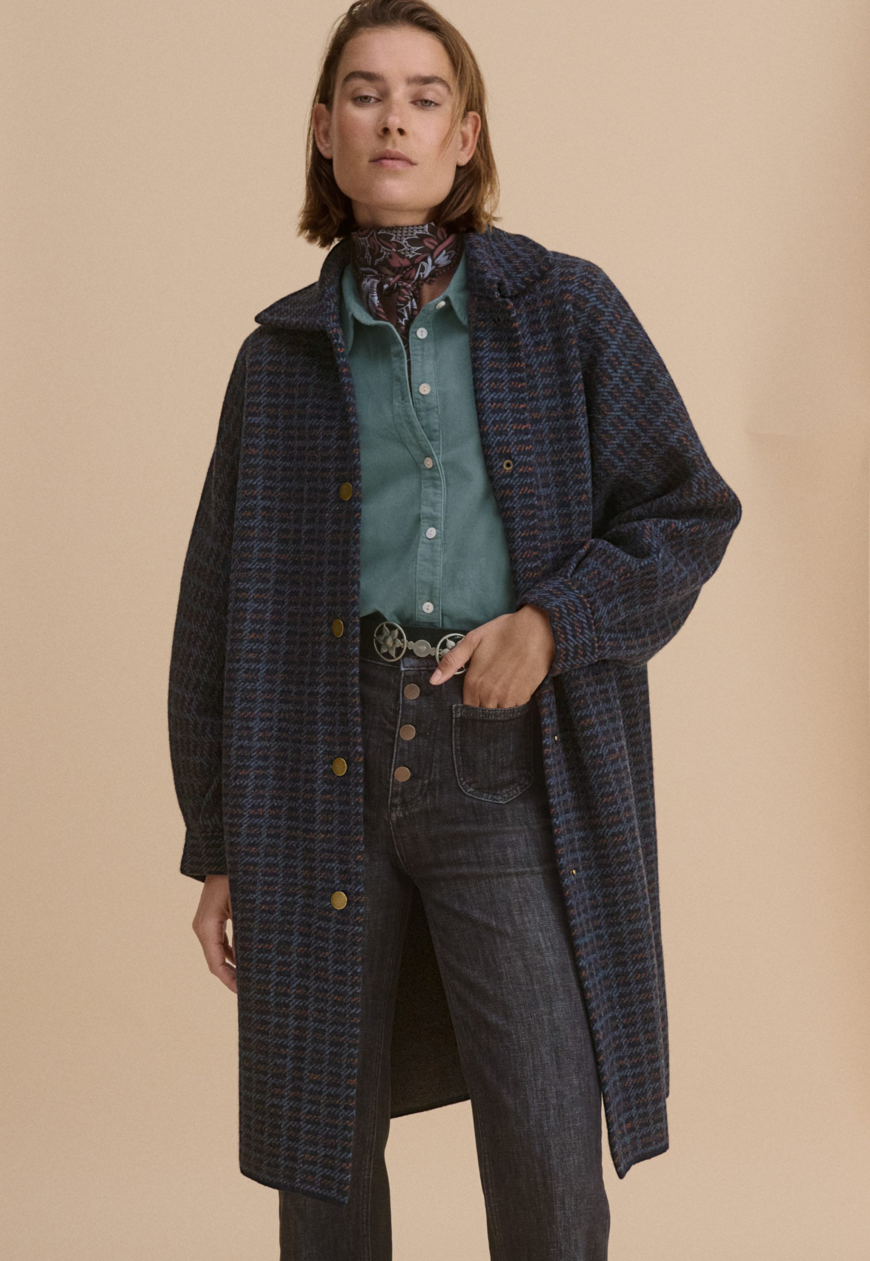 Whether you wear it over denim or a dress, this boiled merino wool coat ensures you’ll look both cool and chic. Softly structured with an all-over check pattern, it’s tailored for a relaxed, oversize fit with full-length sleeves, deep side-splits for easy movement and those essential pockets.