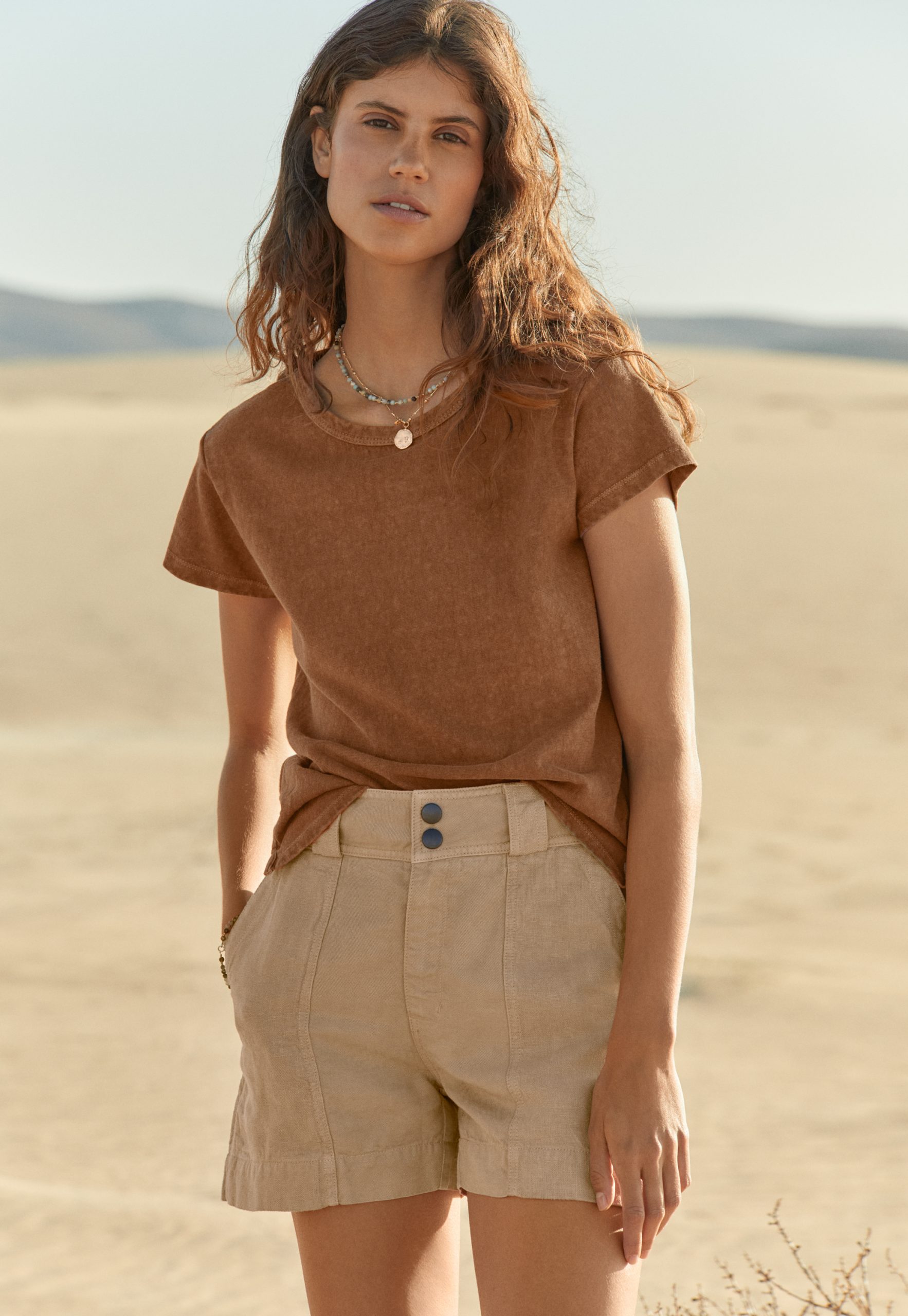 The blend of lyocell and linen creates a softly structured fabric which is perfect for these tailored shorts. With two deep patch-pockets at the front and sides and more at the back, there are wide loops for your belt as well.