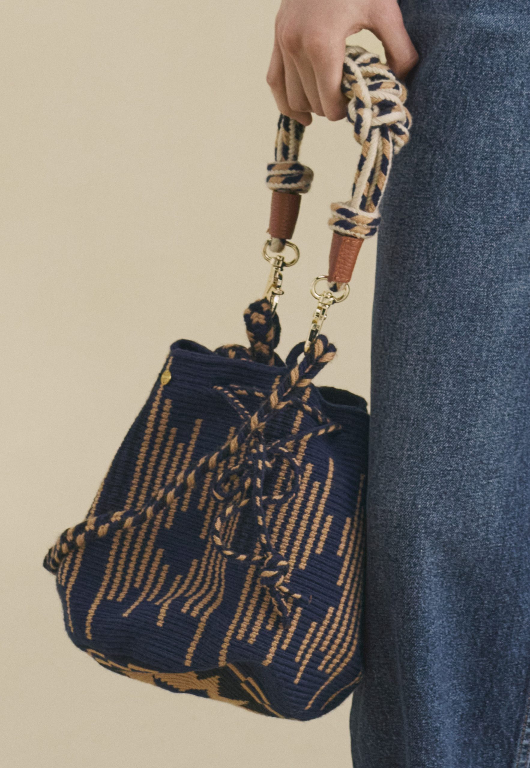 - Handwoven by Wayuu artisans in Colombia using traditional techniques