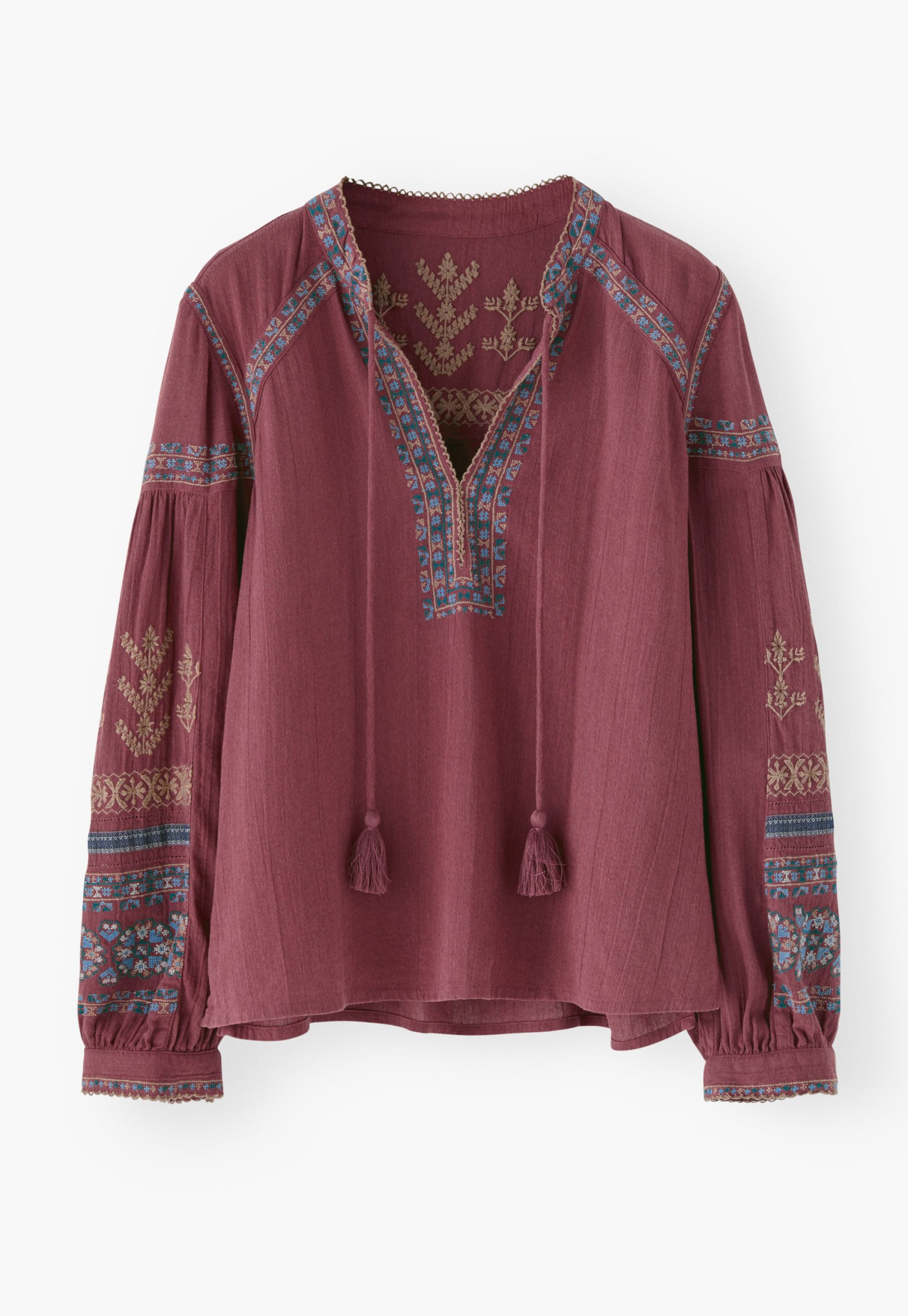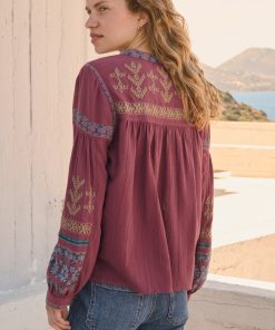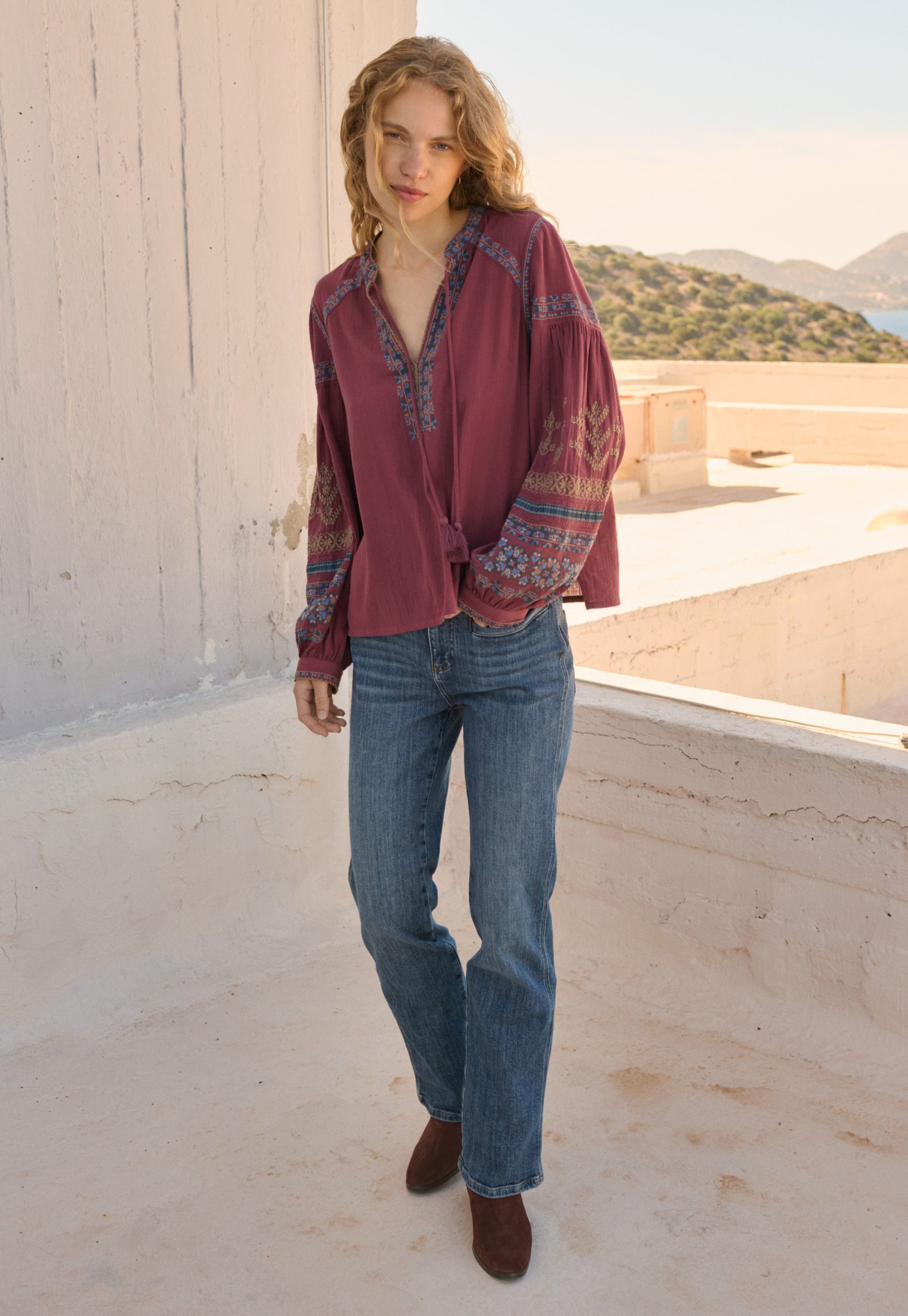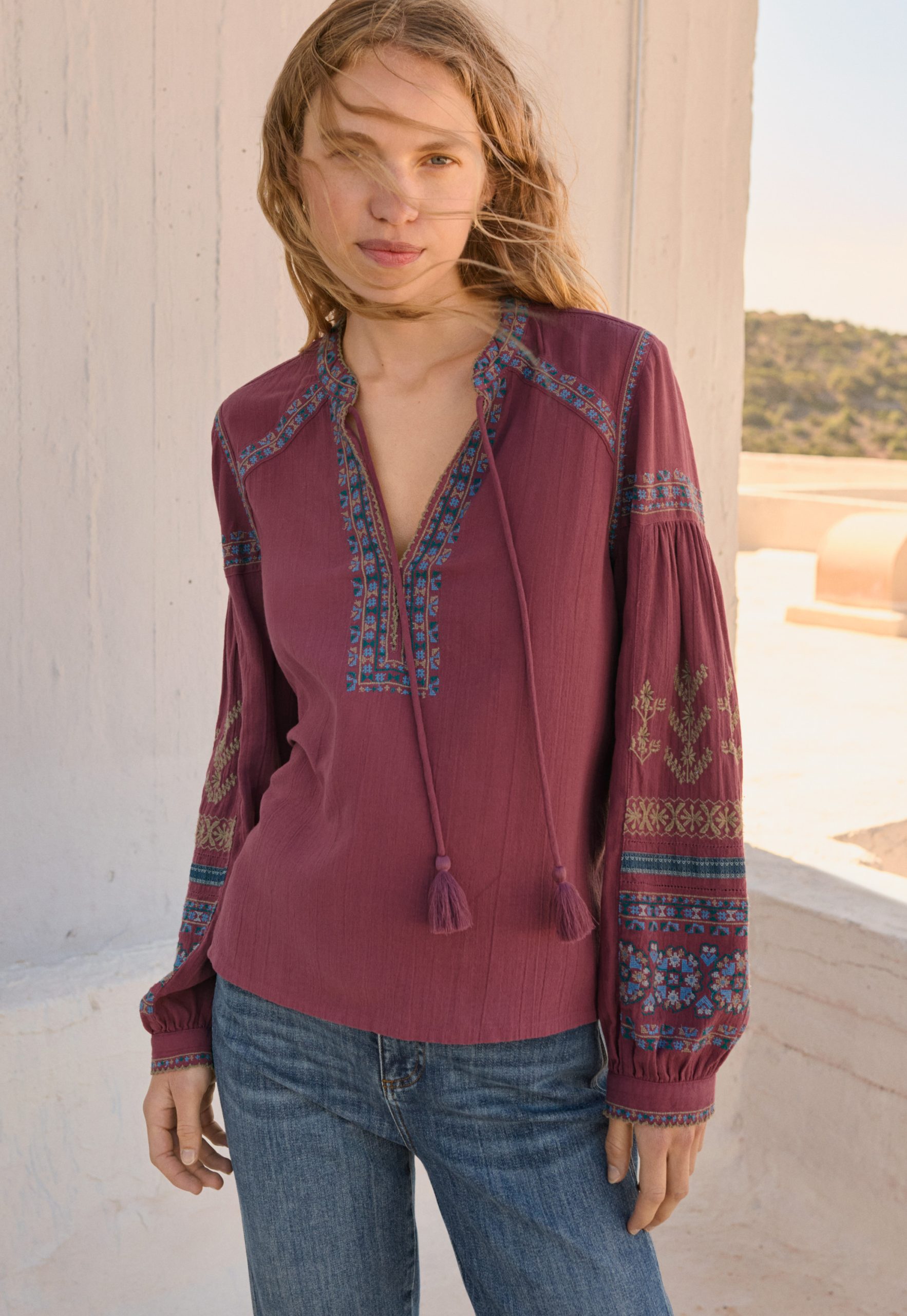 Bringing you a blouse that’s elevated with exquisite embroidery yet keeps the vibe loose and relaxed. Made from lightweight cotton, it has a notch-neckline with a playful tassel-tie and breezy full-length blouson sleeves.