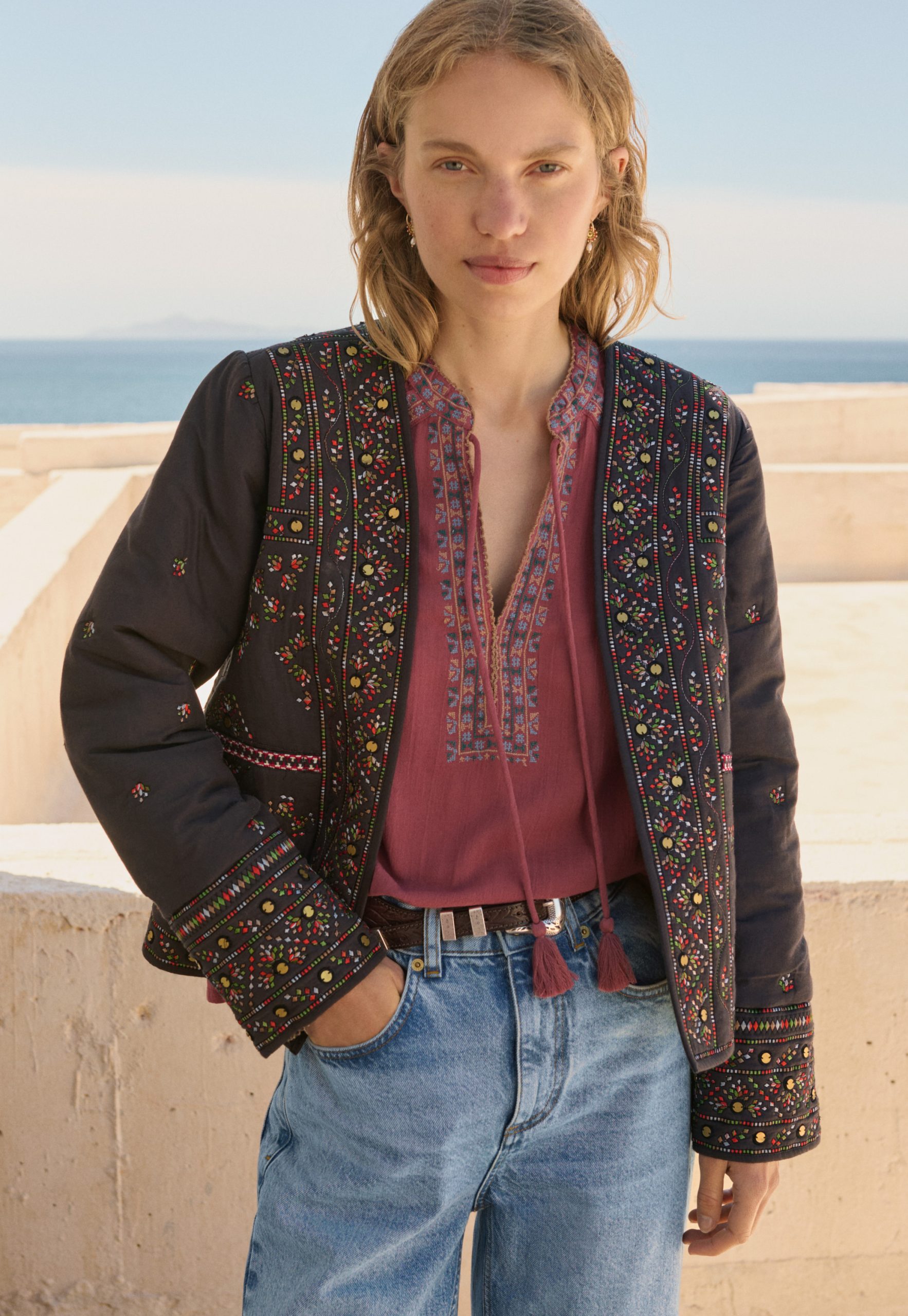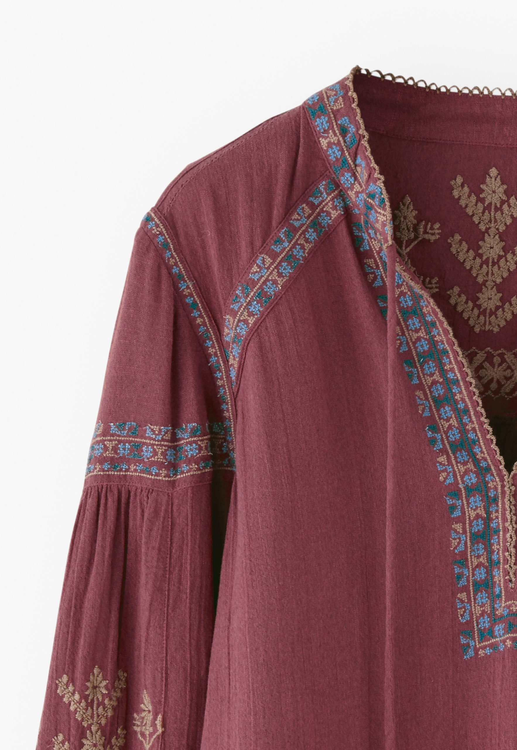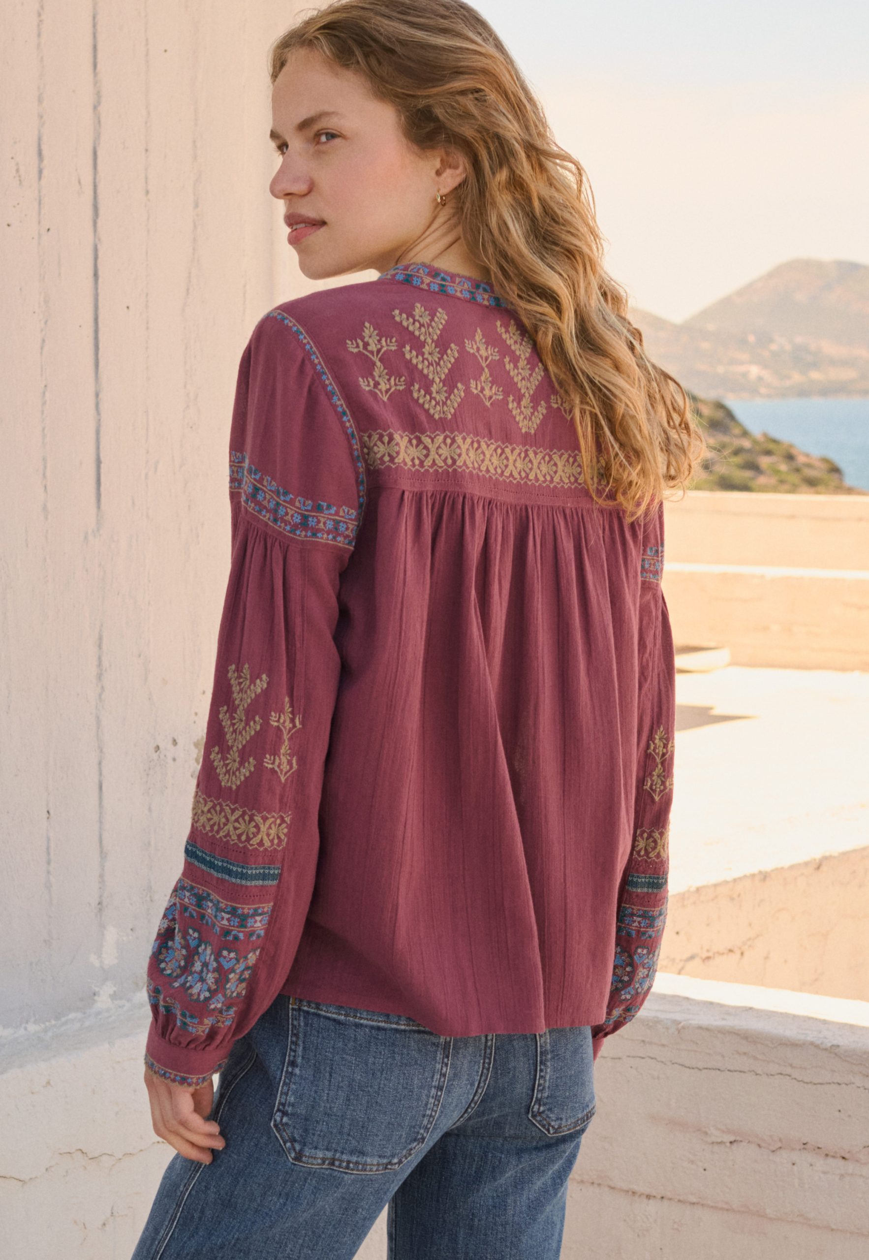 Bringing you a blouse that’s elevated with exquisite embroidery yet keeps the vibe loose and relaxed. Made from lightweight cotton, it has a notch-neckline with a playful tassel-tie and breezy full-length blouson sleeves.