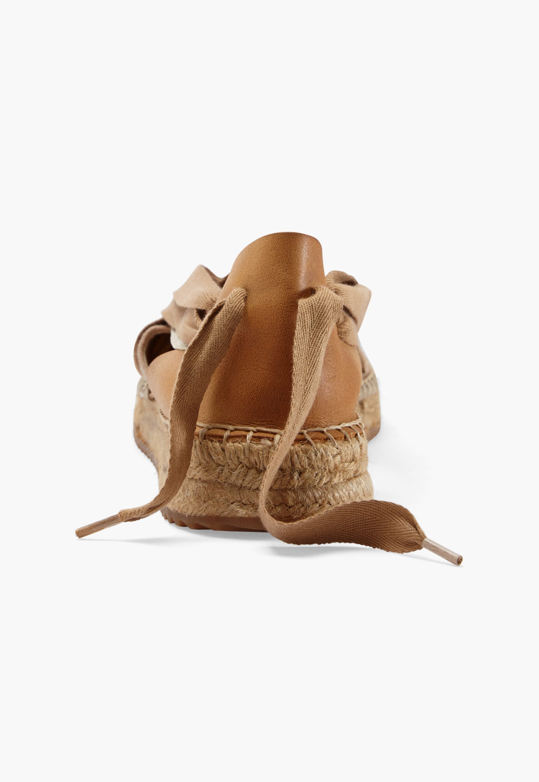 Summer espadrilles with a leather and cotton upper with elegant cotton ribbons at the toe and a cotton ribbon ankle fastening for a secure fit. With a leather footbed for comfort, and a jute and rubber sole for that classic espadrille look.
