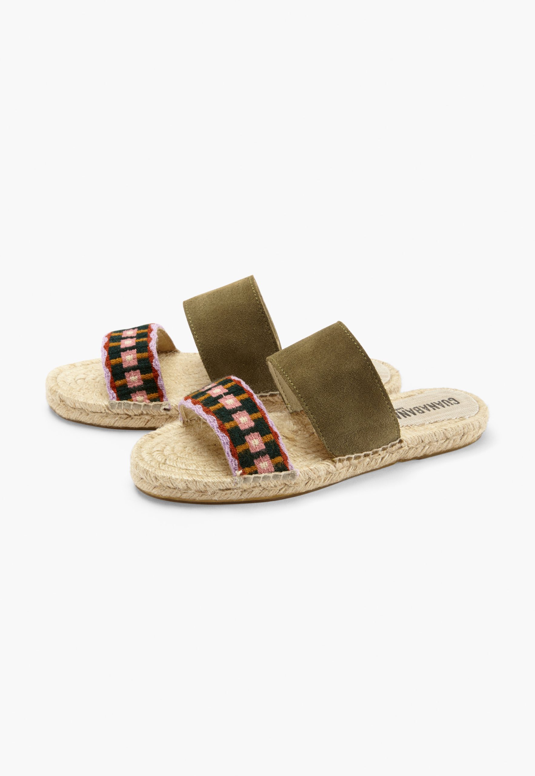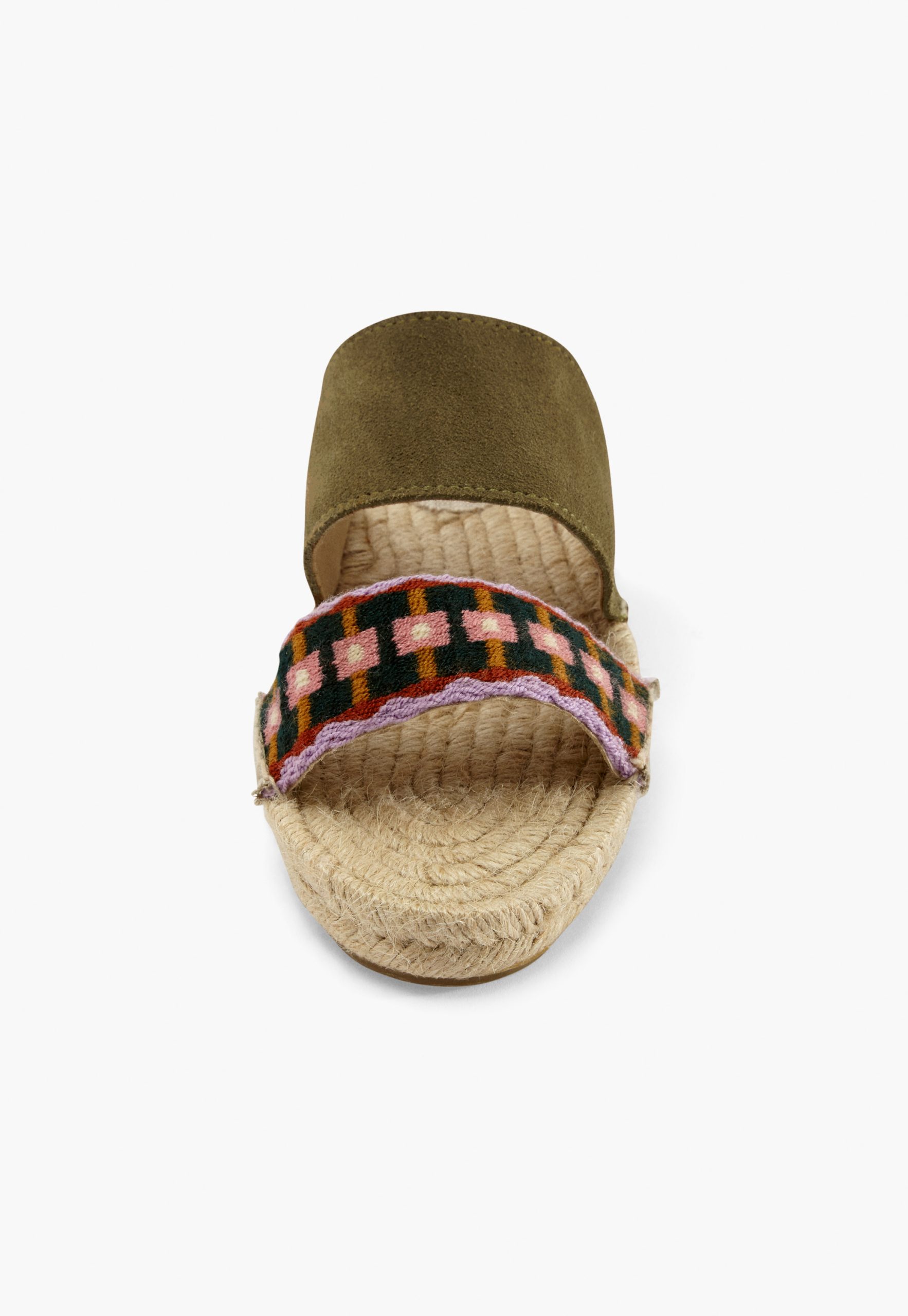 Espadrilles with style, designed in Madrid and handmade by skilled artisans in Spain. Featuring a stylish double strap design combining vibrant woven Wayuu textile with luxurious suede. With a durable jute and rubber sole.