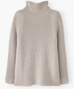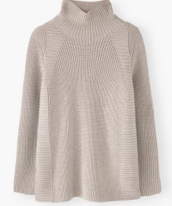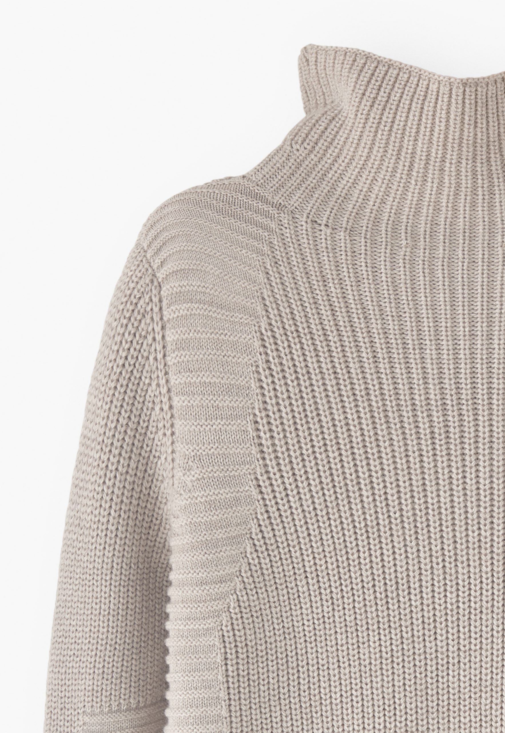 For those who like a longer-length sweater, this is the one for you. In smooth and soft merino wool and organic cotton, with a high neck and full-length sleeves.