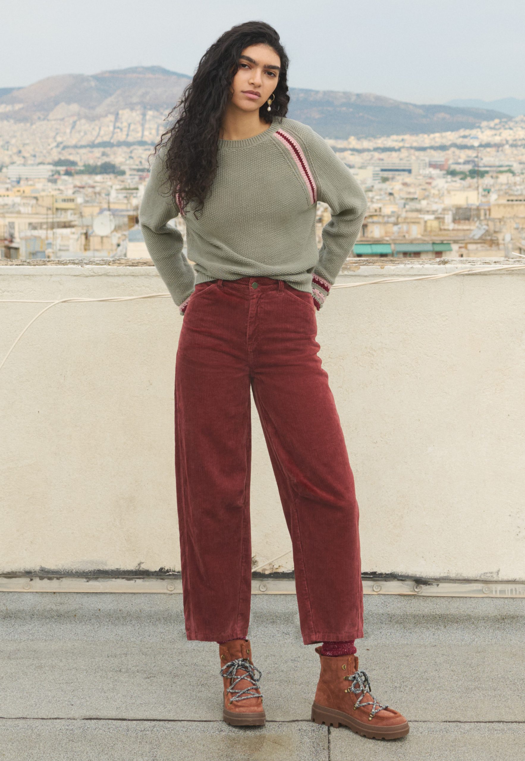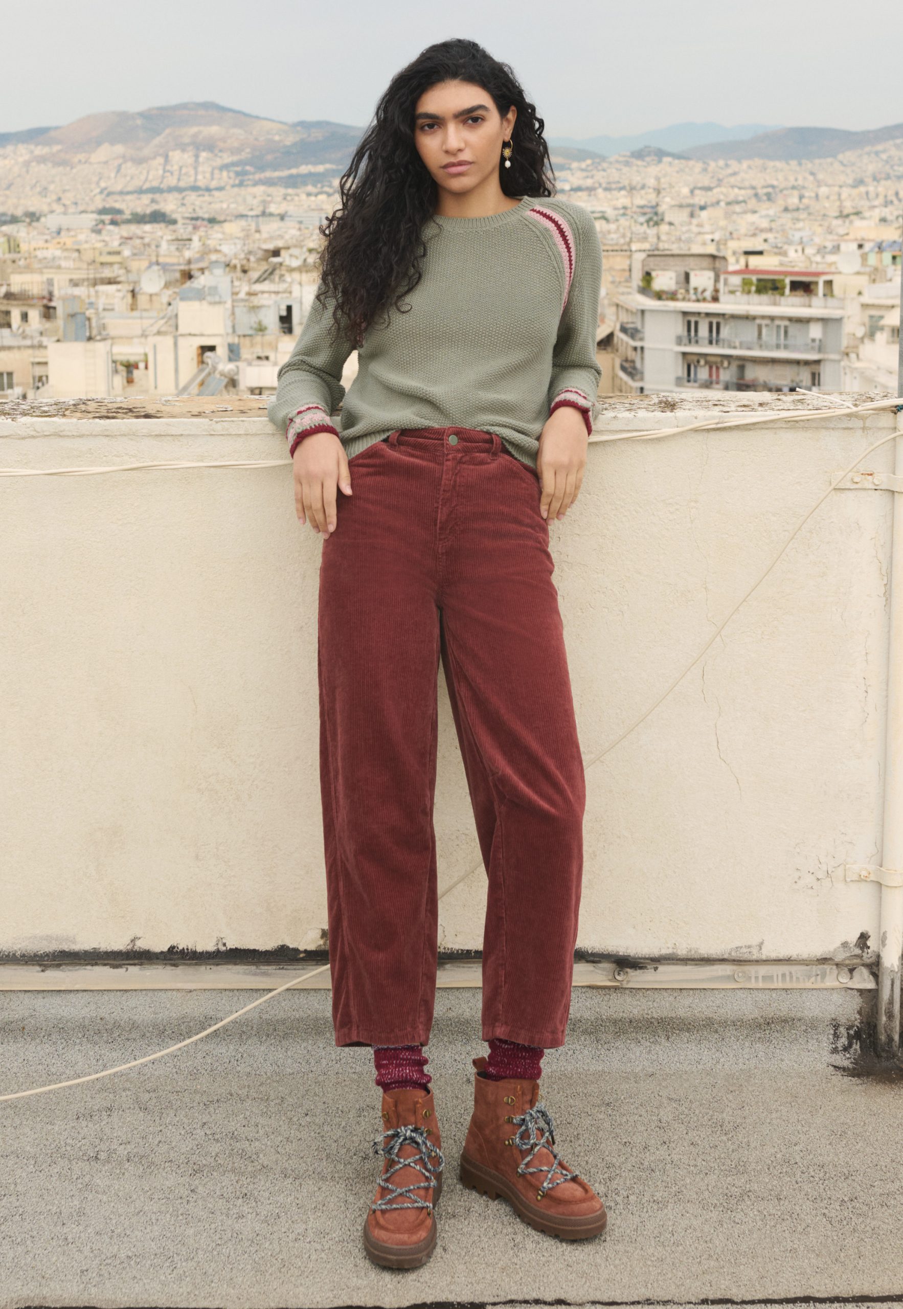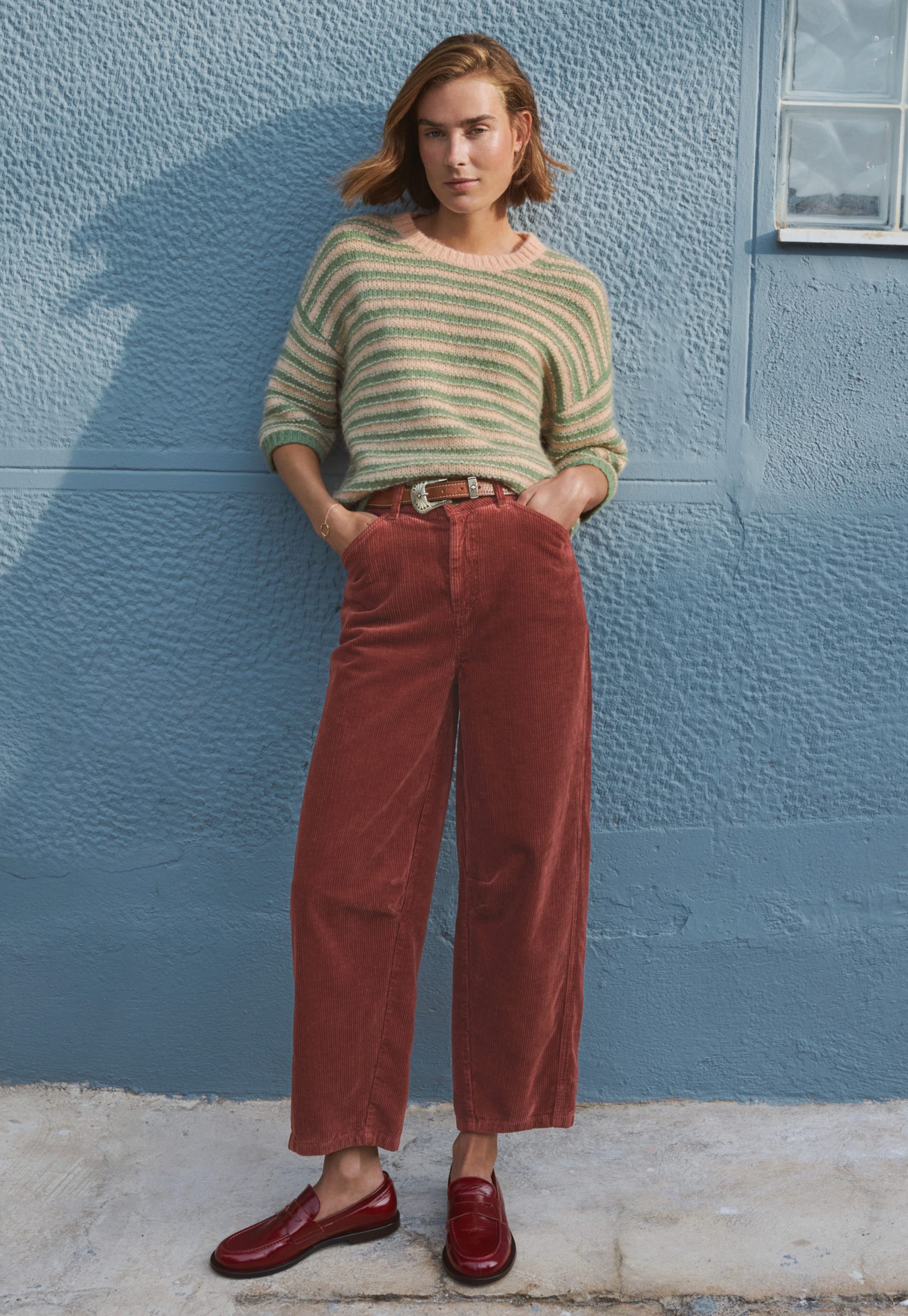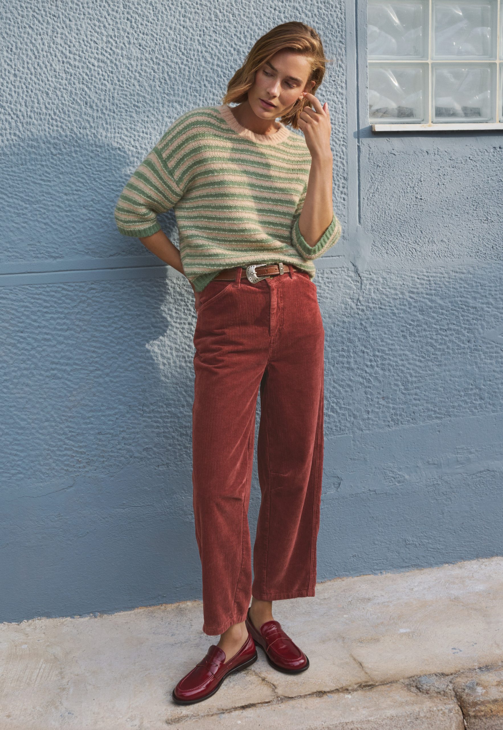 Our popular high-waist horseshoe trouser shape now available in soft fine-wale cord. Both contemporary and comfortable, they’re easy to style with soft knits or a neat blouse.