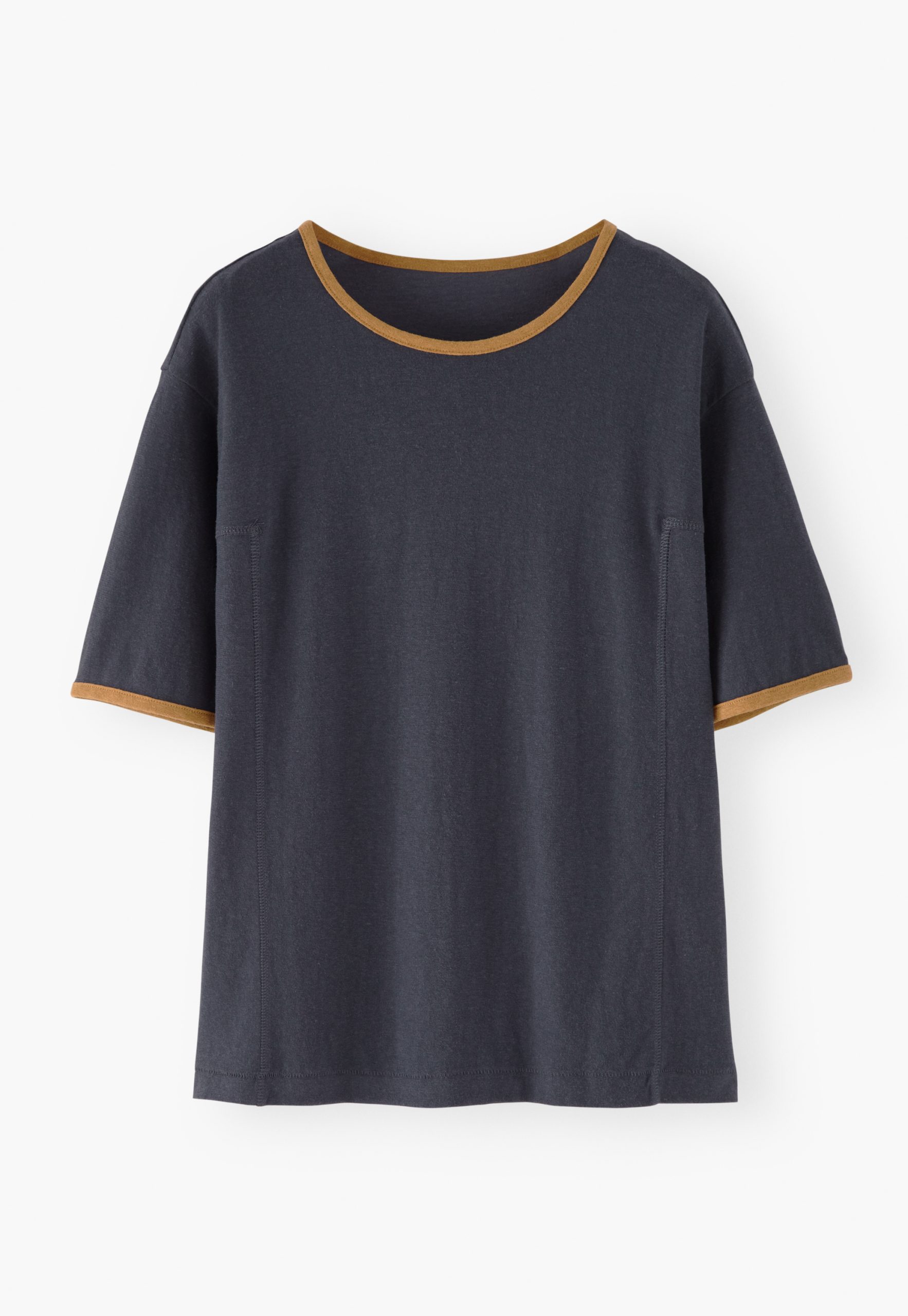 There’s something particularly pleasing about contrasting trim and this T-shirt brings out the best. Made in a relaxed fit from soft hemp and organic cotton jersey and reactive-dyed for a gorgeous depth of colour.