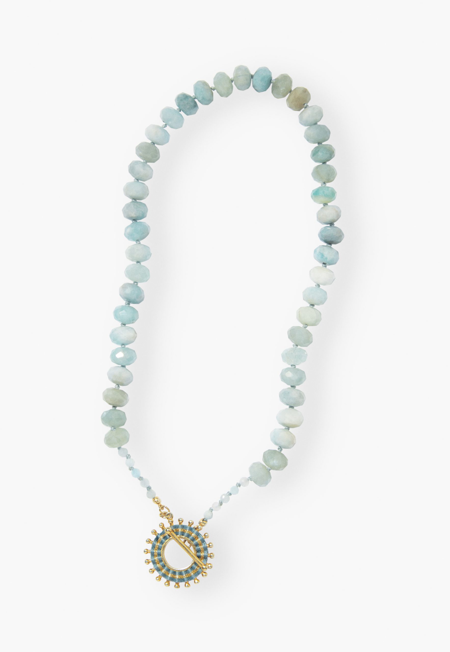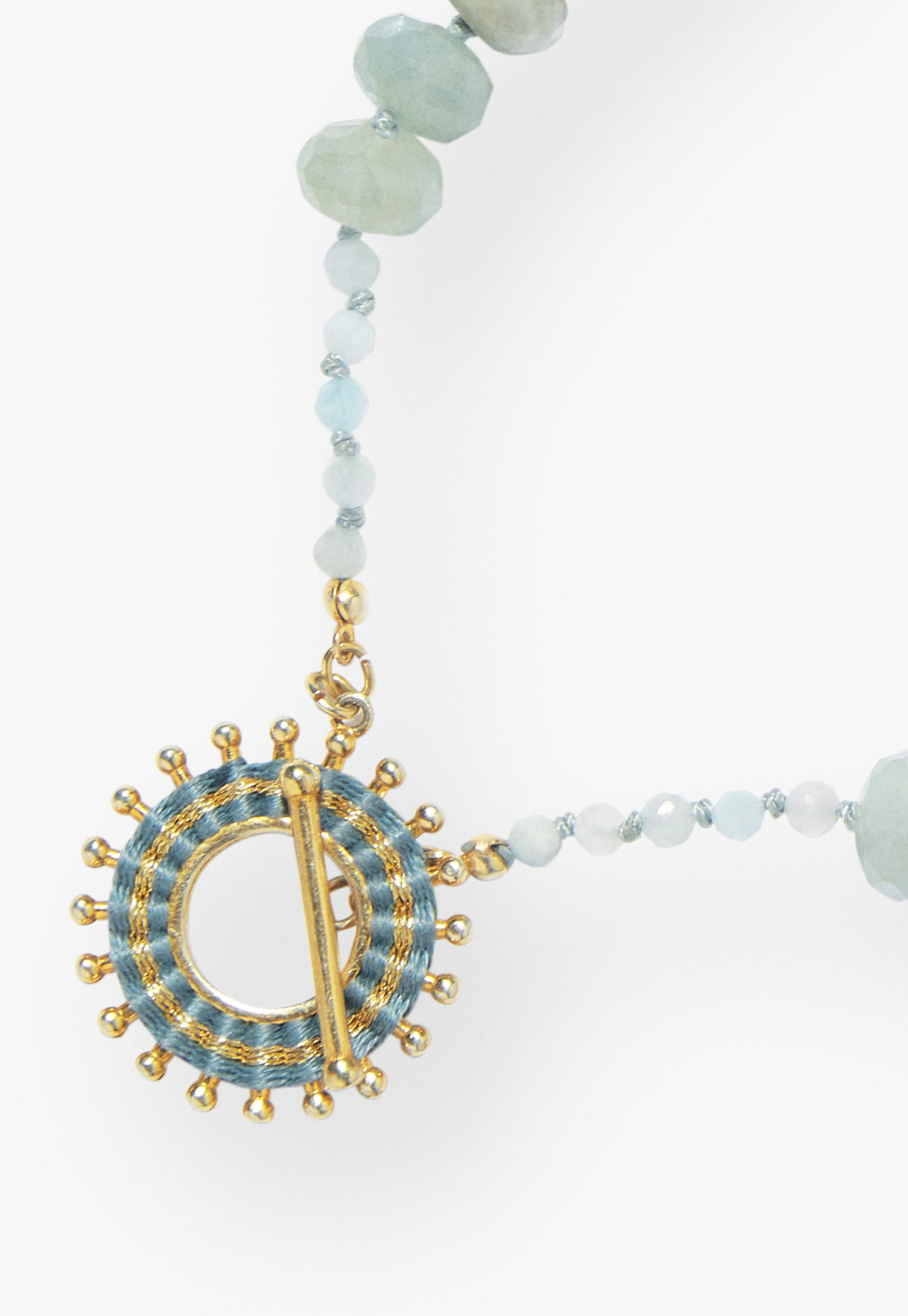 - 90% Natural Aquamarine Stone 10% 18ct Gold-Plated Sterling Silver Hand Woven Thread Charm