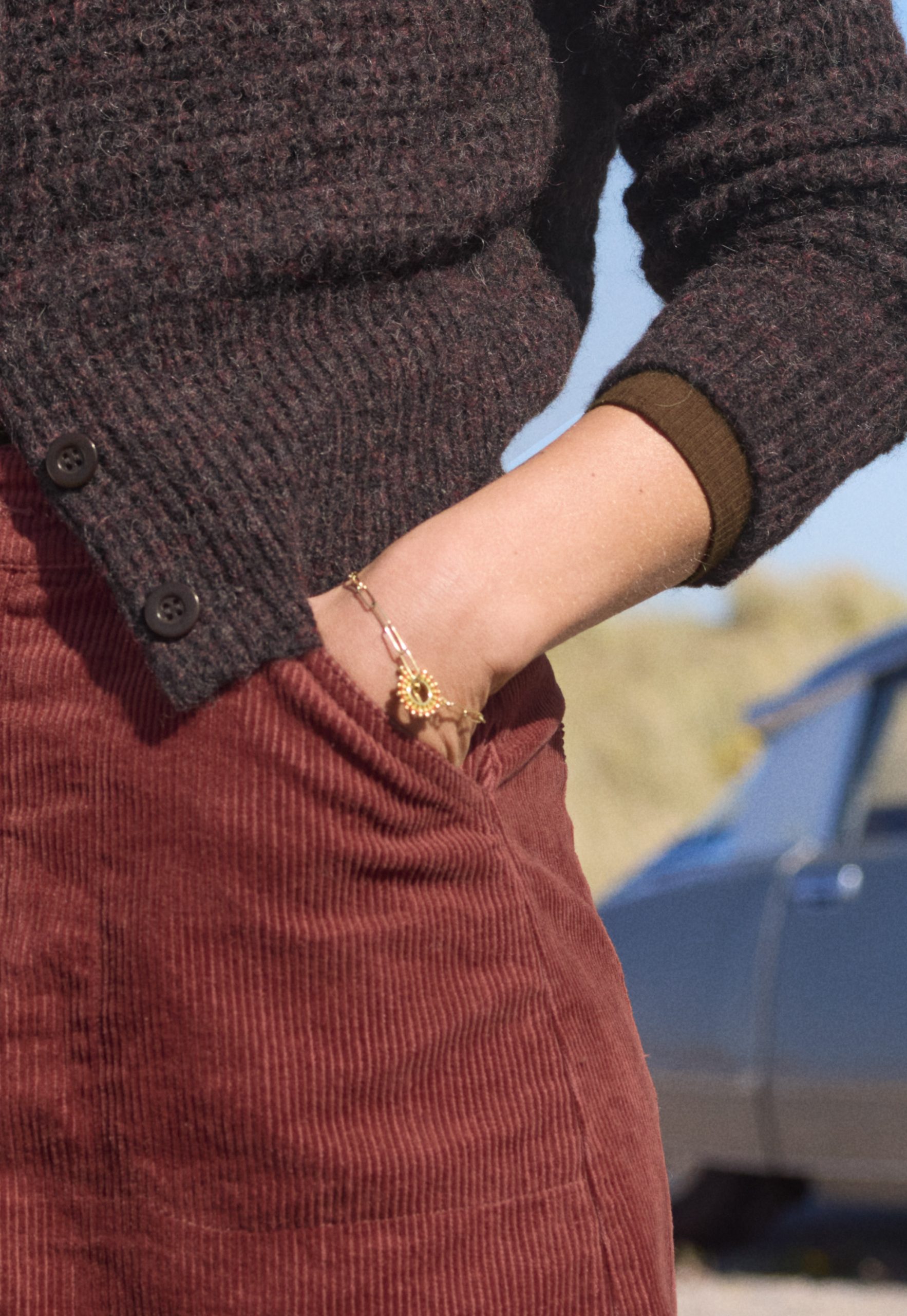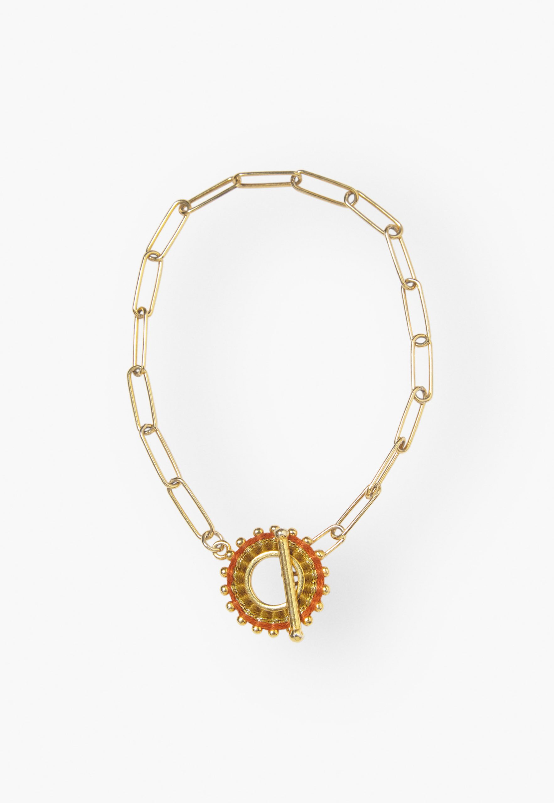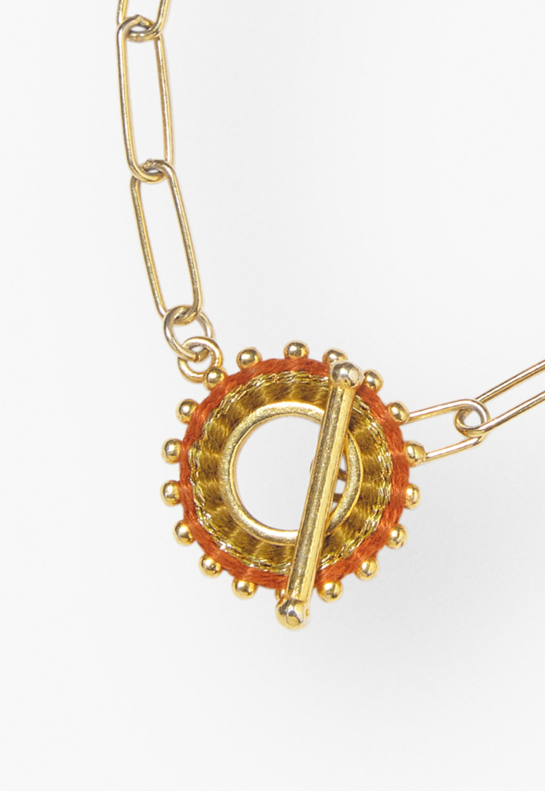 - 75% 18ct Gold-Plated Sterling Silver Chain 25% Hand Woven Thread Charm