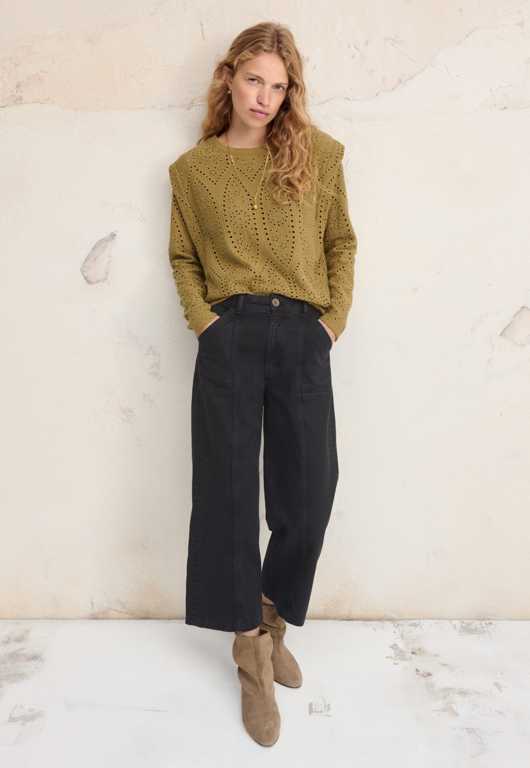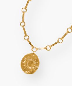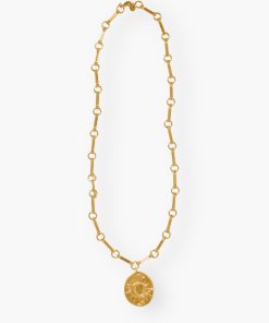 A long paperclip-chain necklace finished with a filigree ball charm.