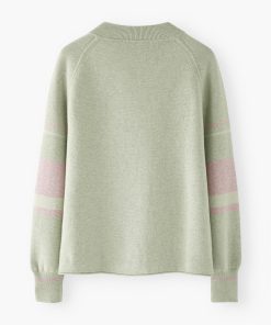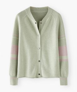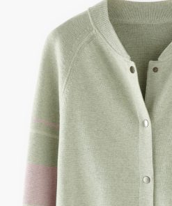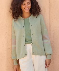 There’s a touch of bomber jacket styling with this smooth knitted cotton jacket. It’s beautifully finished with neat stripy rib cuffs and a roll-back detail at the hem.