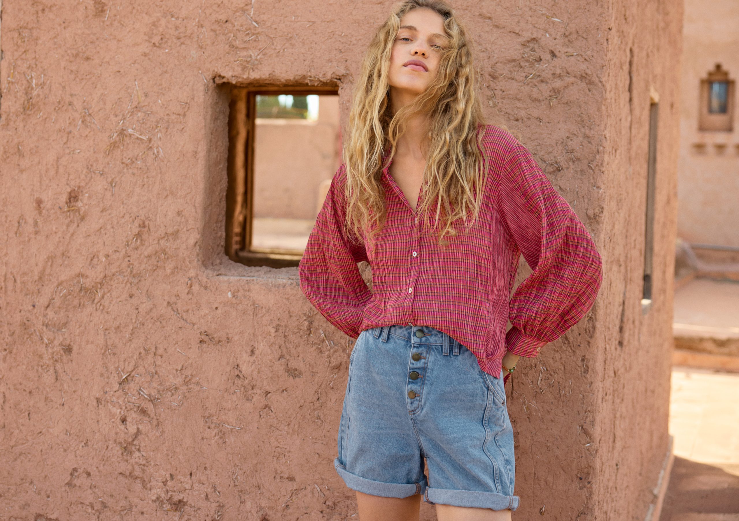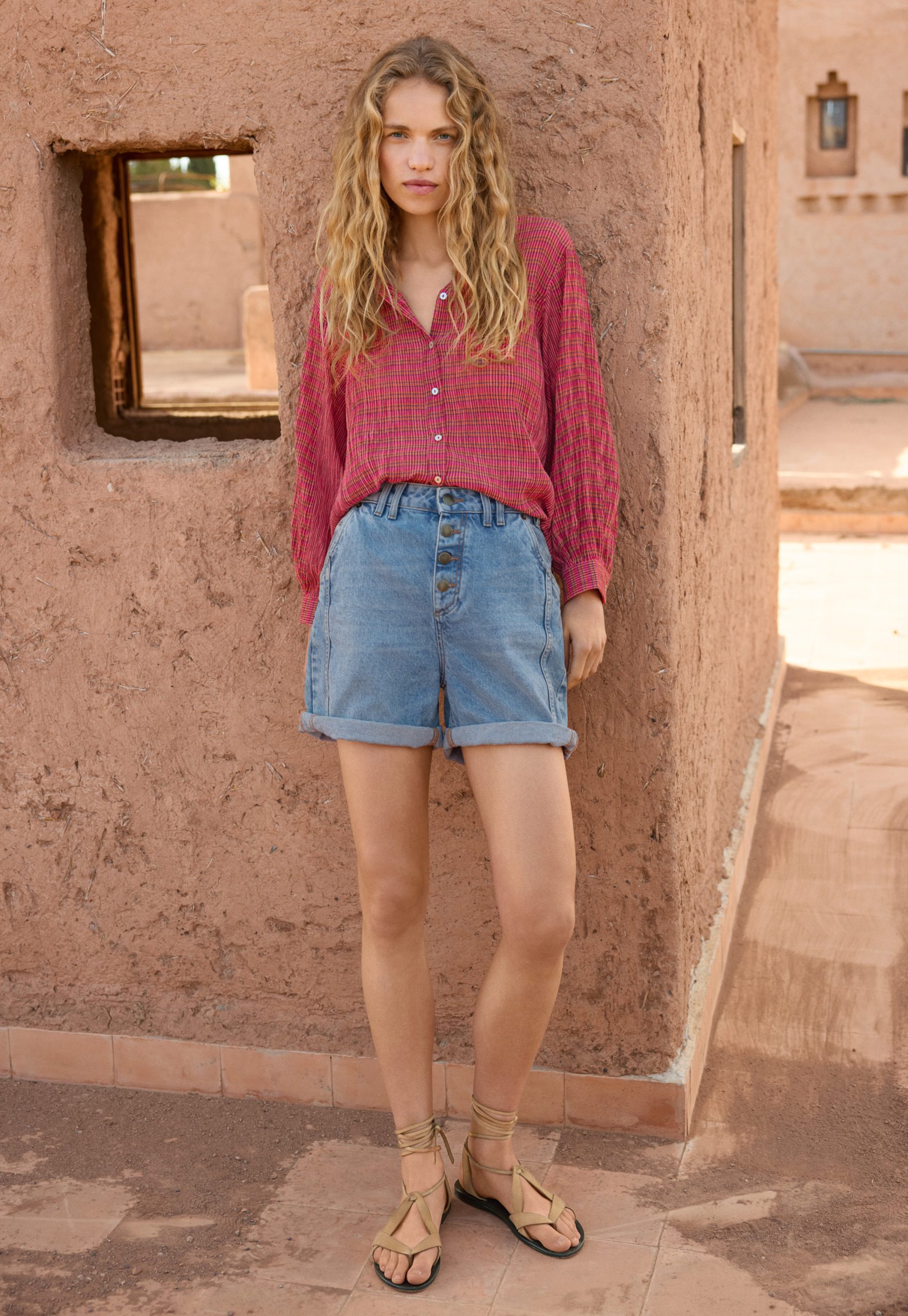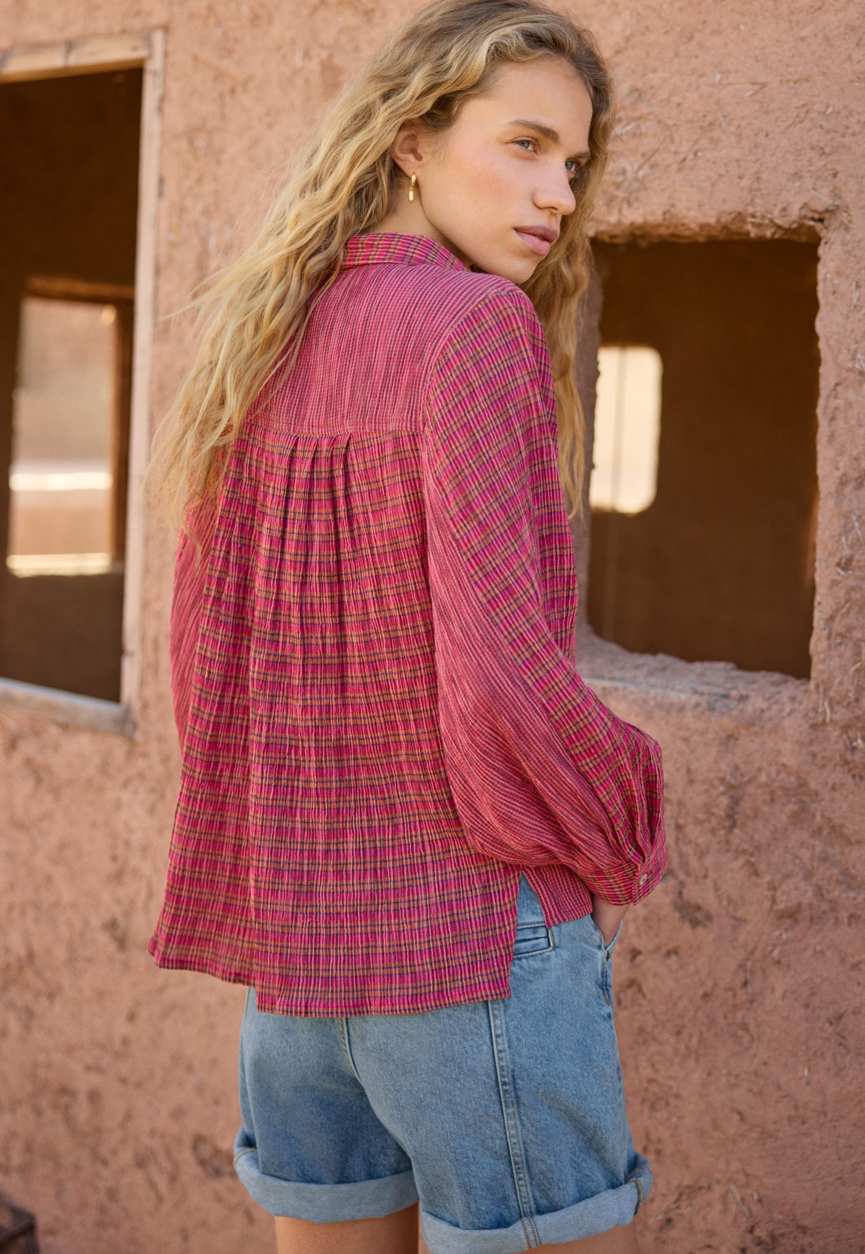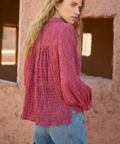 Wrap London Women’s Mixed Check Blouse | Hot Pink