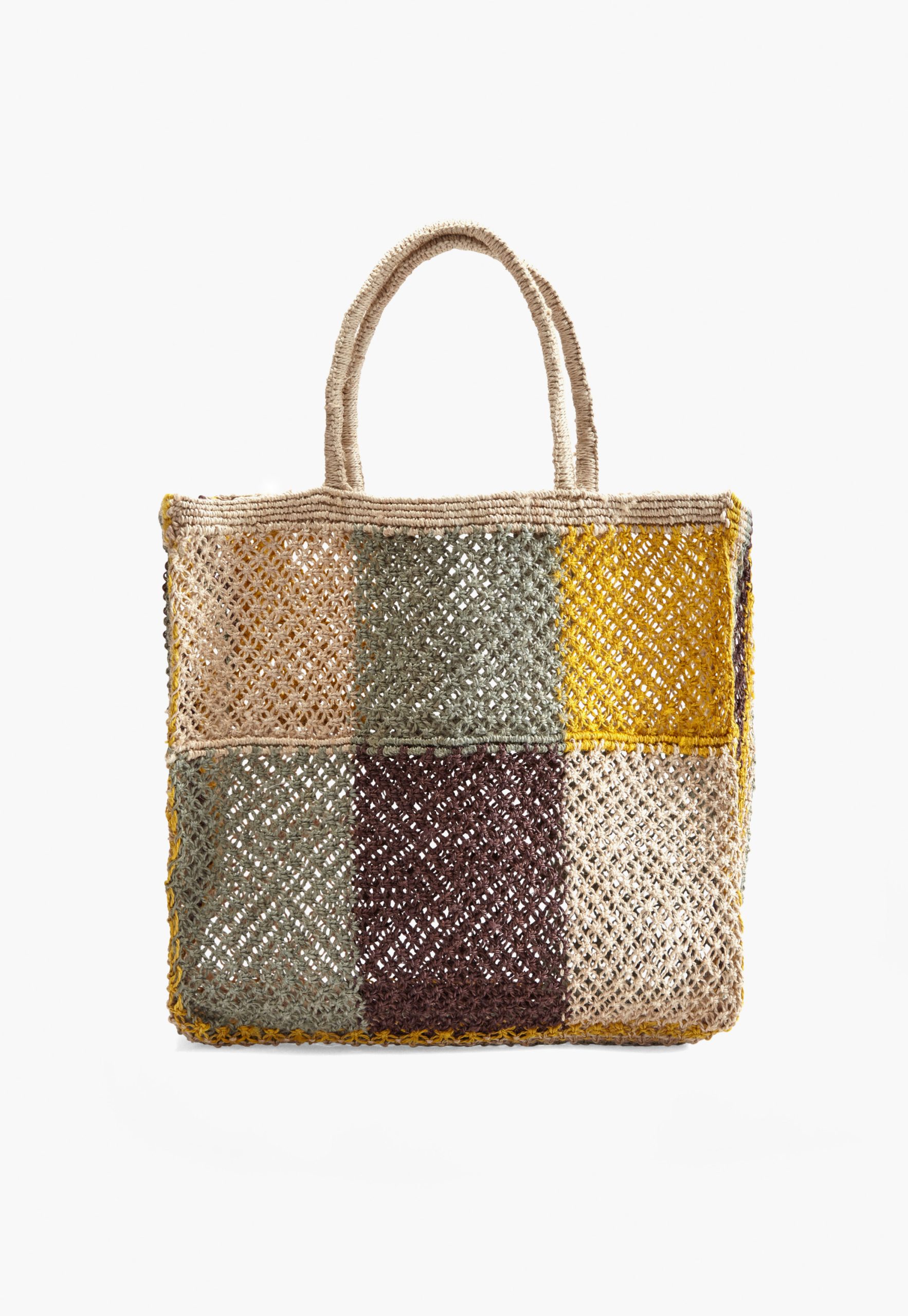 - Colour-blocked, knotted jute bag