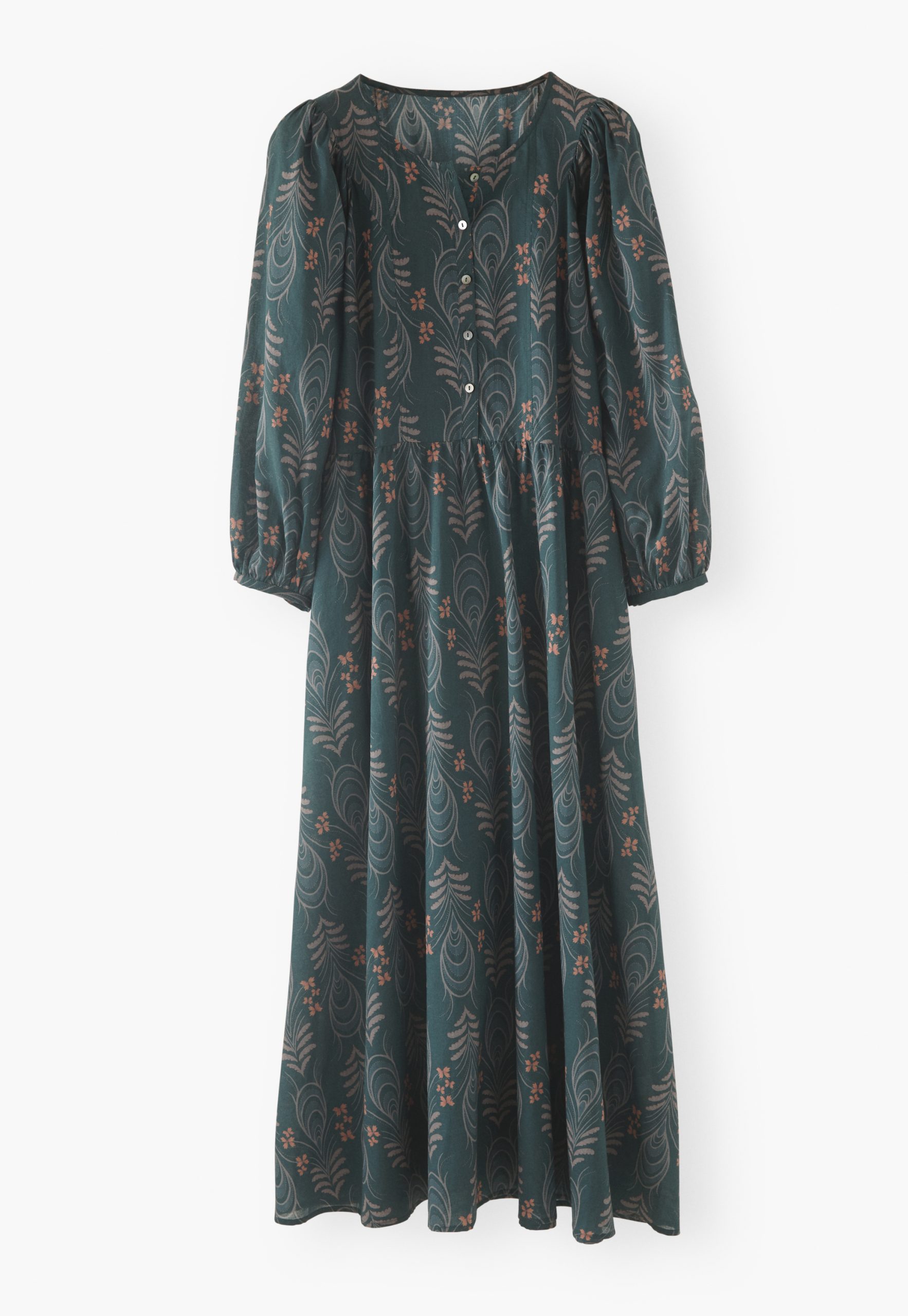 A beautiful, botanical, exclusive Wrap London print flows across this crisp cotton maxi-dress that’s perfect to dress up for a special occasion or to just feel special.