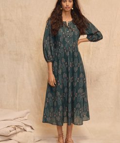 A beautiful, botanical, exclusive Wrap London print flows across this crisp cotton maxi-dress that’s perfect to dress up for a special occasion or to just feel special.