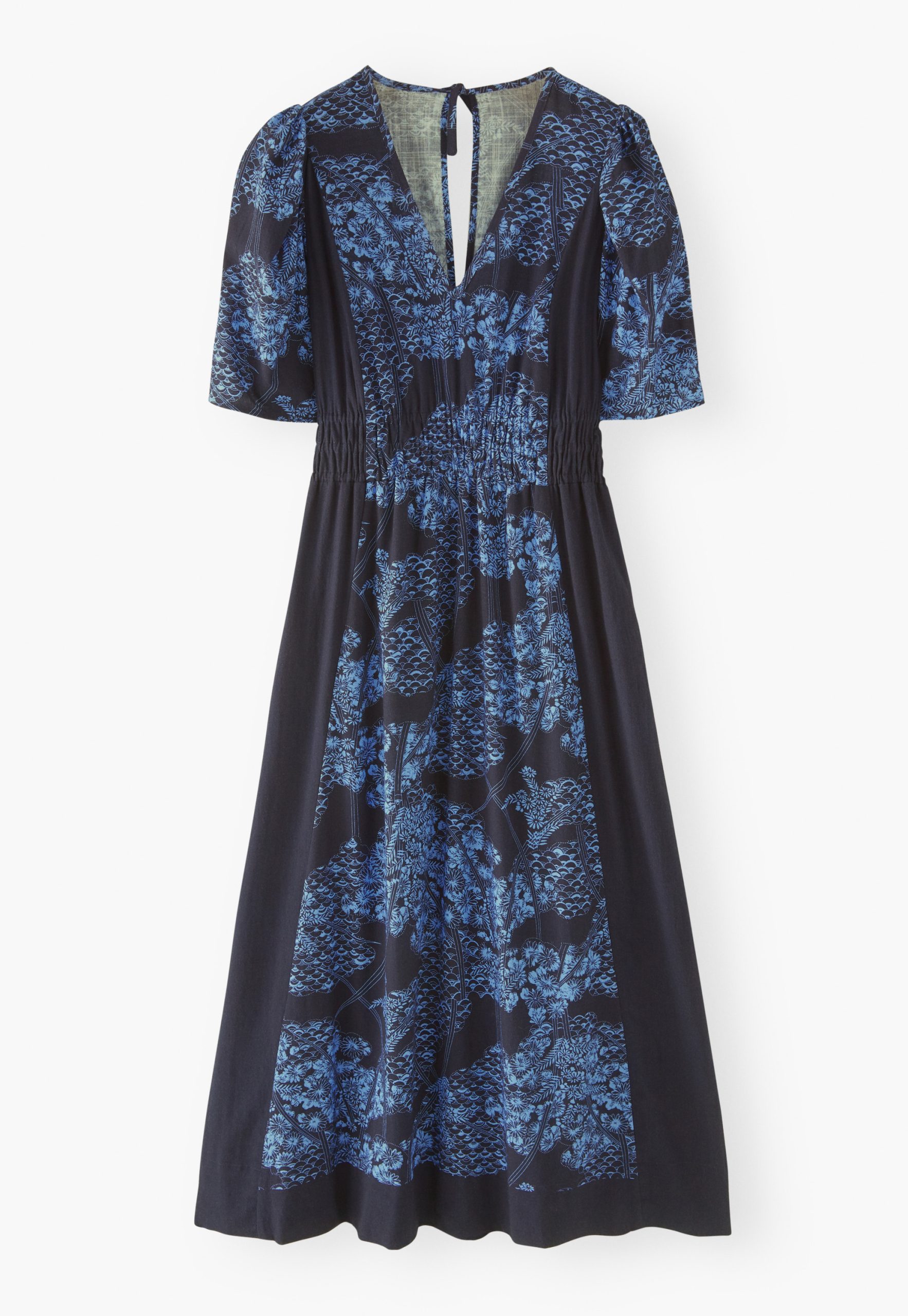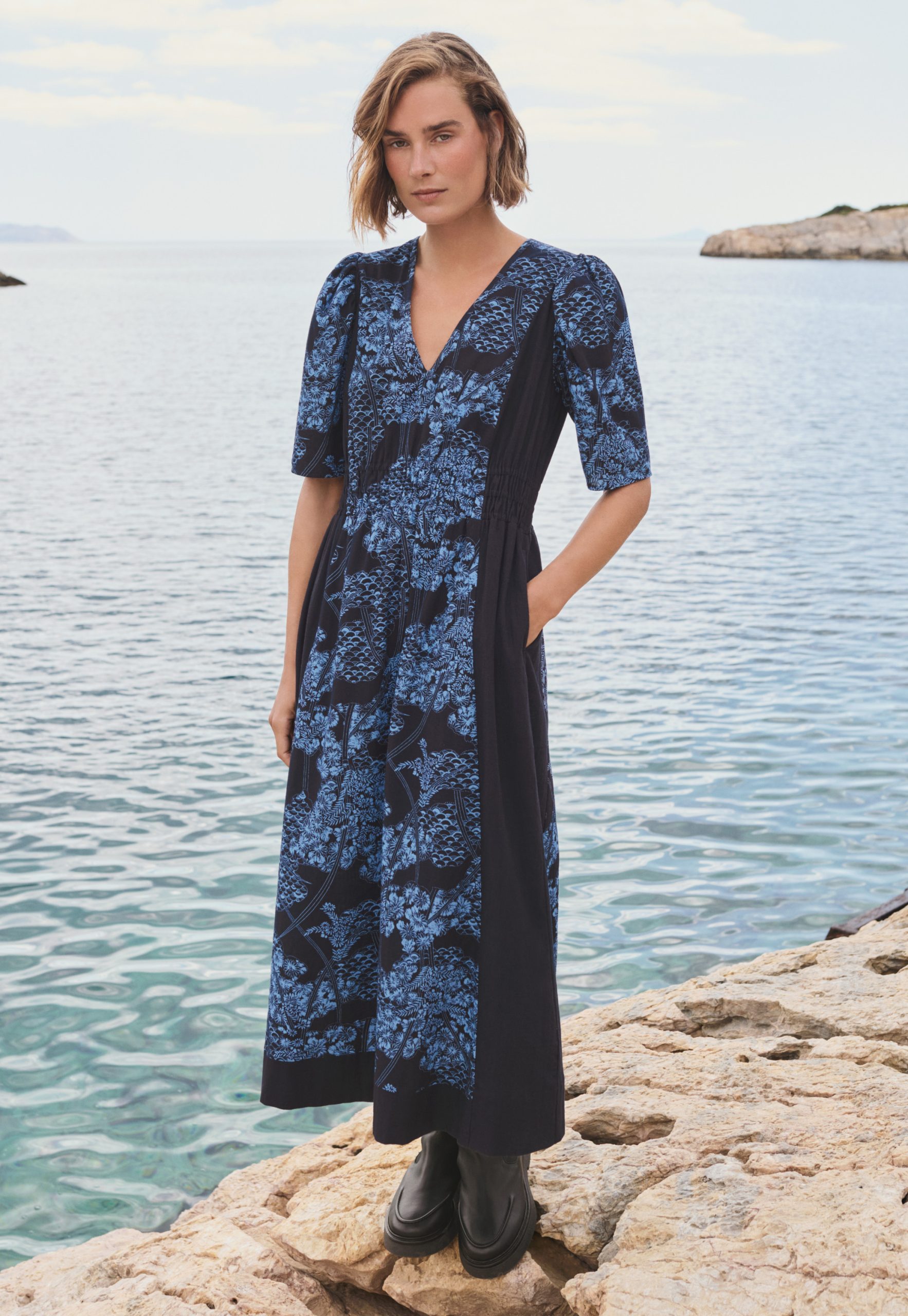 A longer length dress to float through the season in, made from our midweight cotton slub fabric featuring an exclusive Wrap London botanical print. With short sleeves and a v-neckline, it has a triple-elasticated waistband for a neat fit.