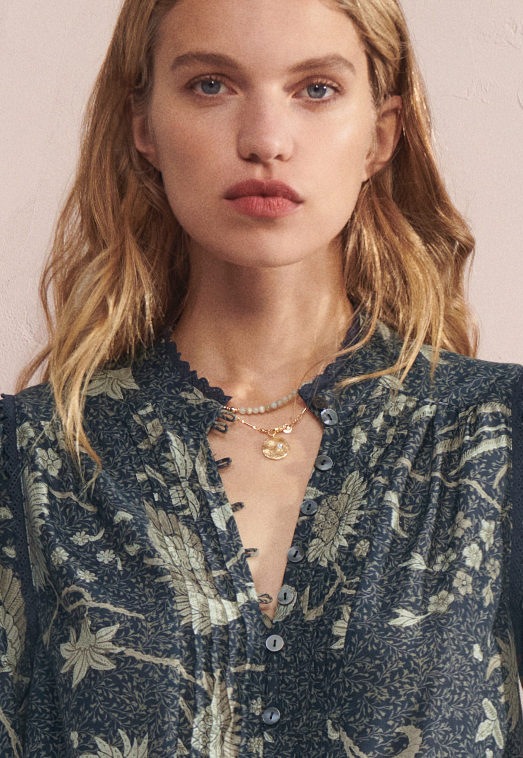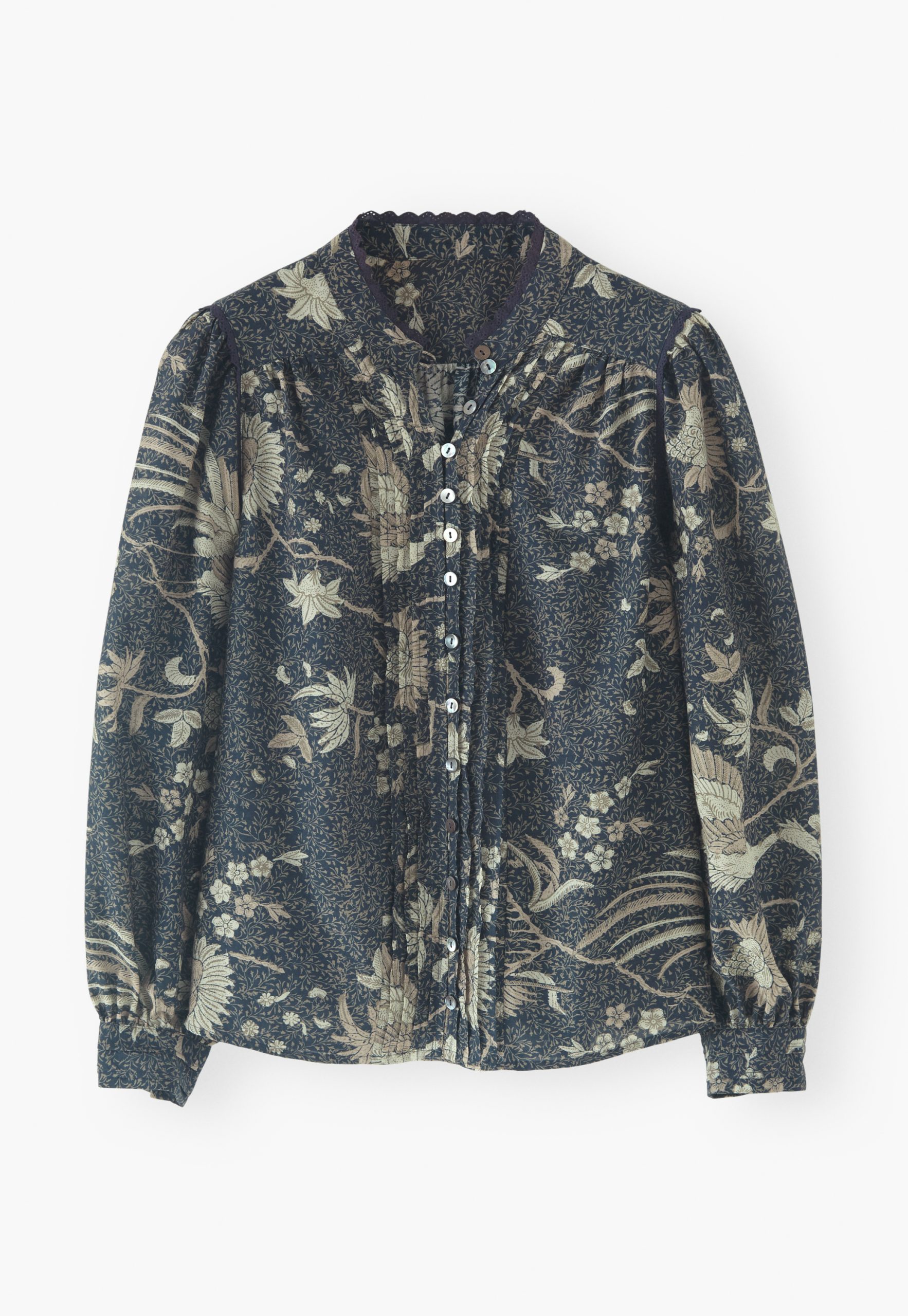 Beautifully detailed, this special silk cotton blouse is lovely and lightweight. Featuring an exclusive Wrap London botanical print, it’s a gorgeous piece for evenings out.