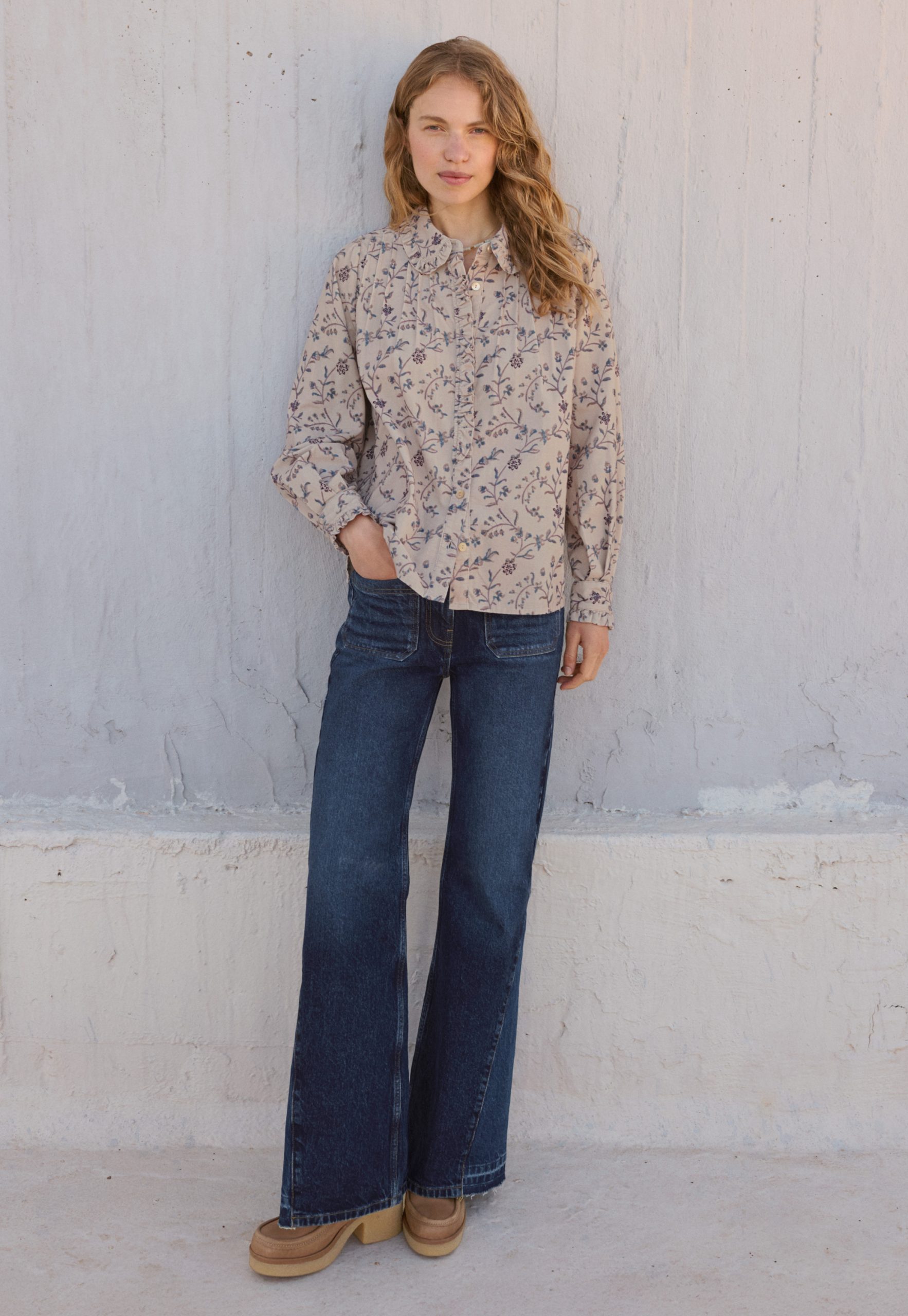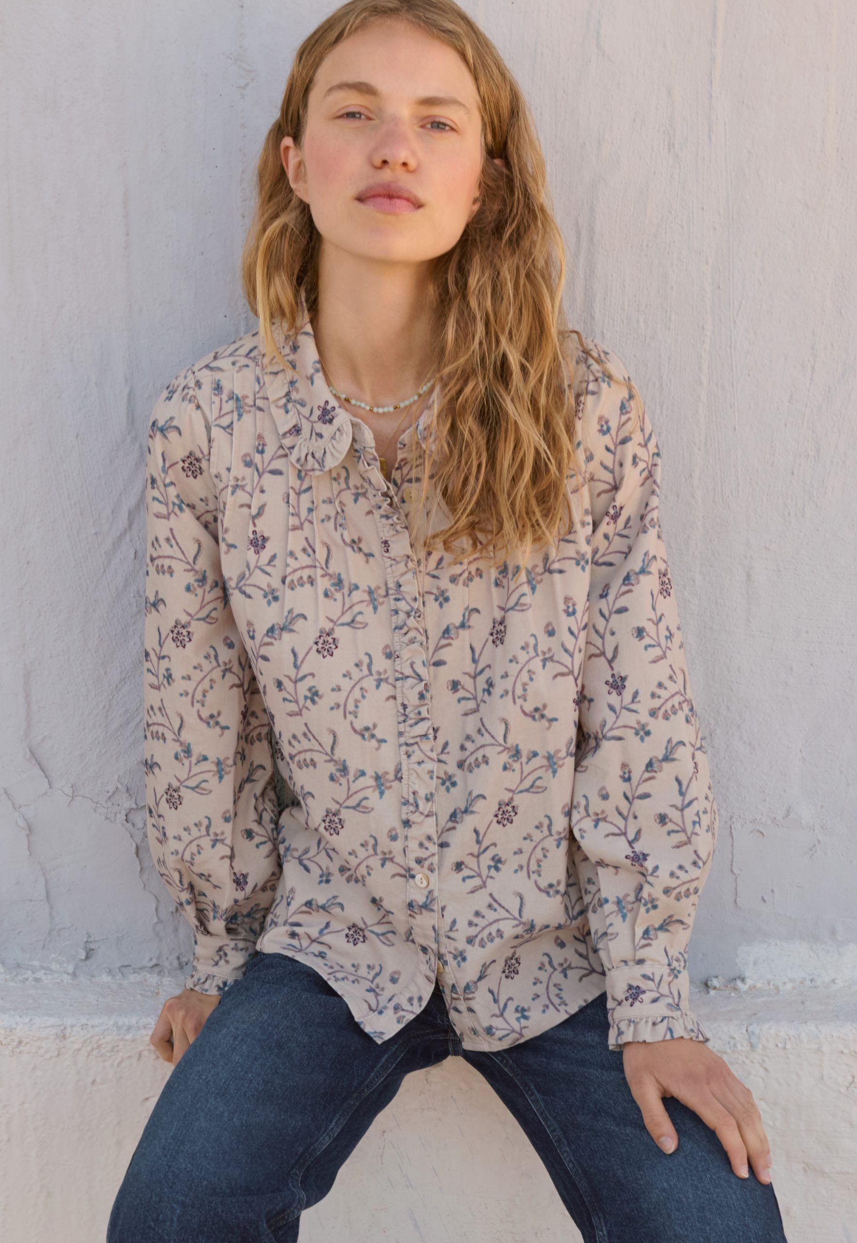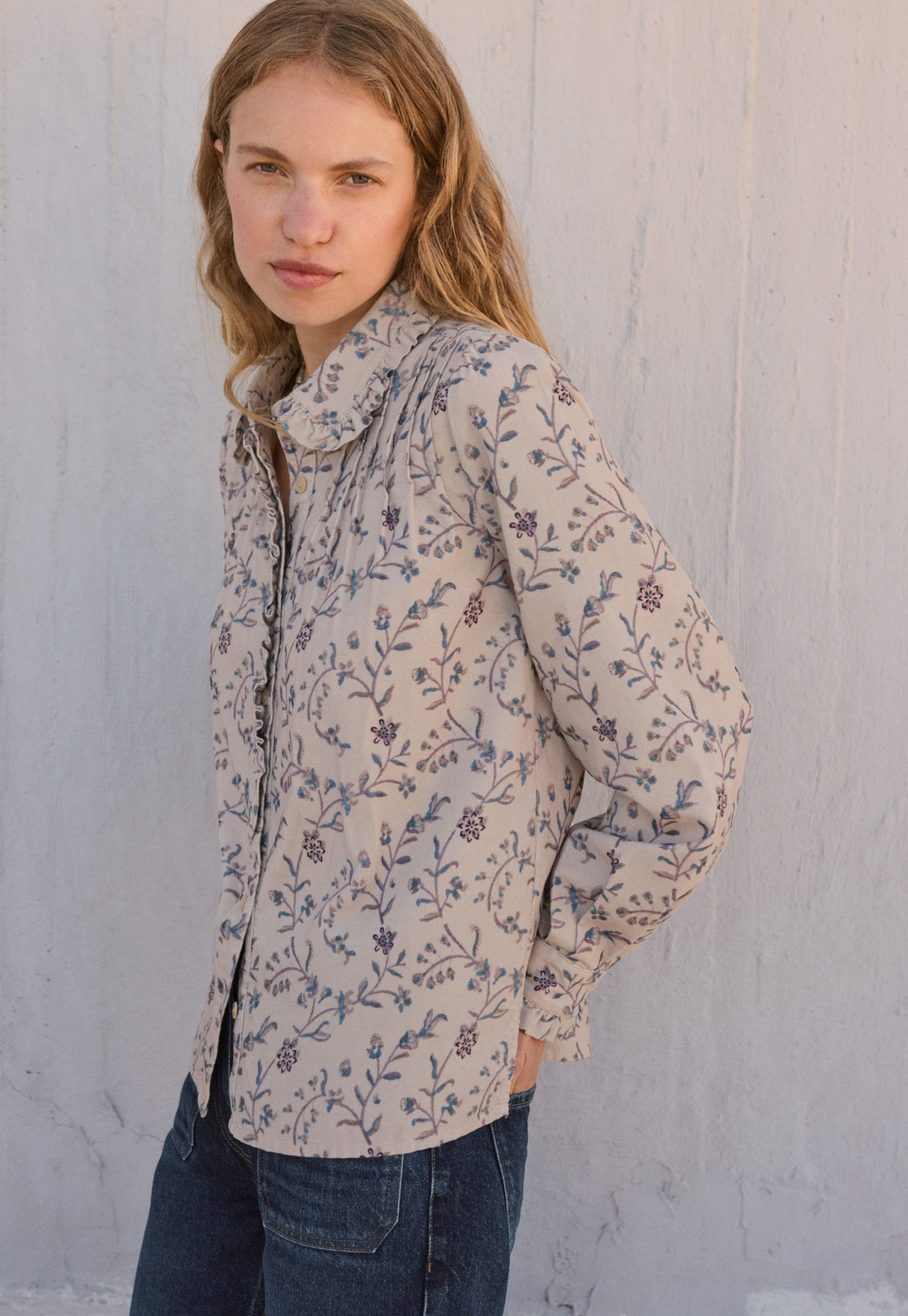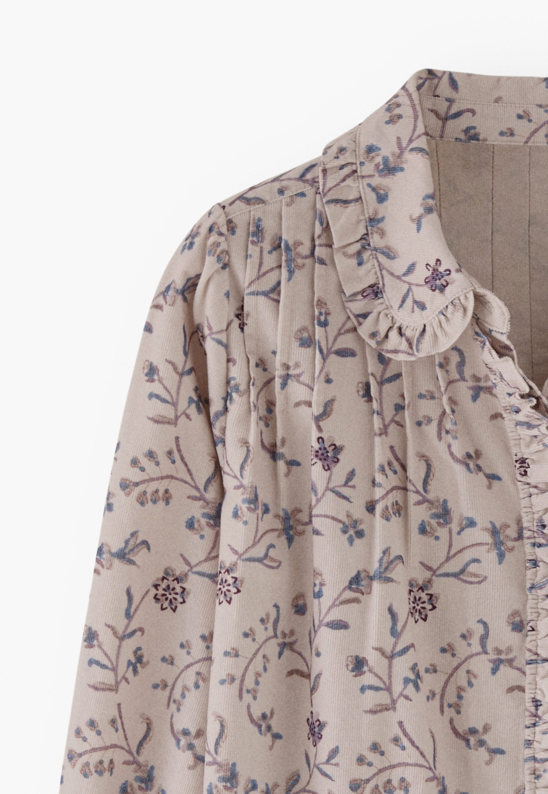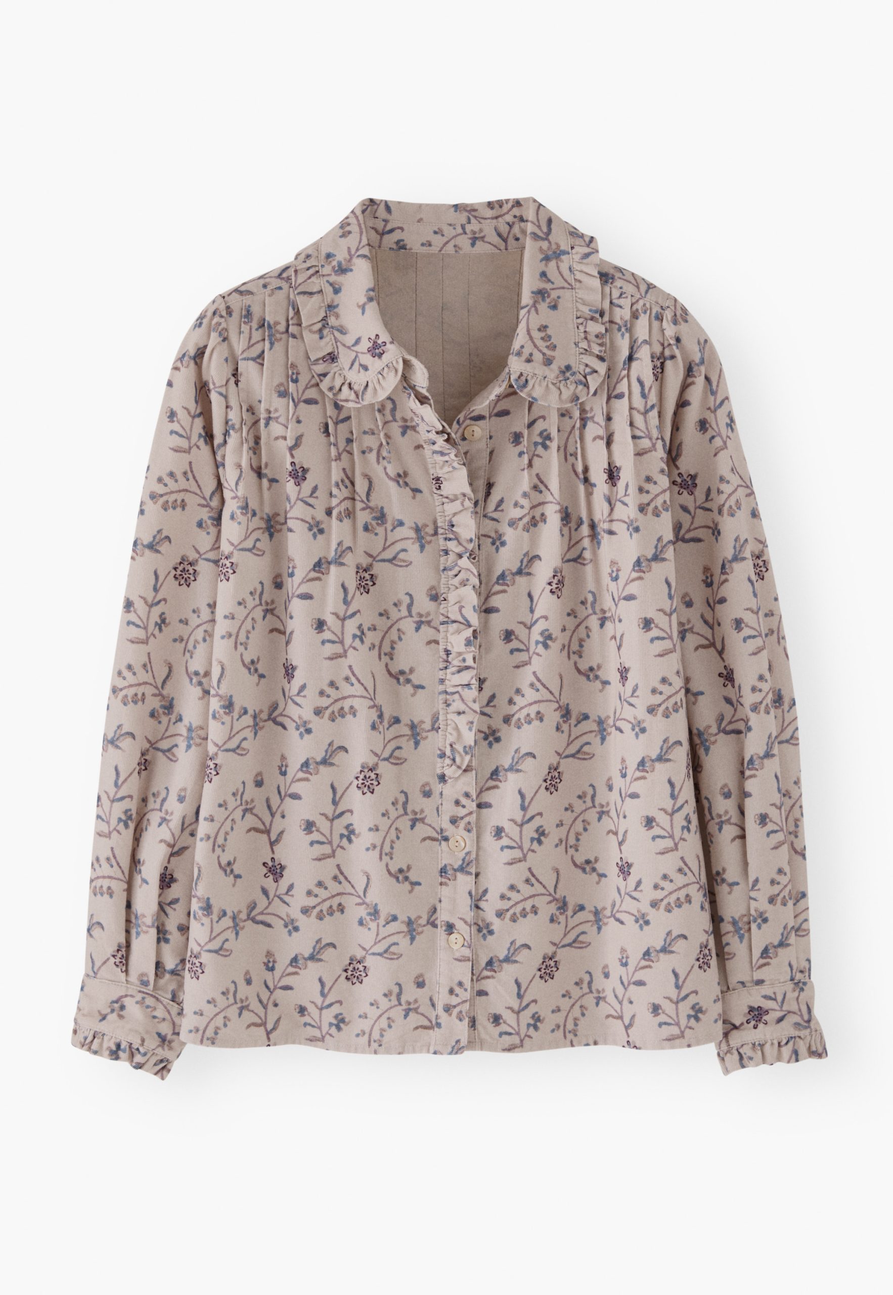 If you love wearing blouses, you’ll love this one. In a carefully tailored relaxed fit and made from soft and velvety fine wale cotton cord, it’s lifted with an exclusive Wrap London botanical print and frill details at the collar and front.