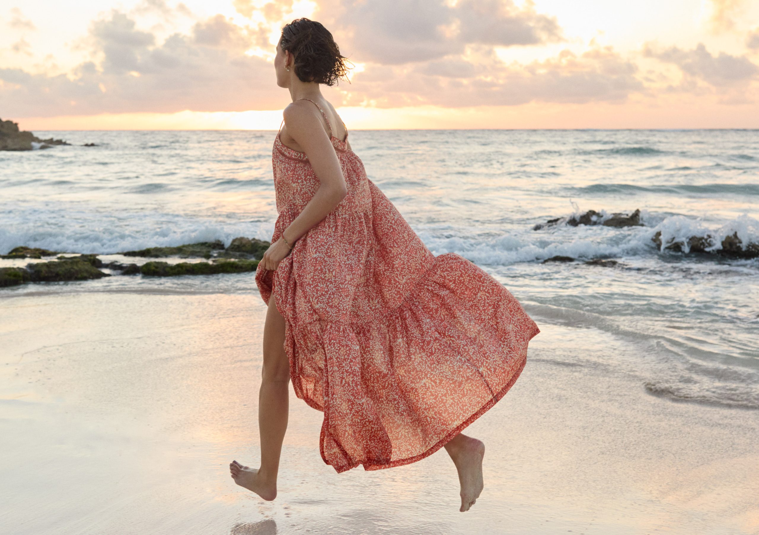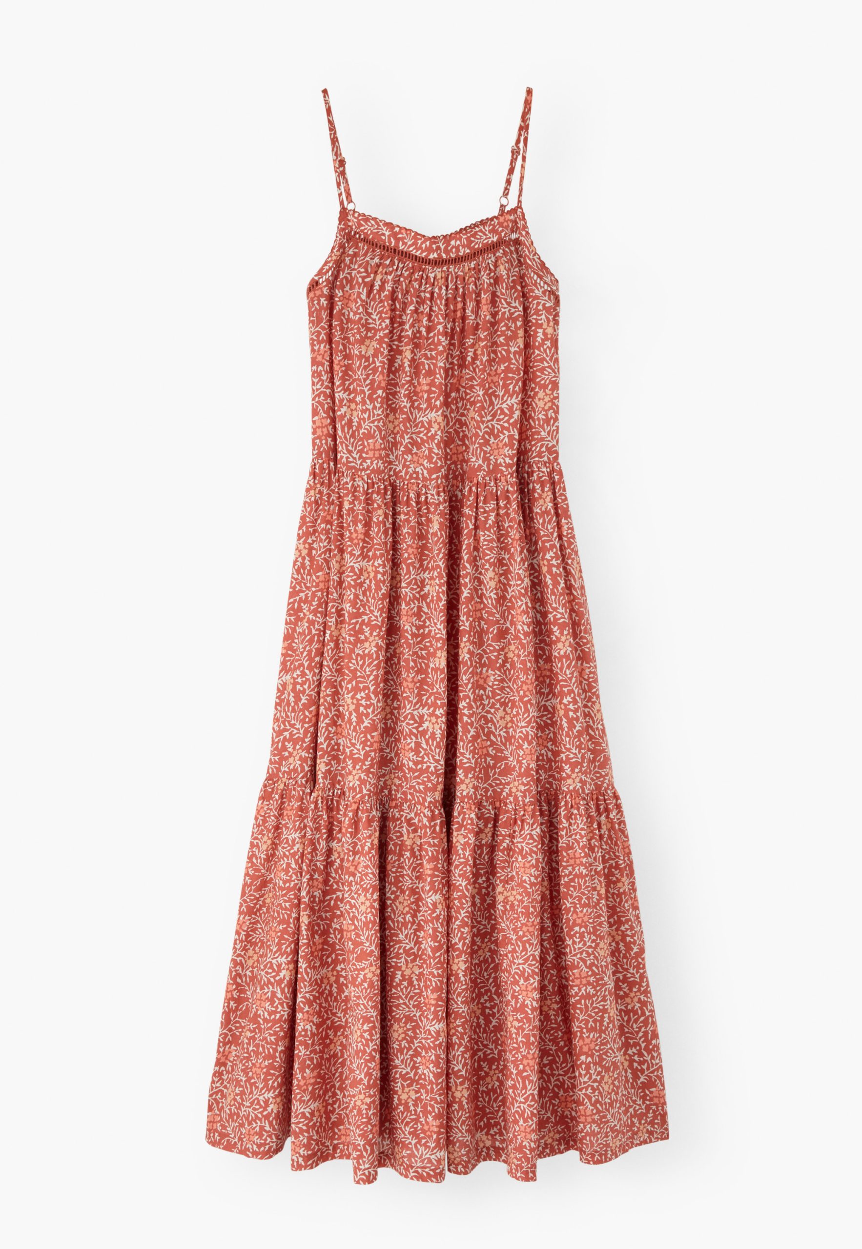 Feel the warmth of the sun on your shoulders in this lovely crisp cotton sundress. Lightweight and lovely, it features an exclusive Wrap London print, has fine adjustable shoulder straps and a pretty lace detail at the neckline. A beautiful dress for hot summer days.
