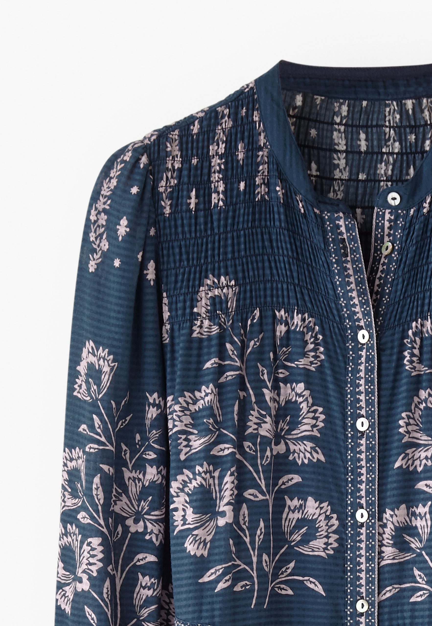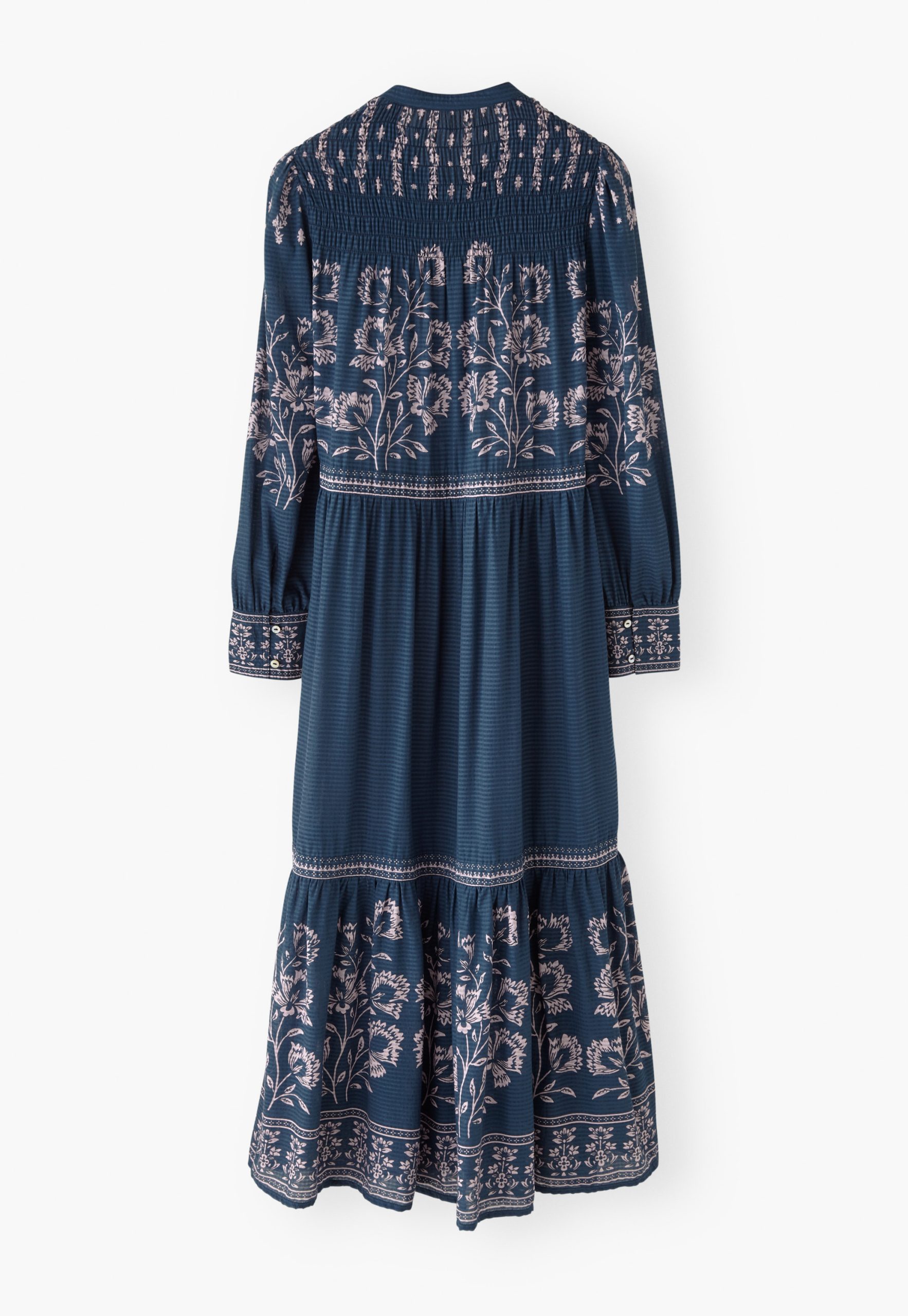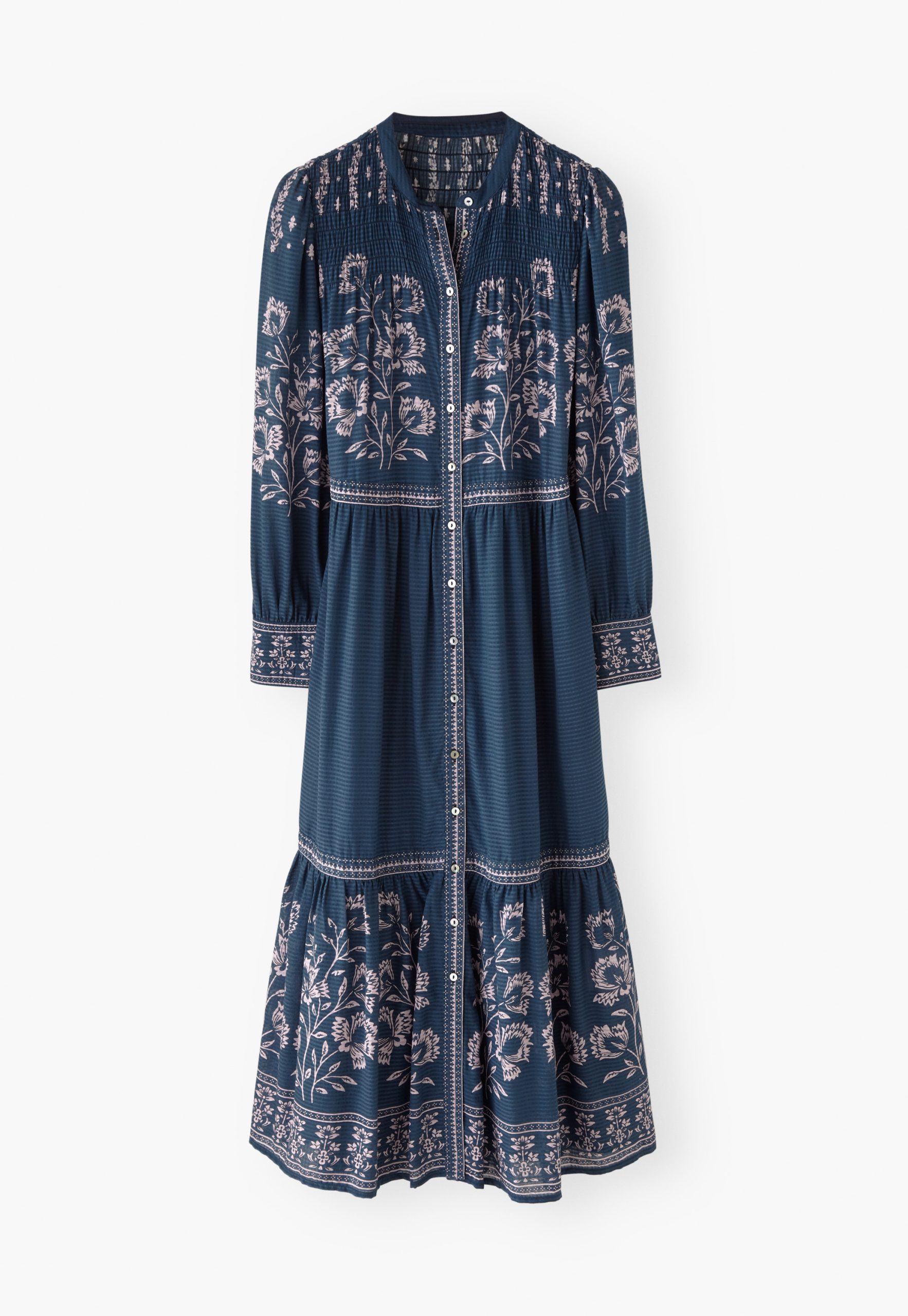 A relaxed, fluid dress that’s ready to be your new favourite outfit. In a lightweight cotton and modal blend with a subtle stripe overprinted with an exclusive Wrap London floral pattern. With full-length blouson sleeves, special shirring details at the front and back yoke and a dramatic deep hem.