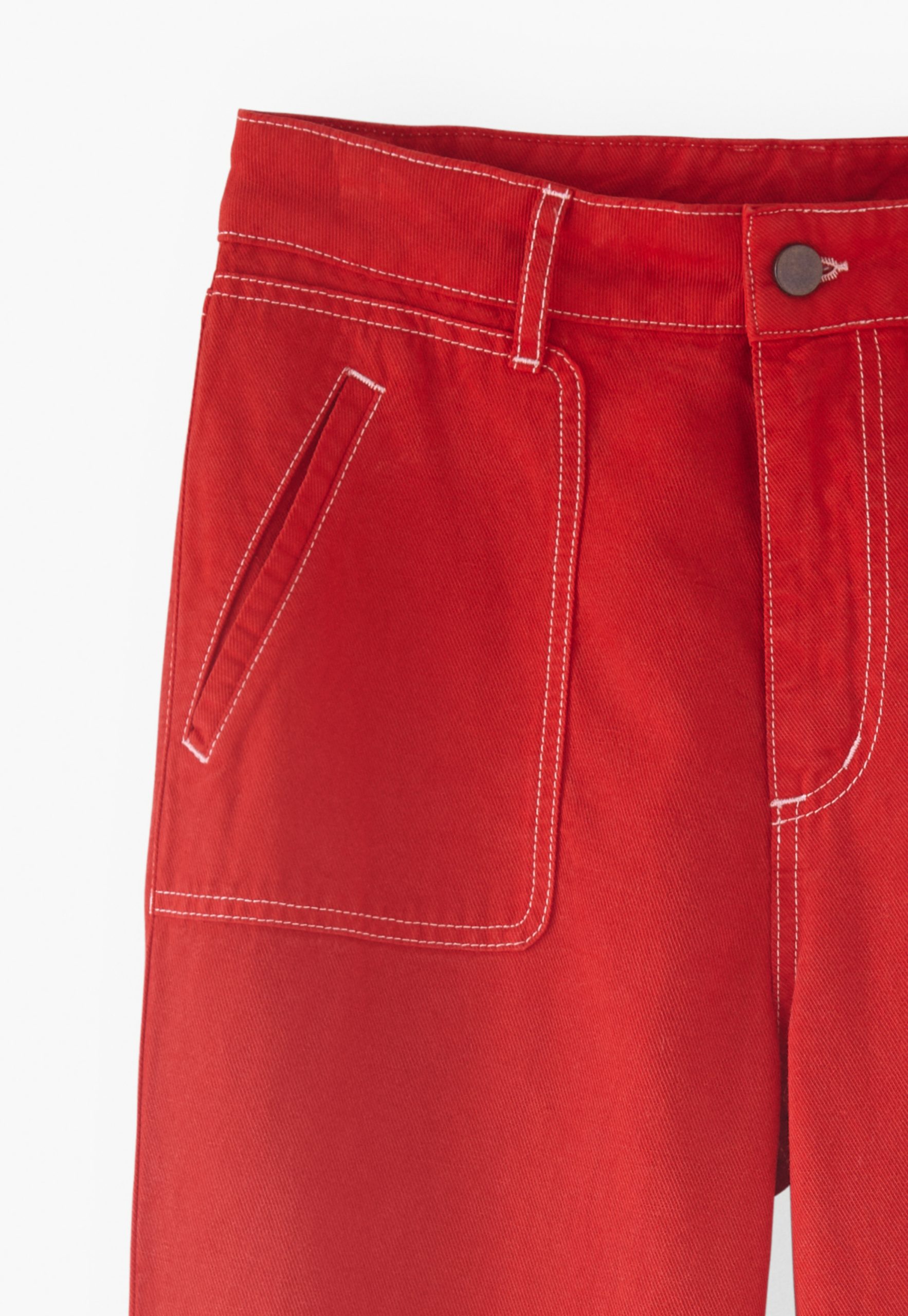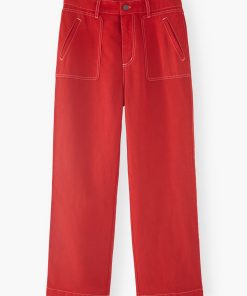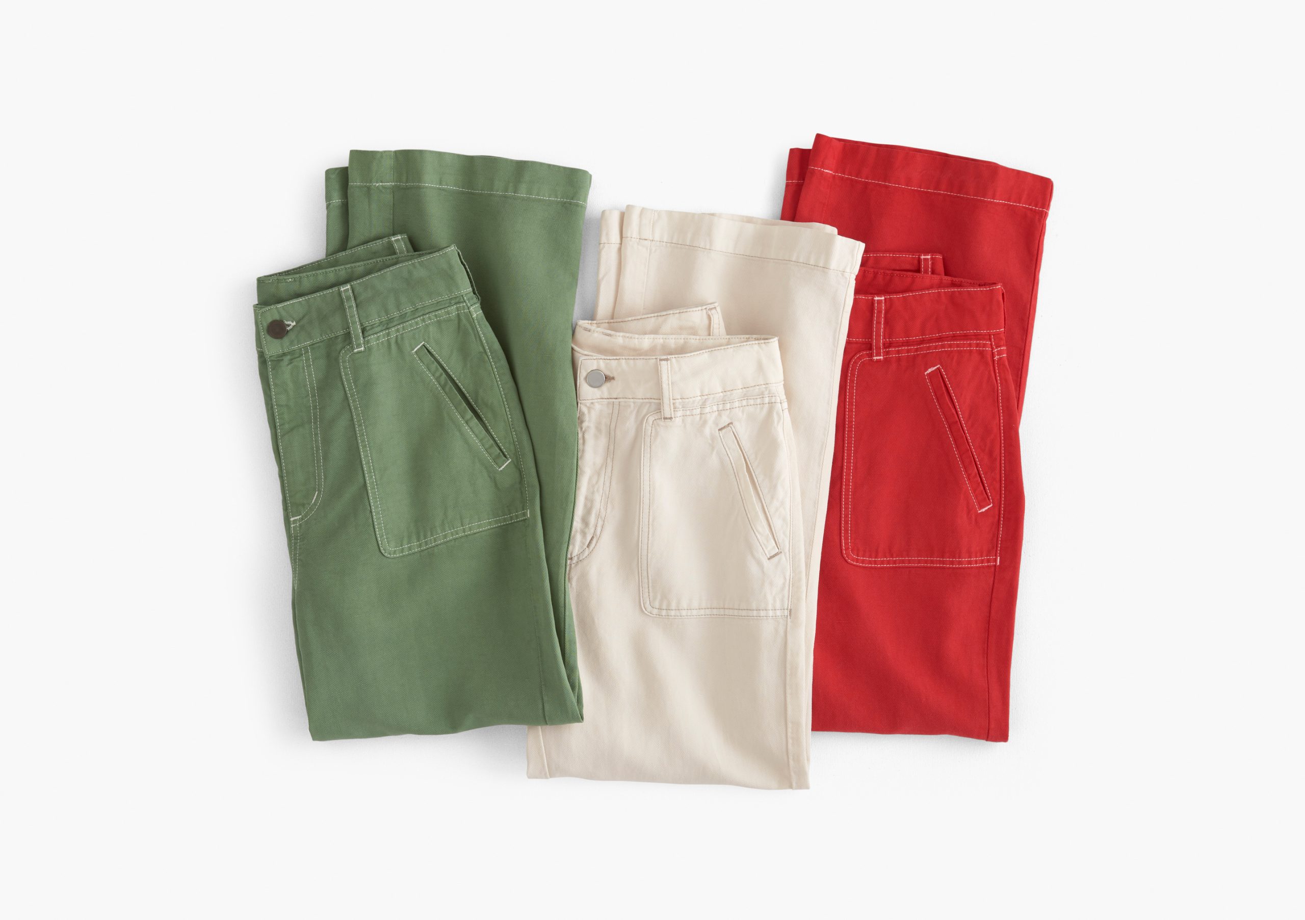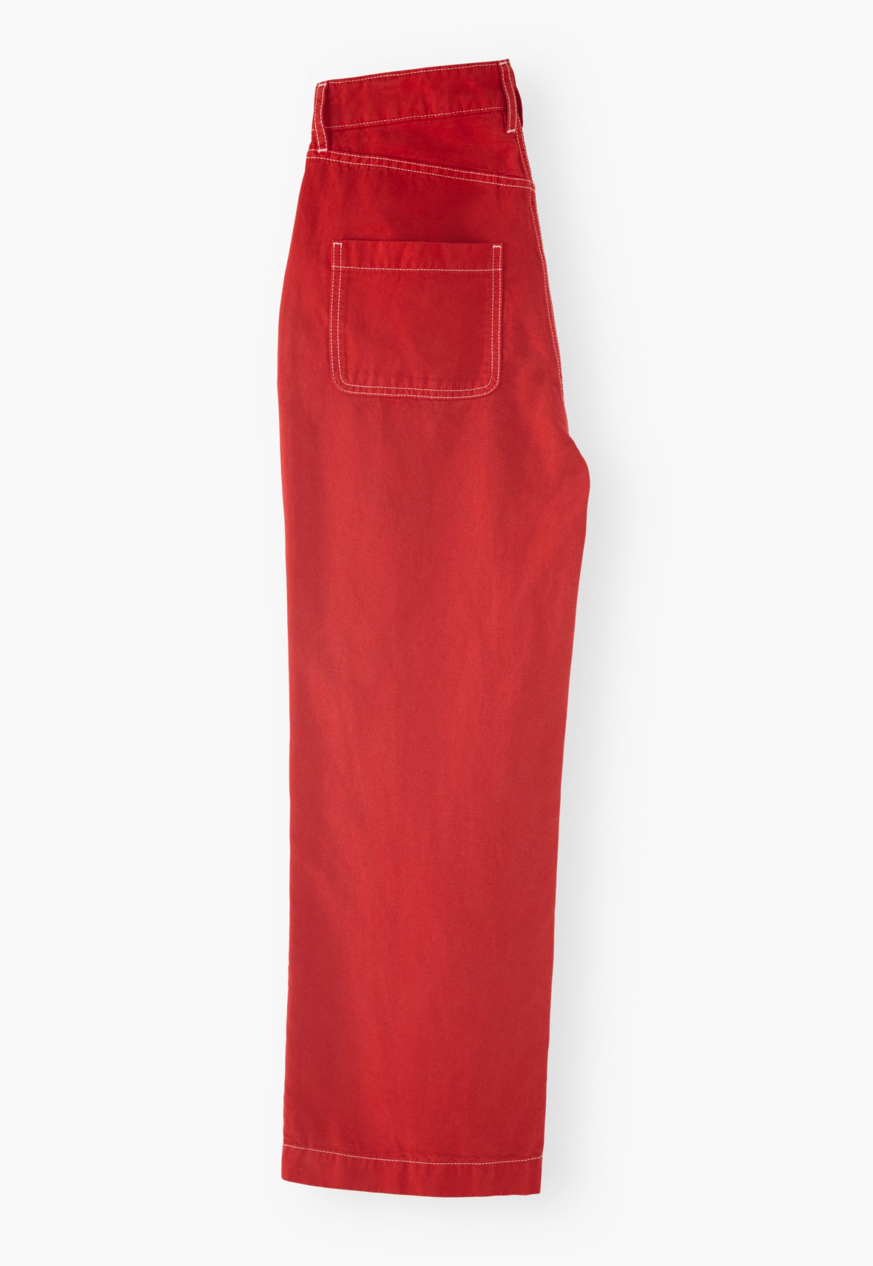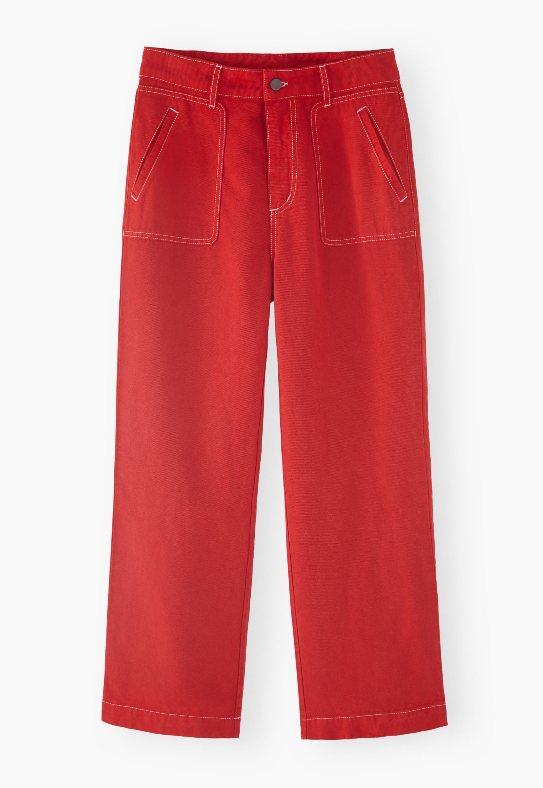 Cheering coloured trousers in our lyocell and linen fabric which is lightweight and tailored. Contrast stitching highlights the pockets front and back and the cropped leg means you can show off your sandals.