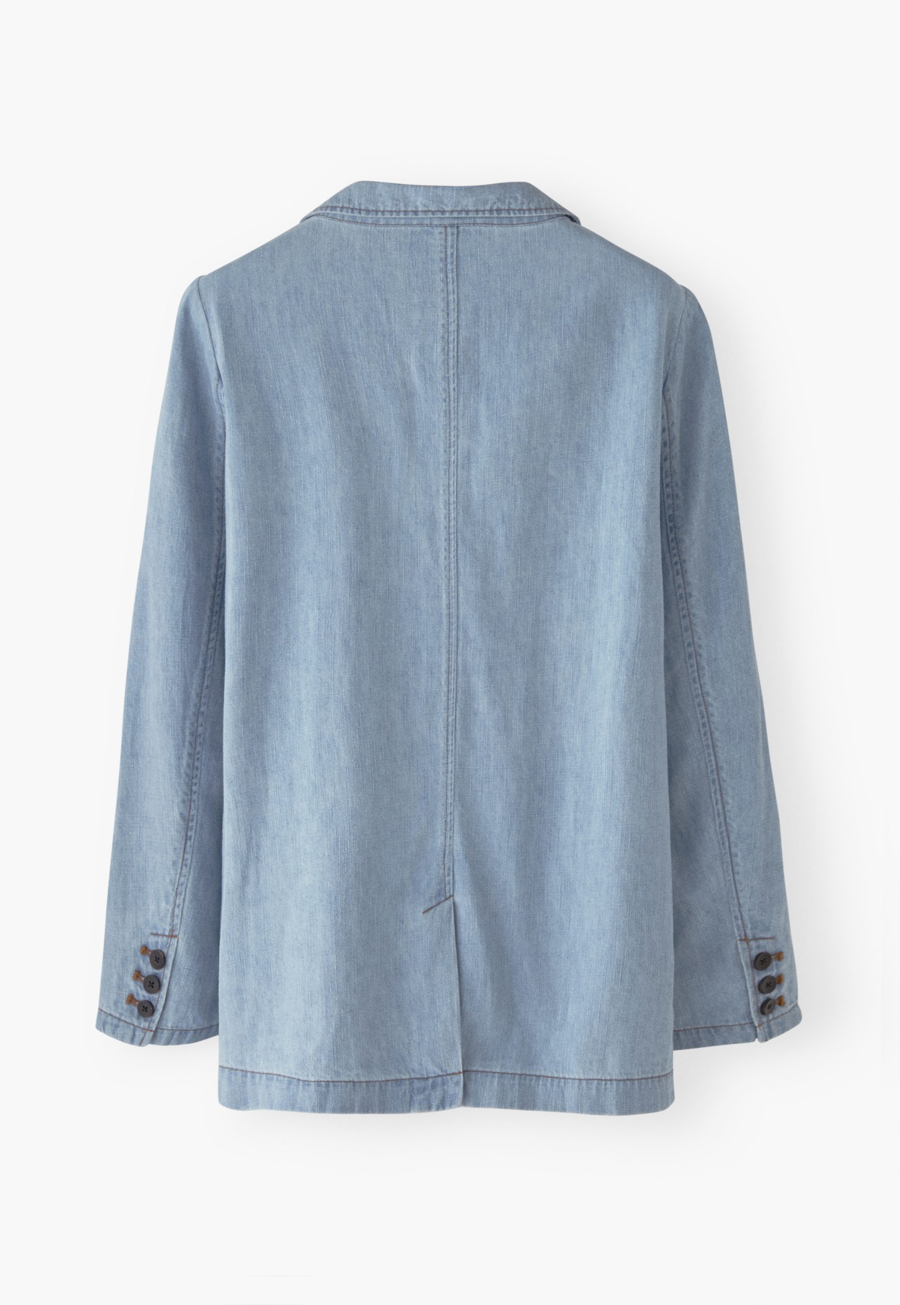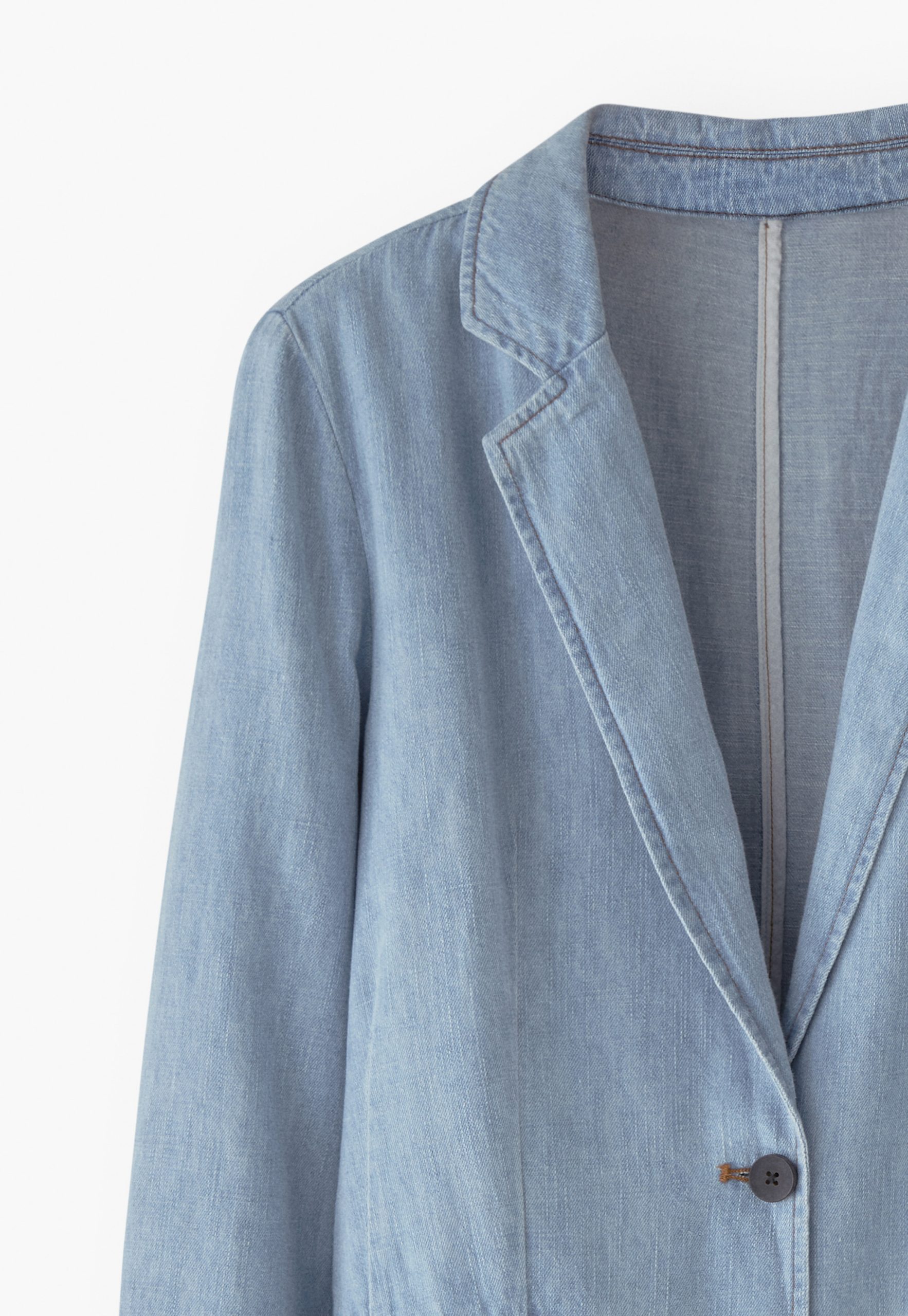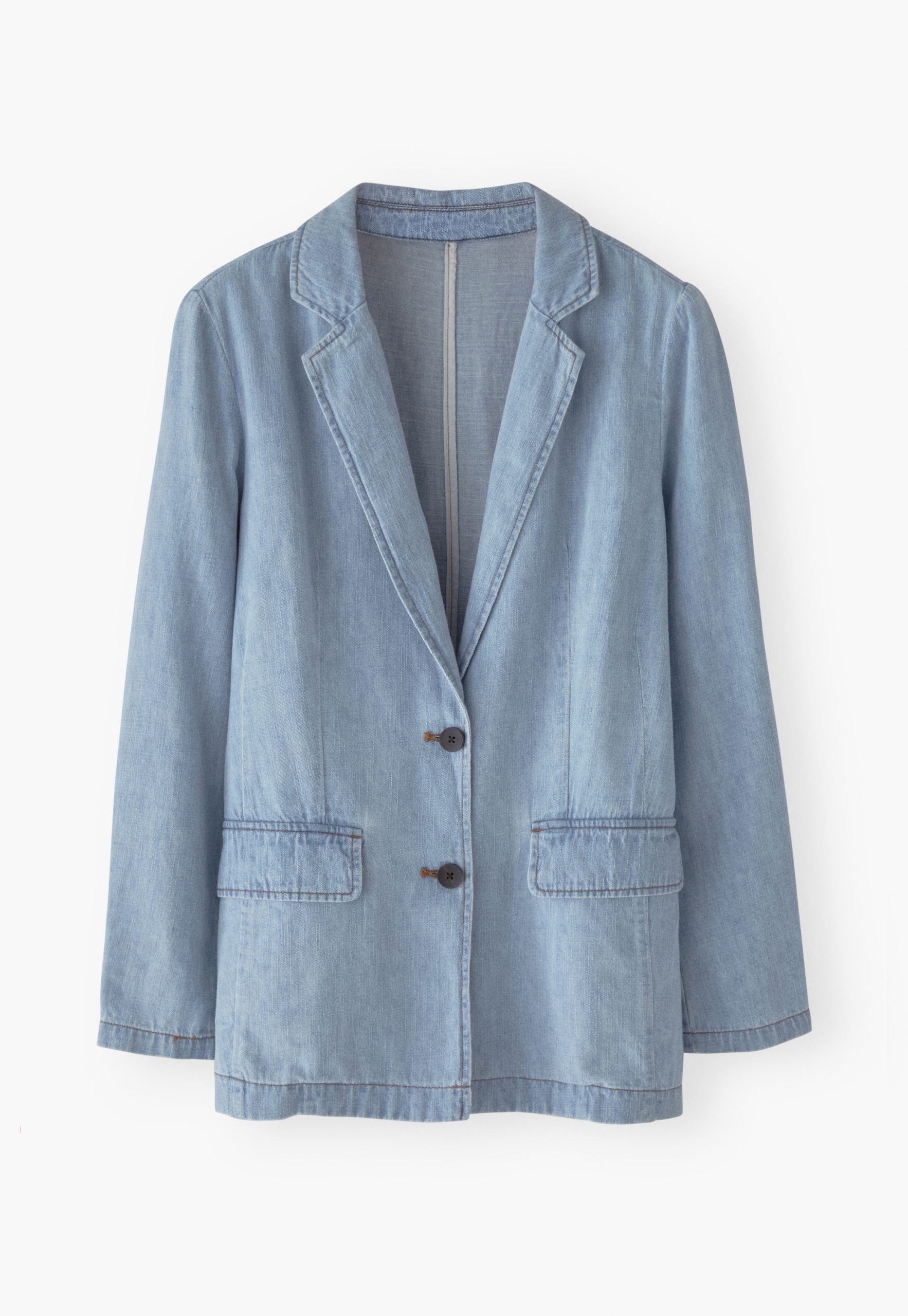 Your favourite longer-length blazer, now in hemp and organic cotton. Both lightweight and light-wash, this pale denim blazer is a great layer to add some relaxed tailoring to your look.