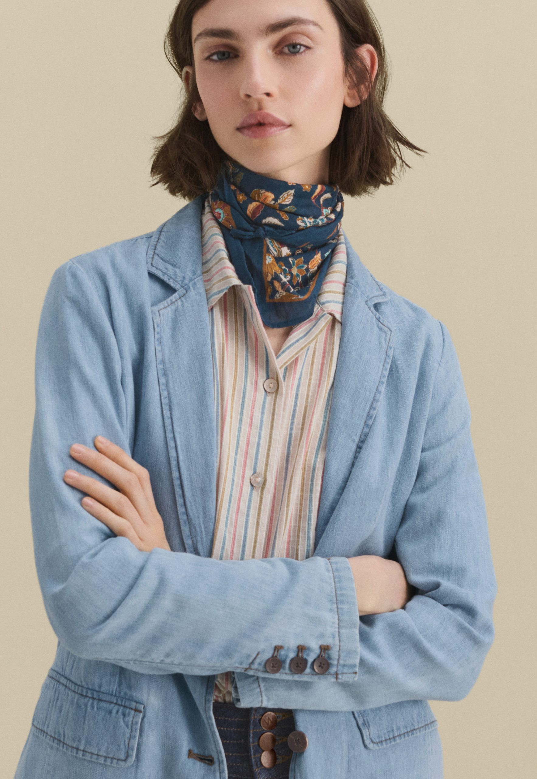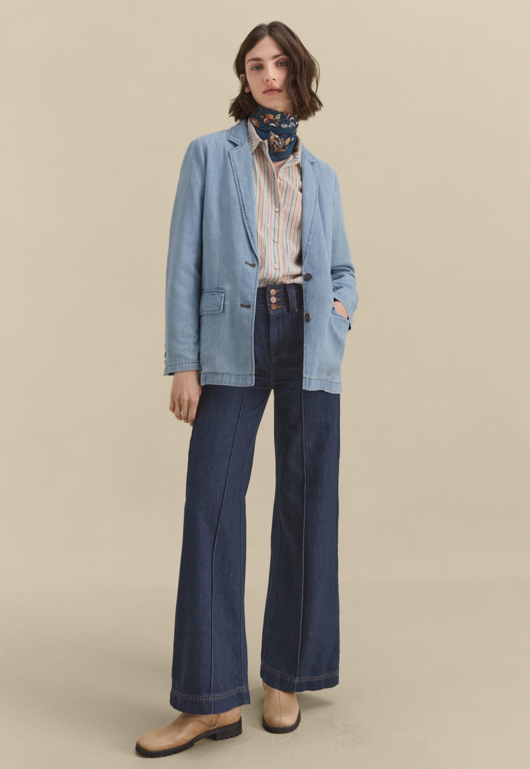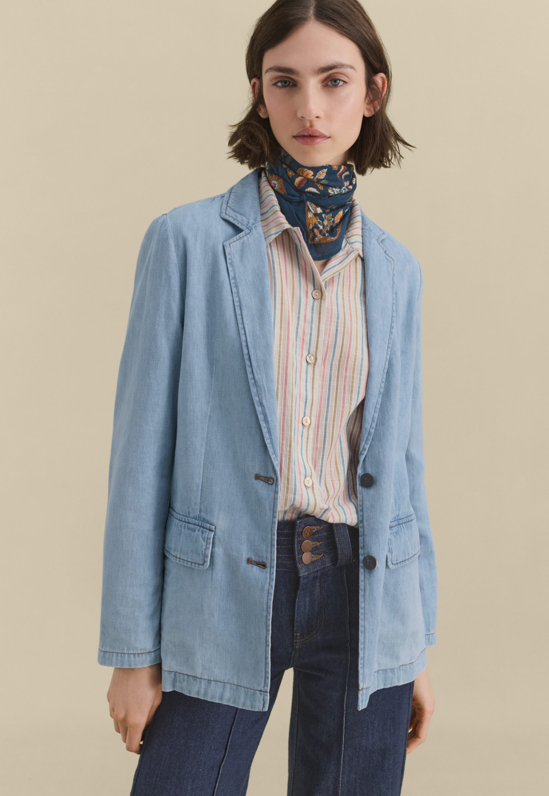 Your favourite longer-length blazer, now in hemp and organic cotton. Both lightweight and light-wash, this pale denim blazer is a great layer to add some relaxed tailoring to your look.