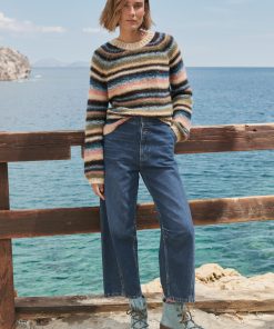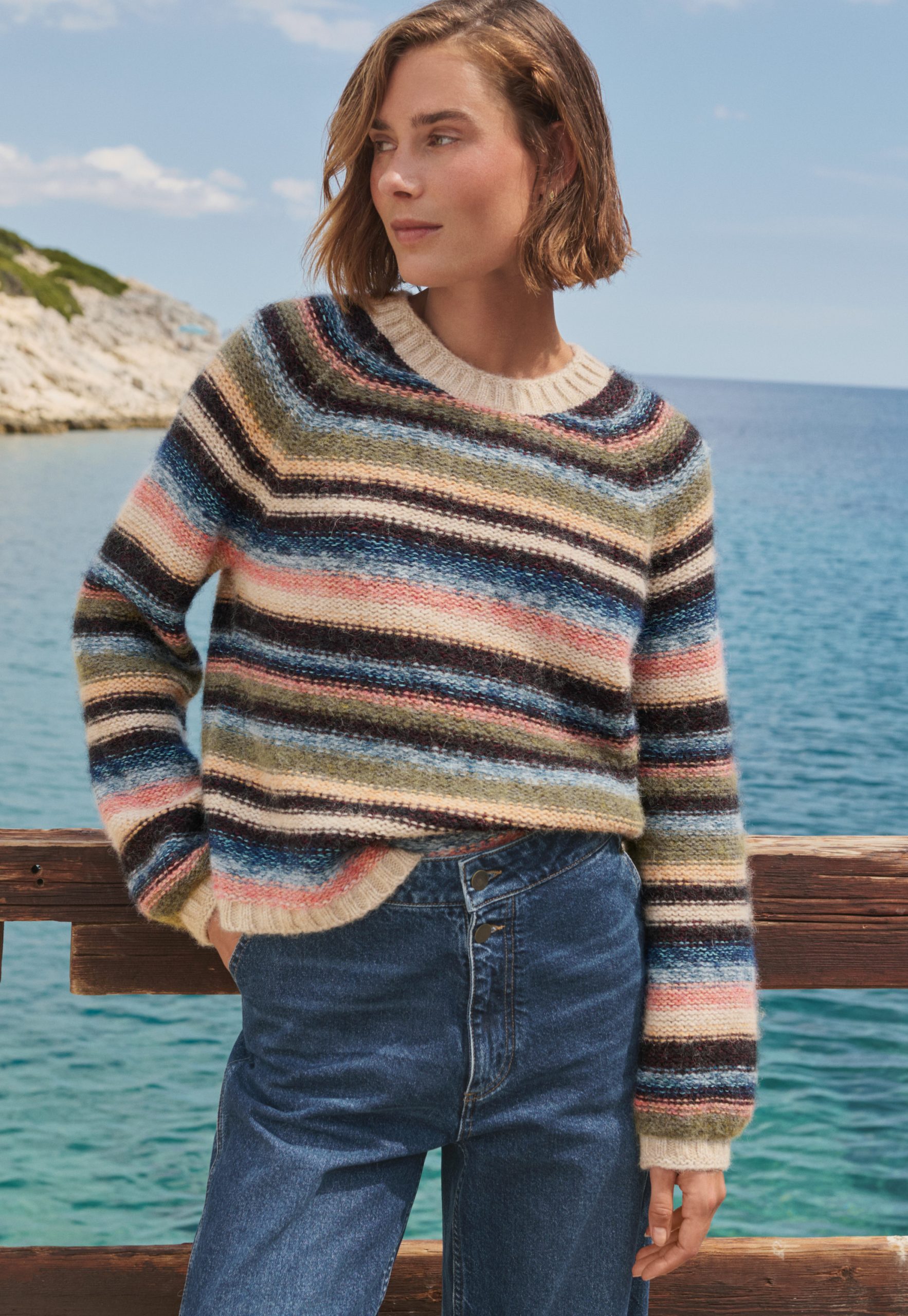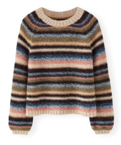 Deliberately styled to show the reverse stitches of the different-coloured knitted stripes, this soft and cosy sweater in a blend of alpaca, brushed cotton and merino wool is something different for your weekend wear.