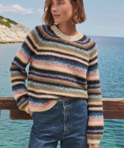 Deliberately styled to show the reverse stitches of the different-coloured knitted stripes, this soft and cosy sweater in a blend of alpaca, brushed cotton and merino wool is something different for your weekend wear.