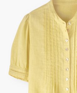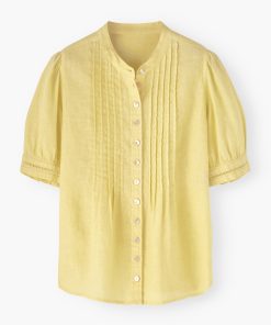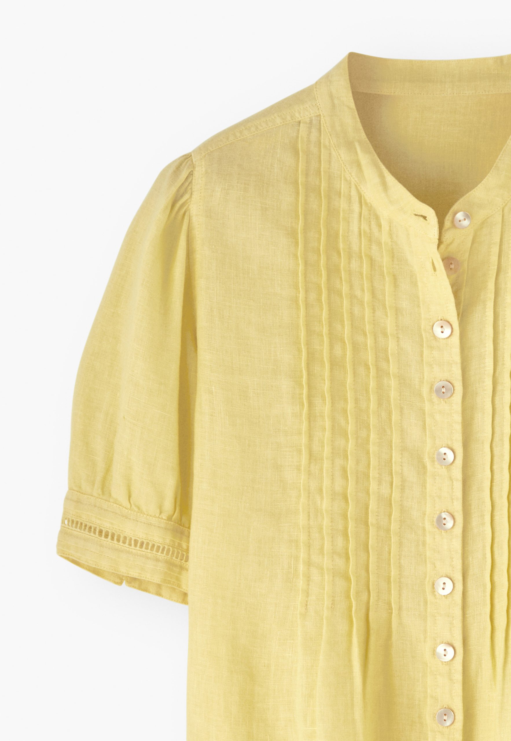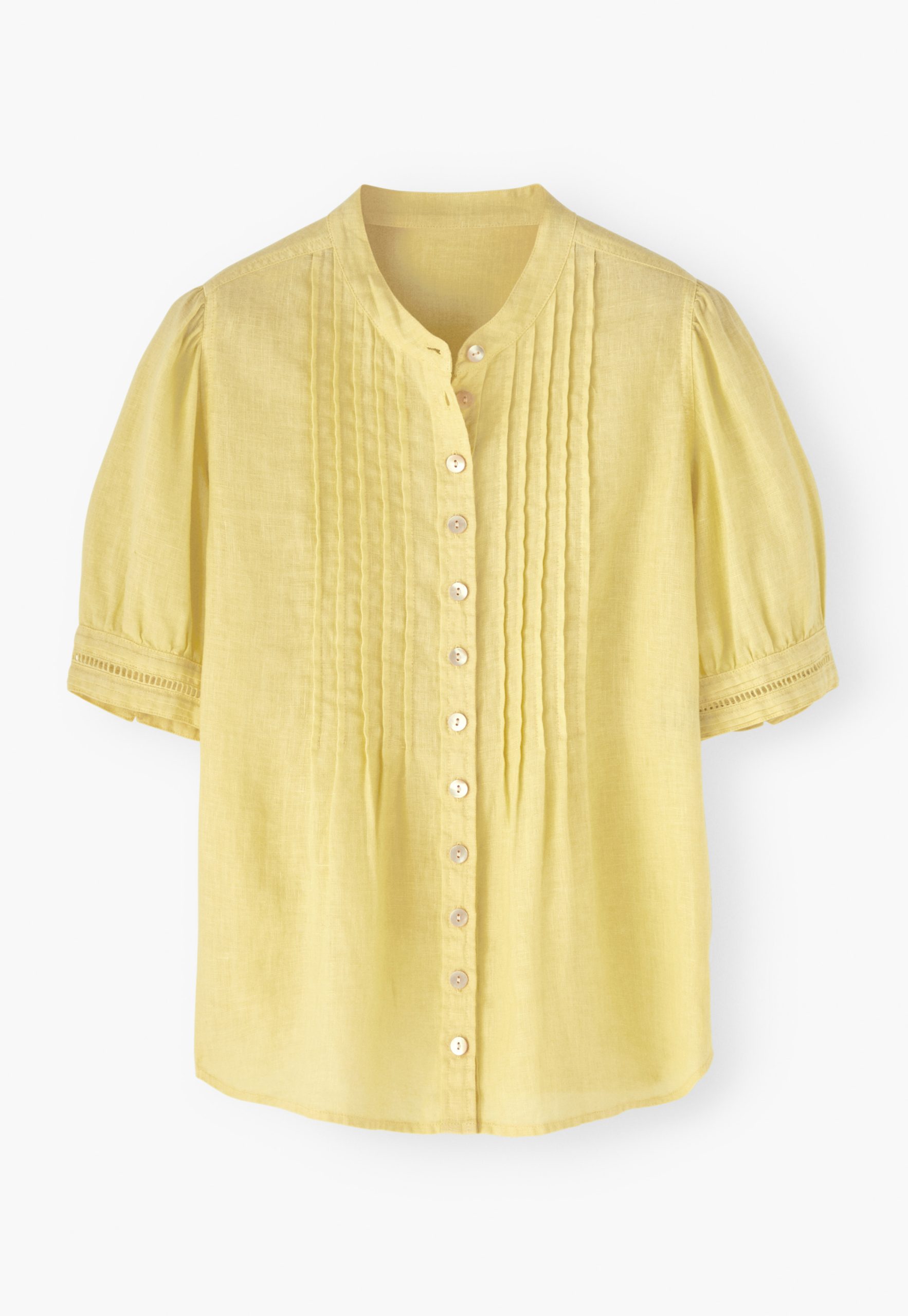 Perfect for when you want to feel more pulled together, this lightweight linen blouse has plenty of pintucks, gentle gathers at the back and the short-sleeves finish with a neat lace-detail and a button fastening.