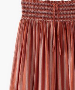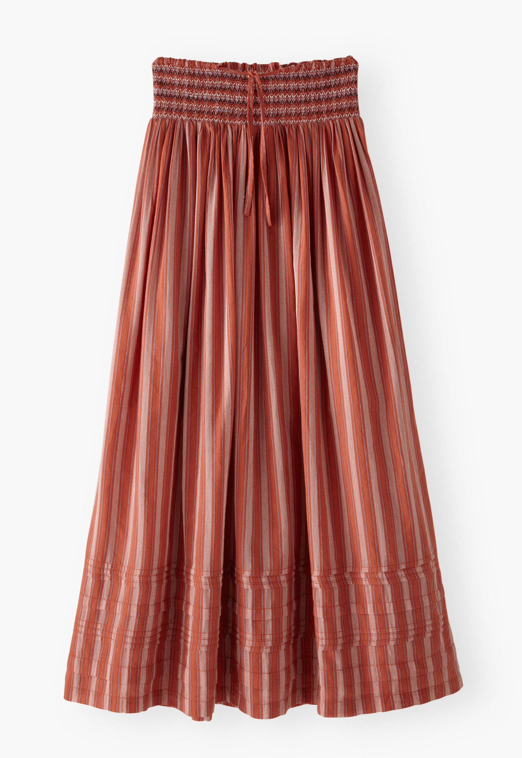 Tuck your T-shirt or vest into the deep elasticated waistband of this lightweight cotton, striped skirt to show off the fabulous shirring detail. The tie detail ensures a great fit and the deep hem finish adds a final flourish.