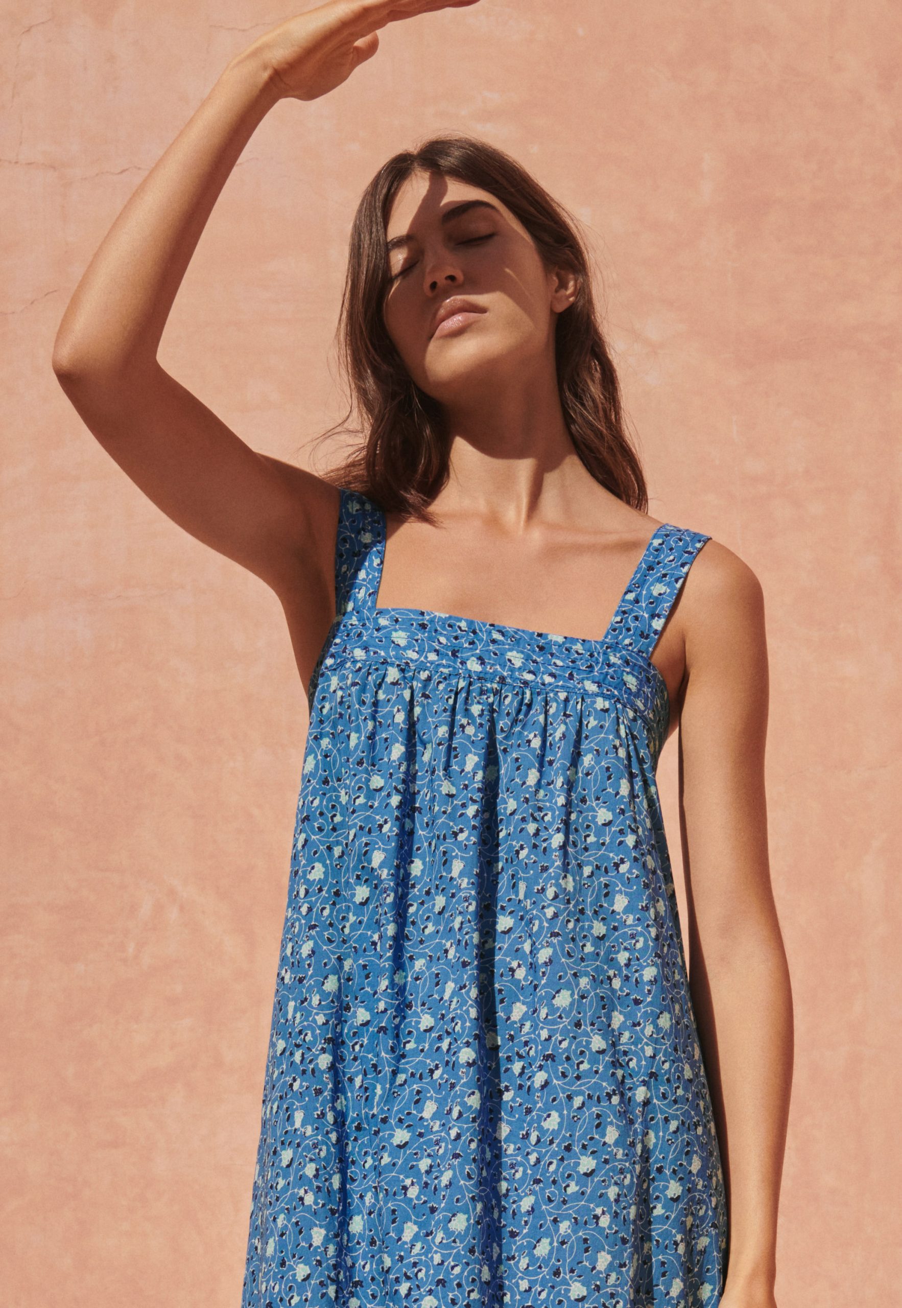 Cool summer sun dress in crisp cotton featuring an exclusive Wrap London print. Easy on and simply stylish, you won’t need to add anything but trainers or sandals.