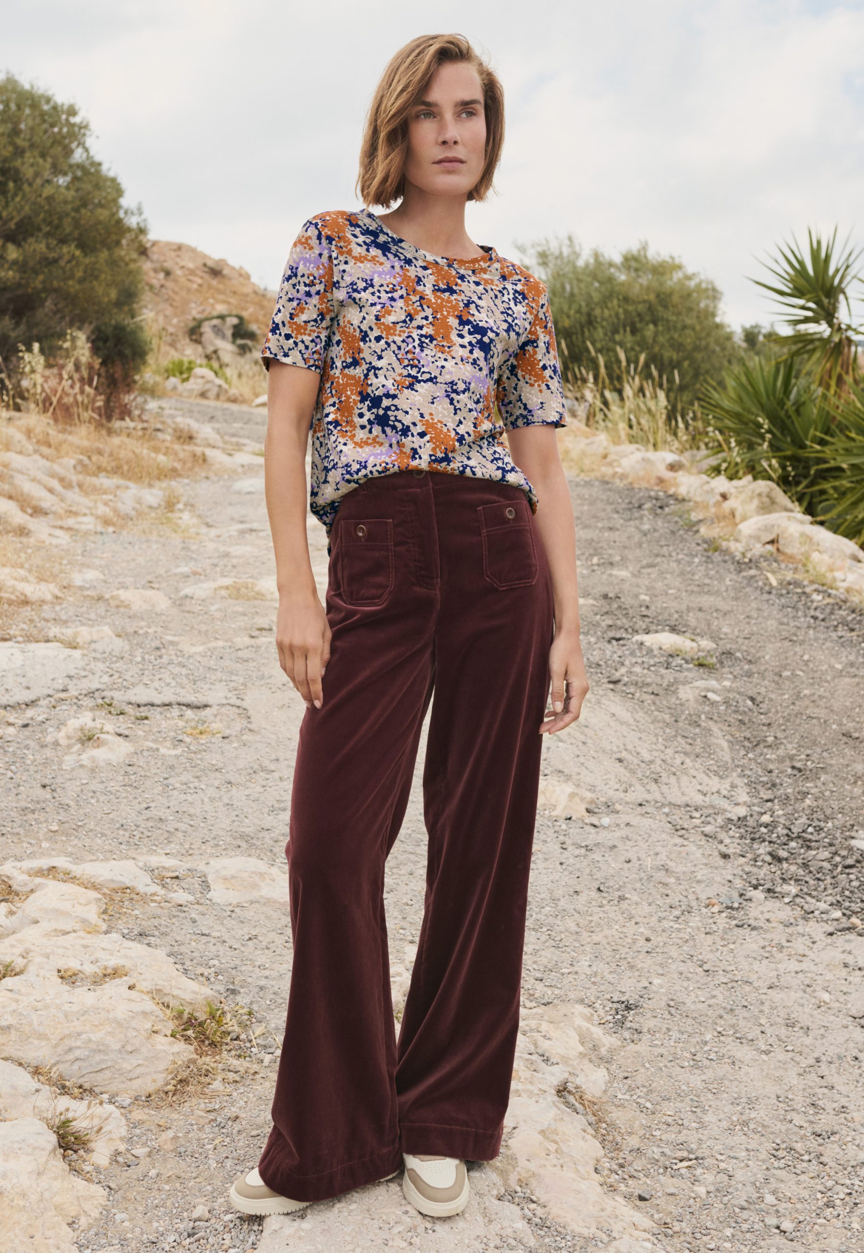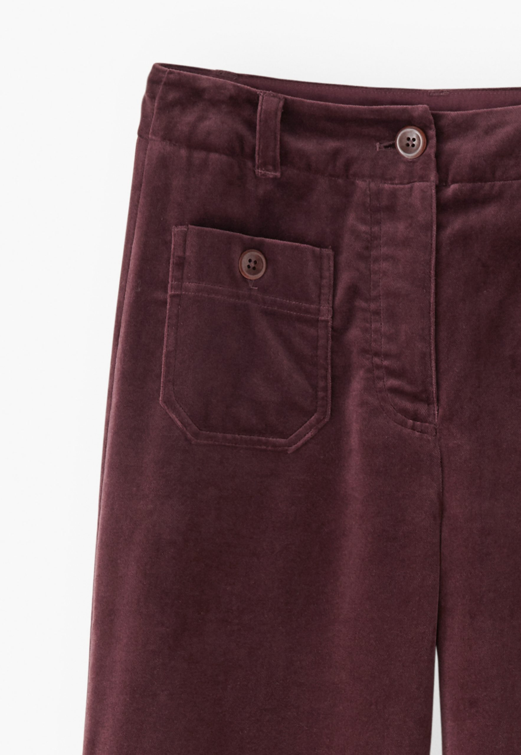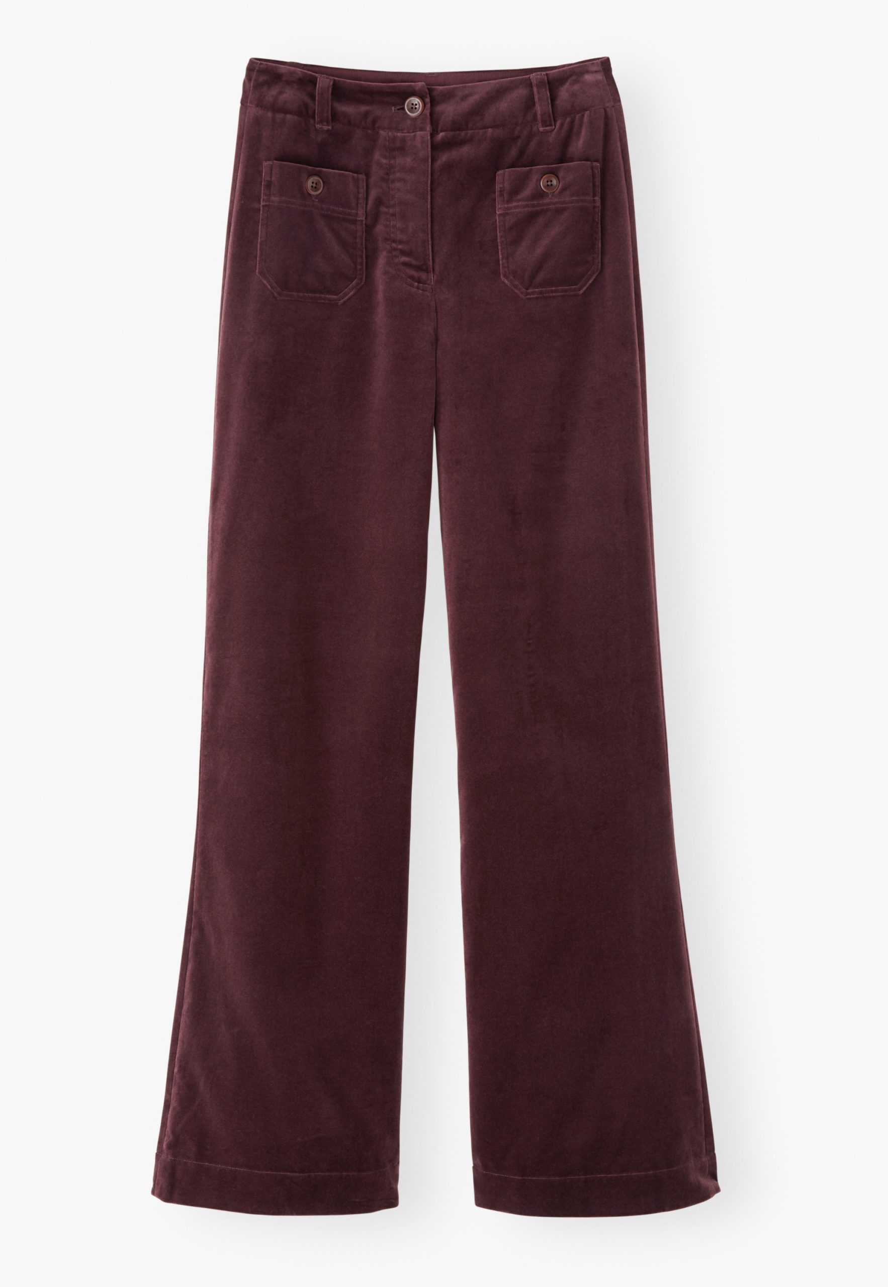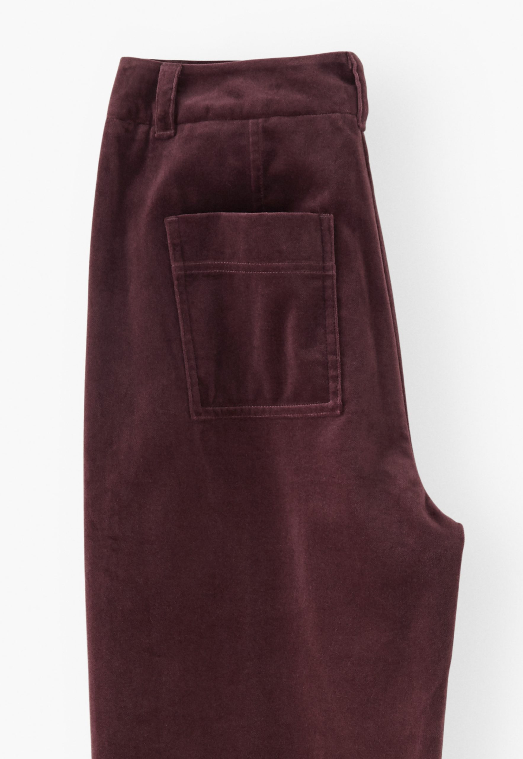 Wear these wonderful plush cotton velvet high-waisted trousers on their own or as a suit with the matching blazer. Either way, these wide-legged trousers with bold patch-pockets will look fab all day and all of the night.