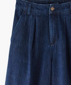 Wonderfully wide-legged high-waisted jeans in a soft and drapey cotton and lyocell denim. Trim and tailored, this is denim for when you want to dress up.