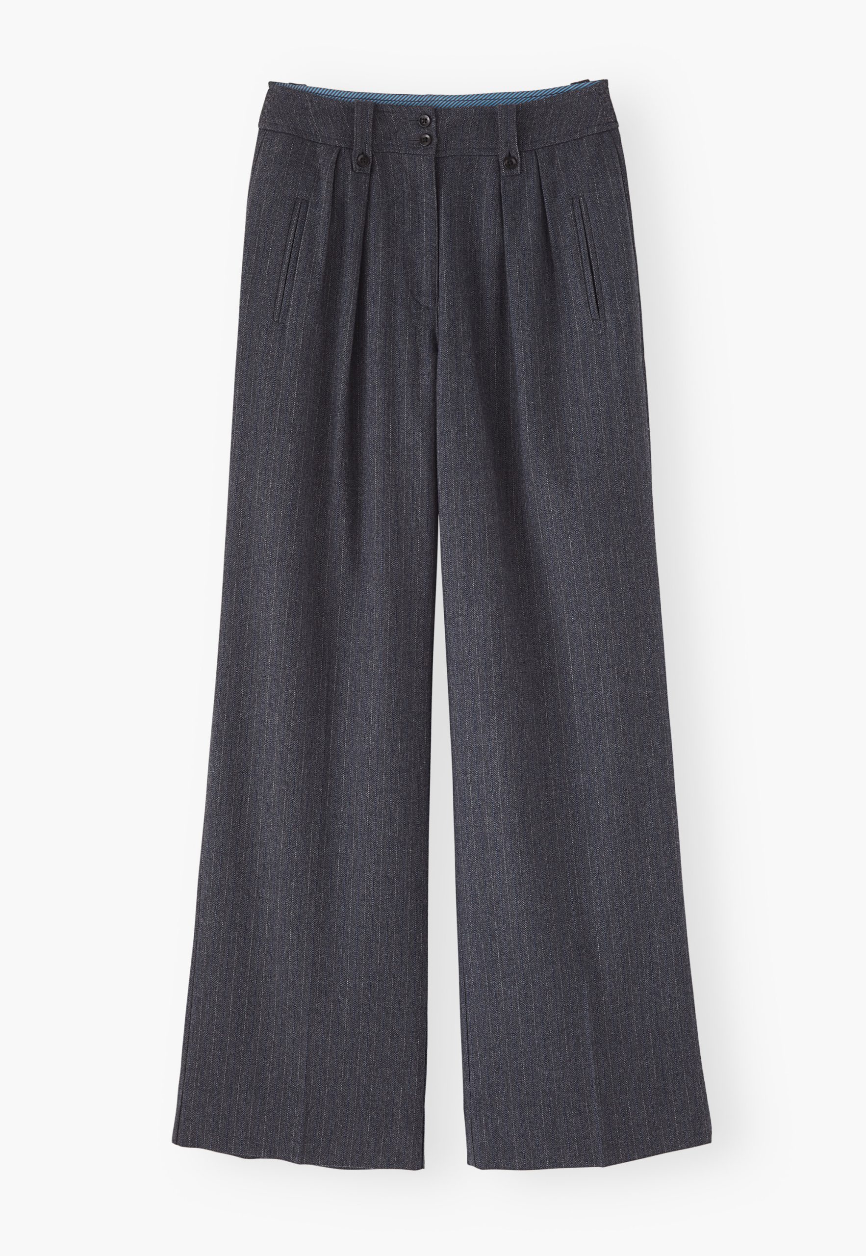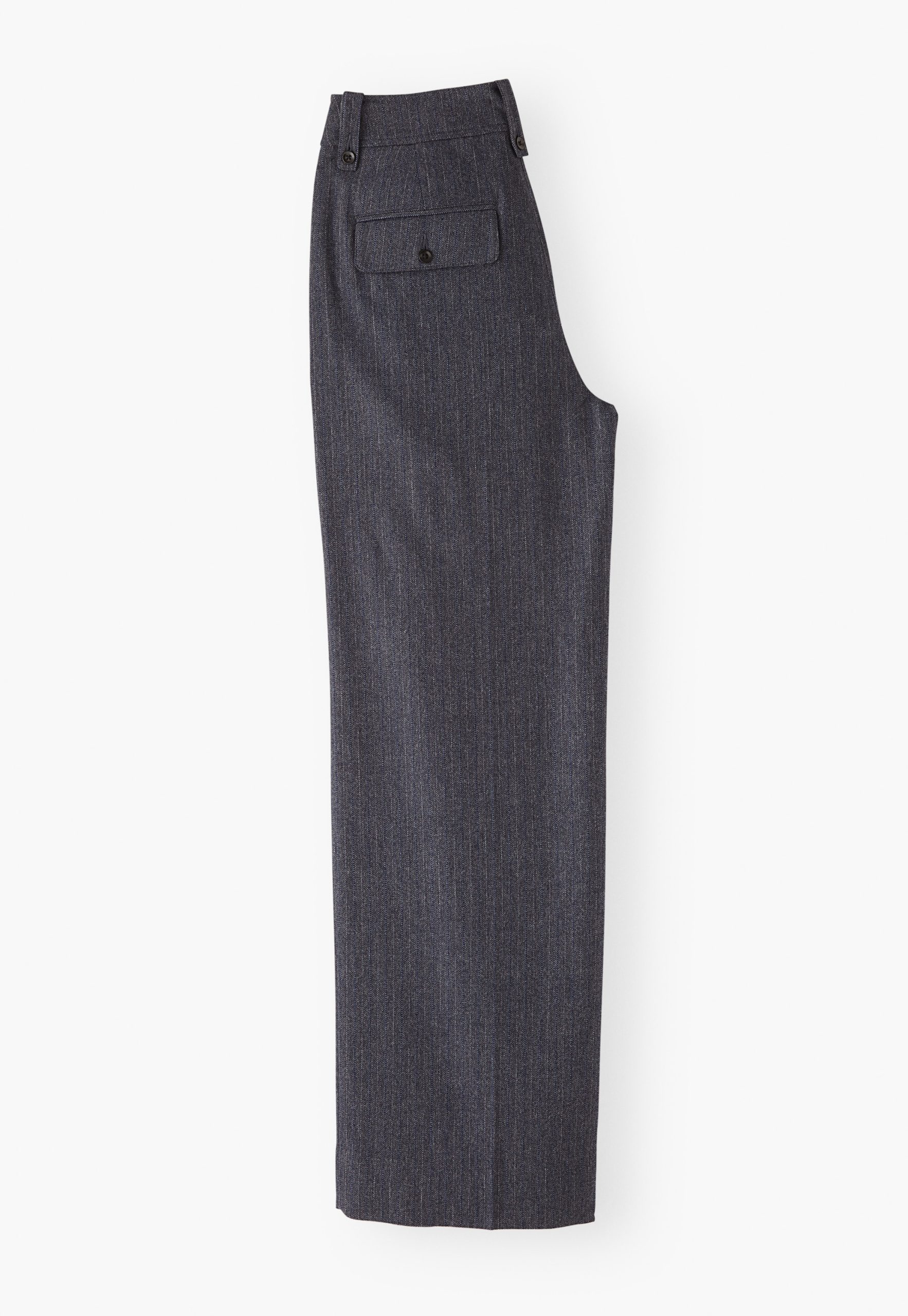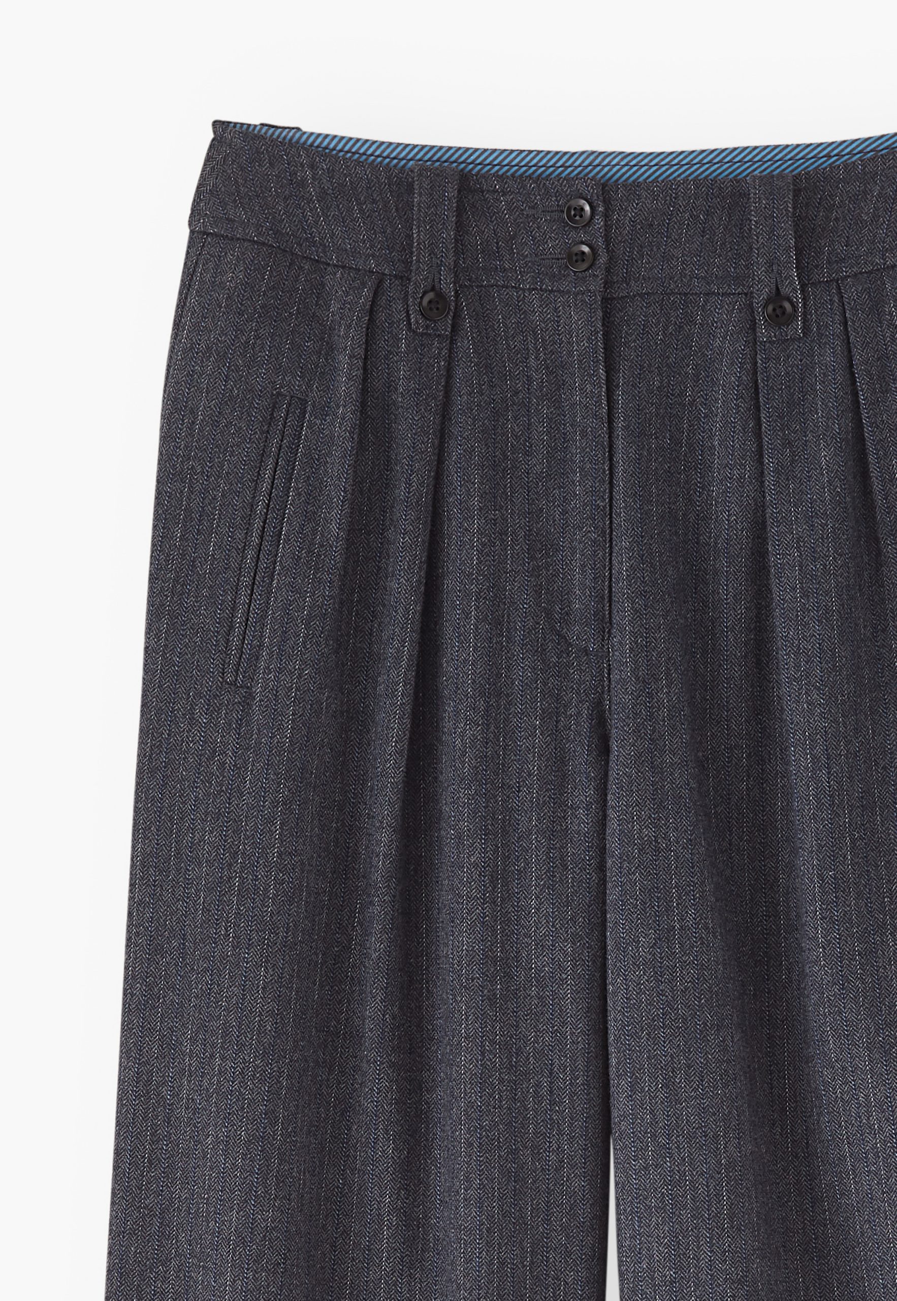 Wonderful wide-leg trousers in a wool and viscose herringbone weave with a subtle fine stripe. Tailored with pressed creases and inverted pleats from the waistband you can wear solo, Annie Hall style, or add the matching blazer to create a suit.