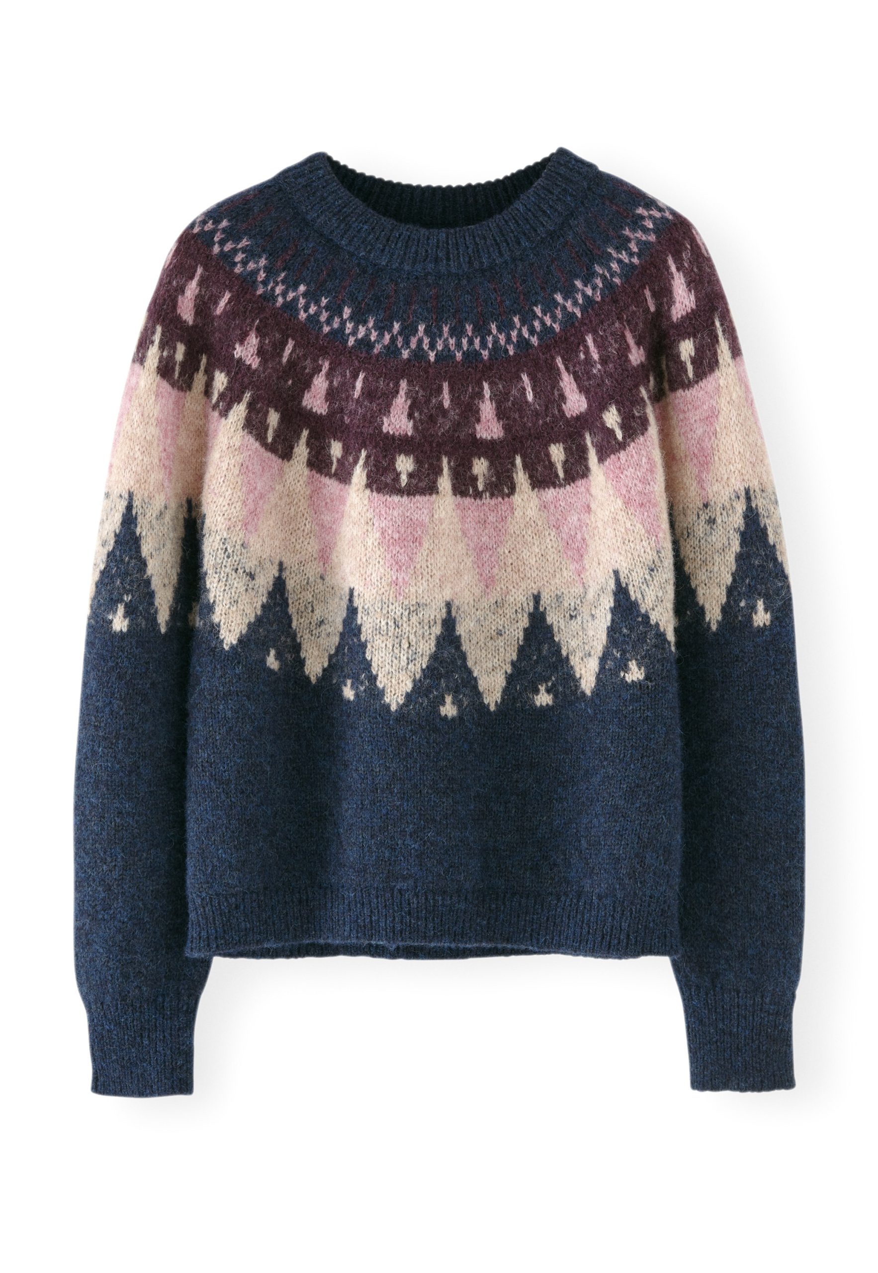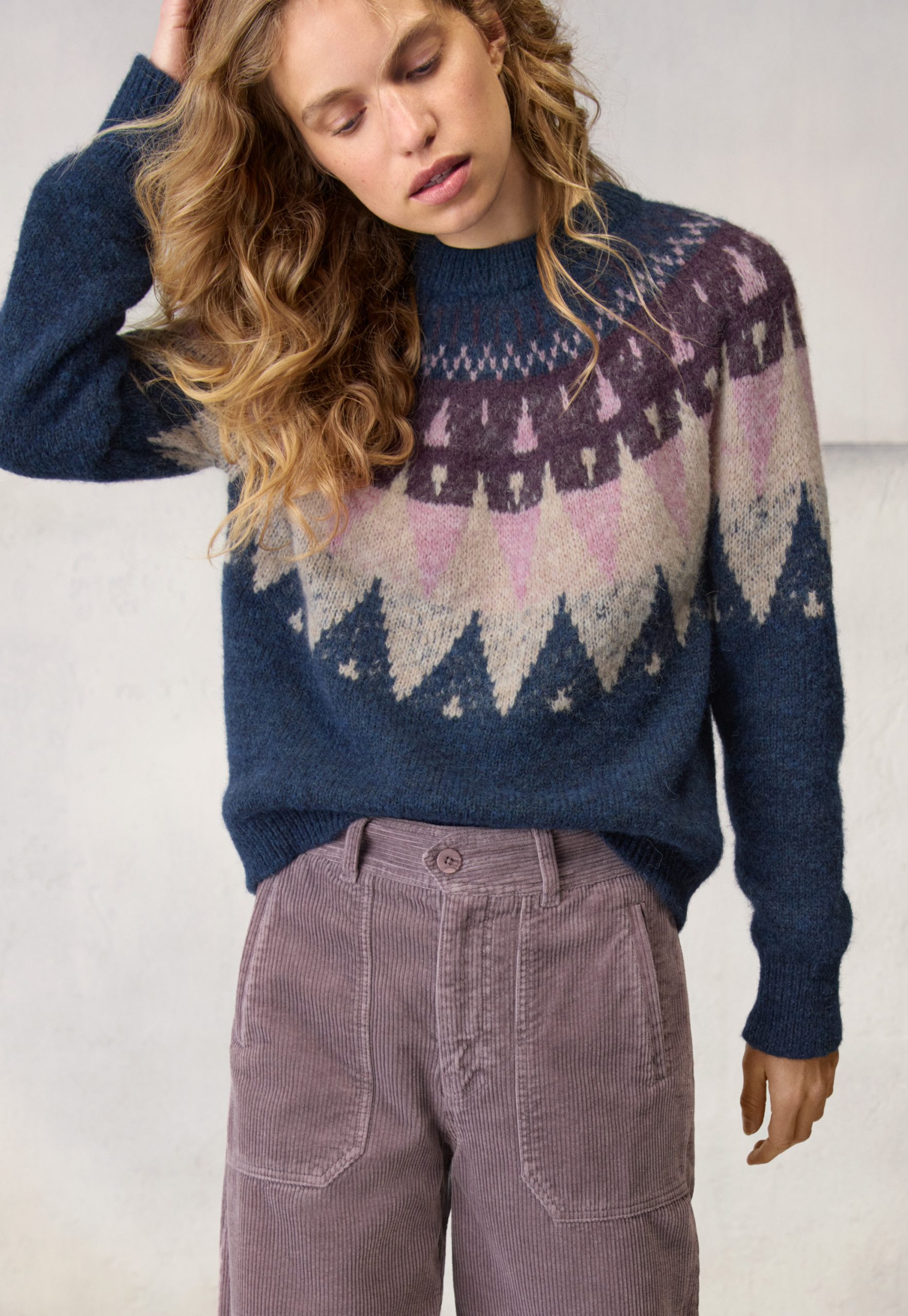 Inspired by Fair Isle tradition and given a modern twist, this soft sweater is knitted from a blend of soft and cosy alpaca and merino wool. It will look brilliant with denim and work wonderfully with corduroy too.